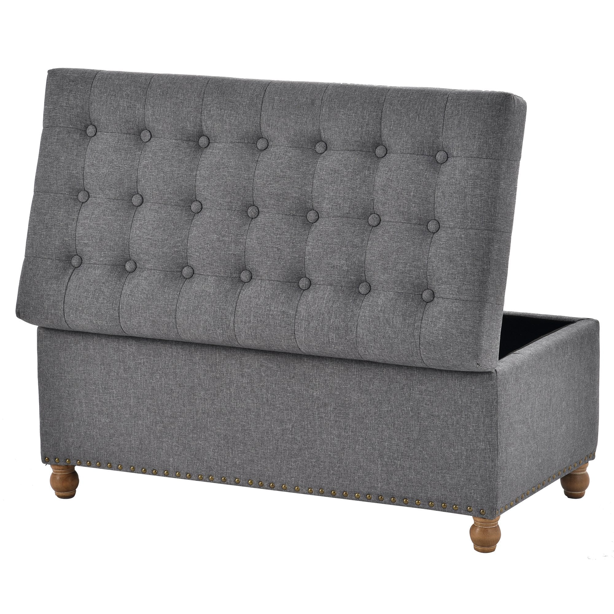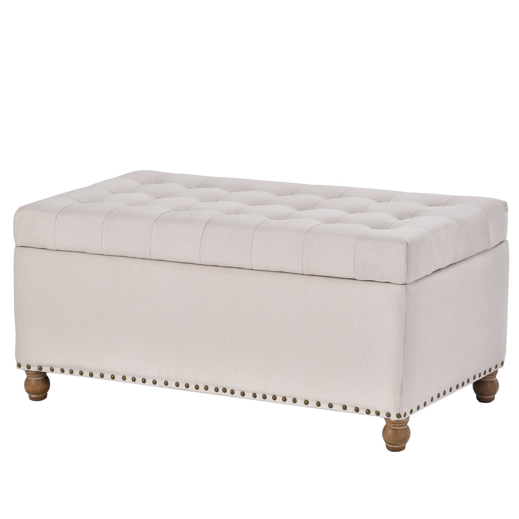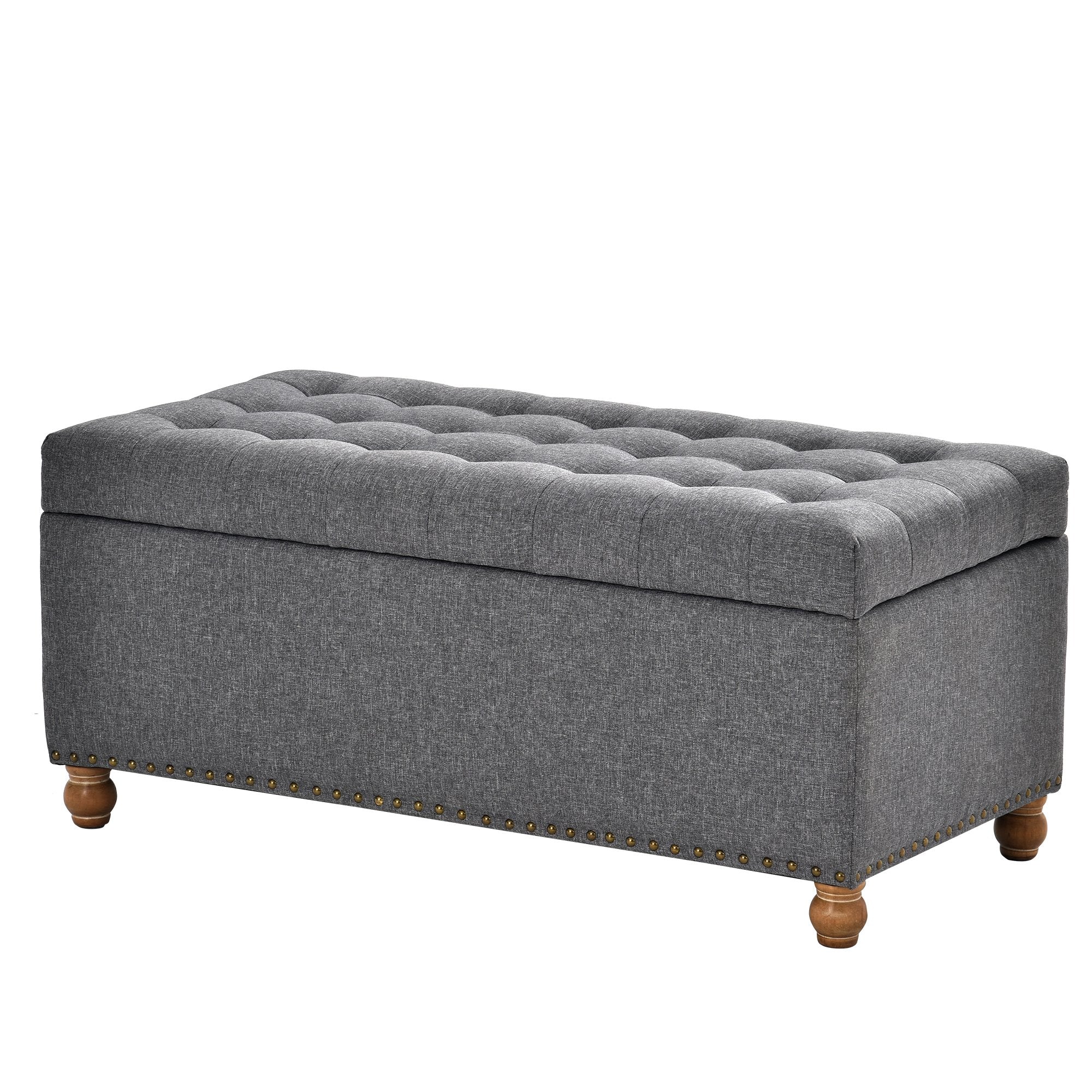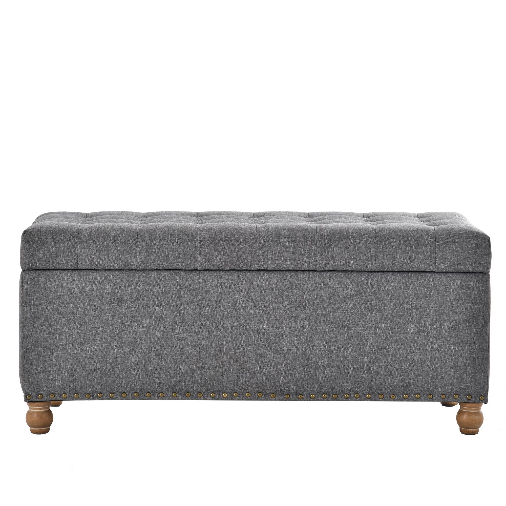Upholstered Flip Top Storage Bench with Tufted Top, Rubber wood legs