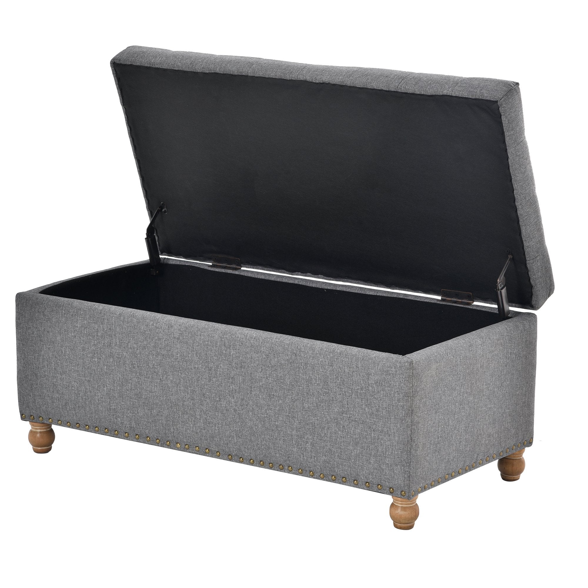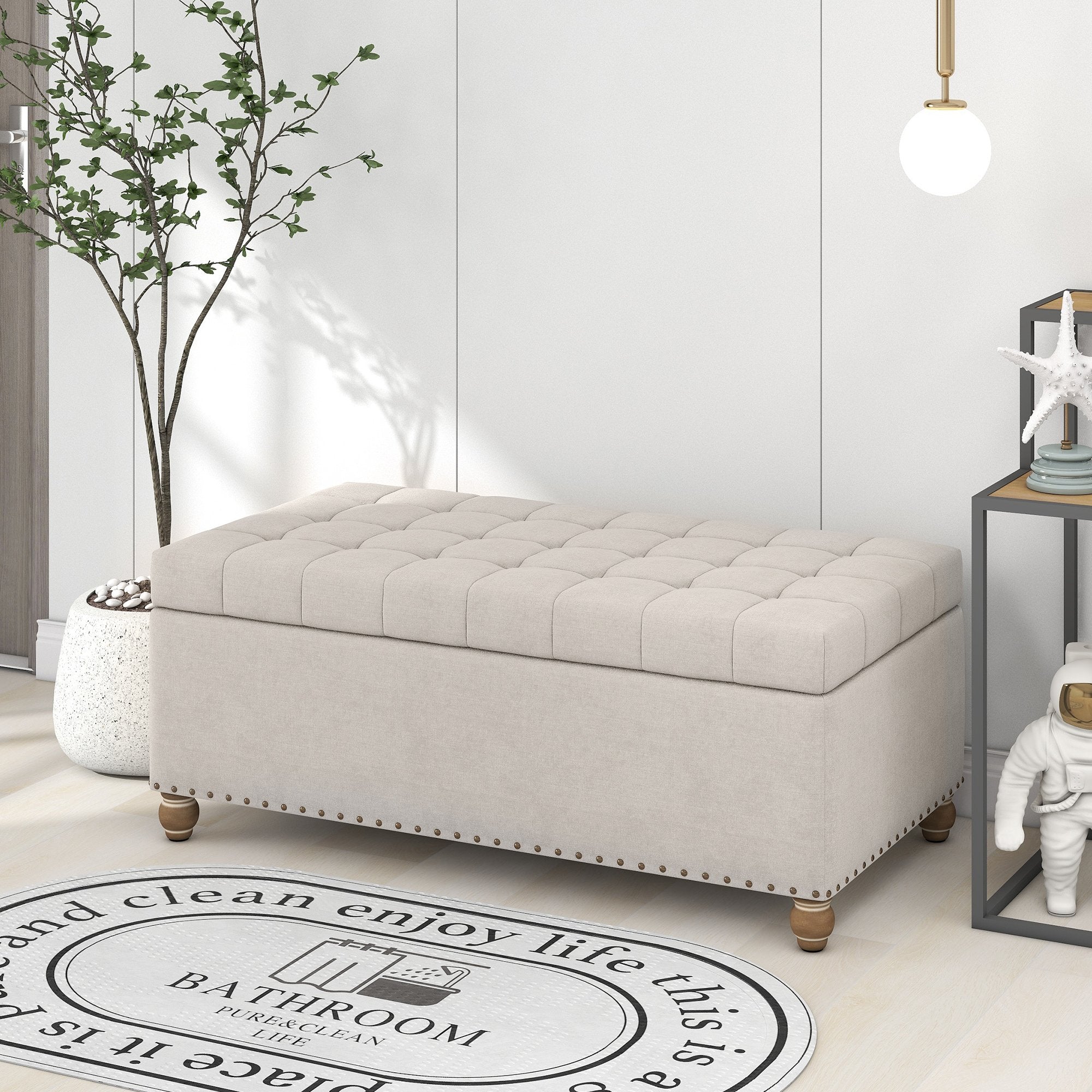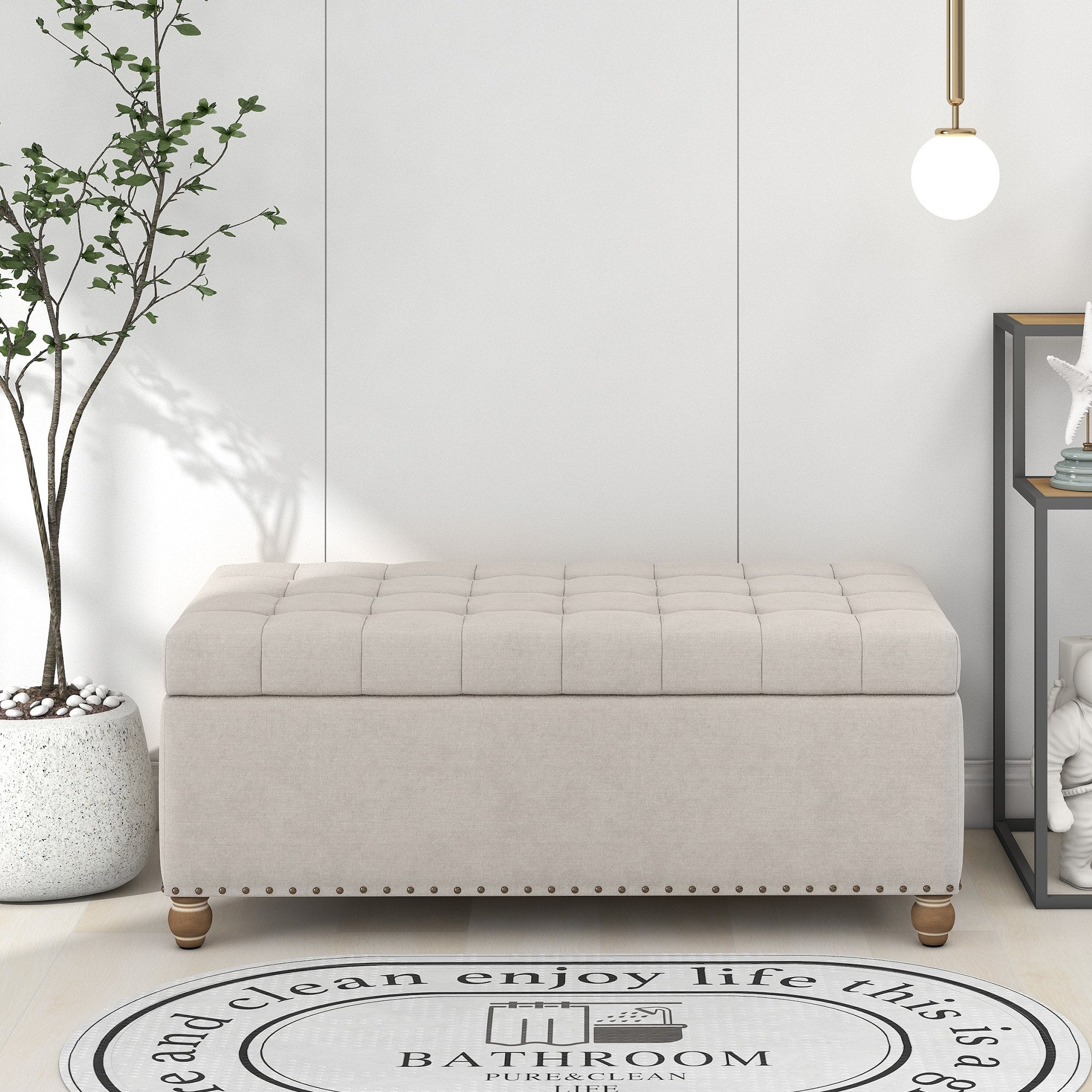 Upholstered Flip Top Storage Bench with Tufted Top, Rubber wood legs