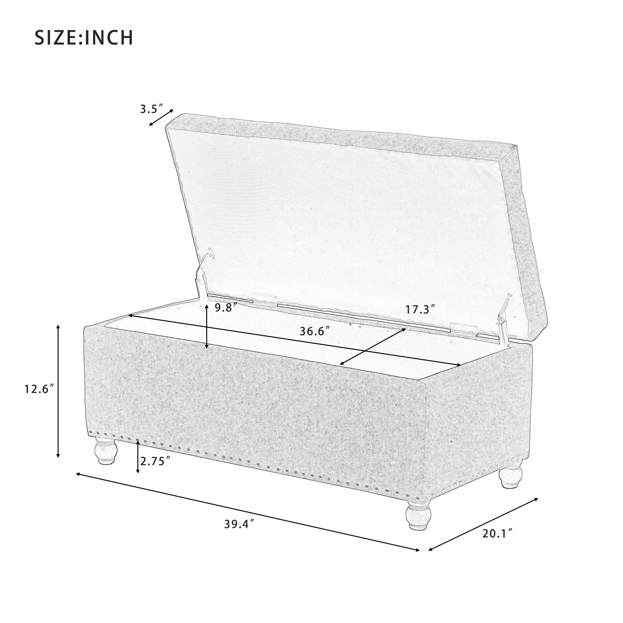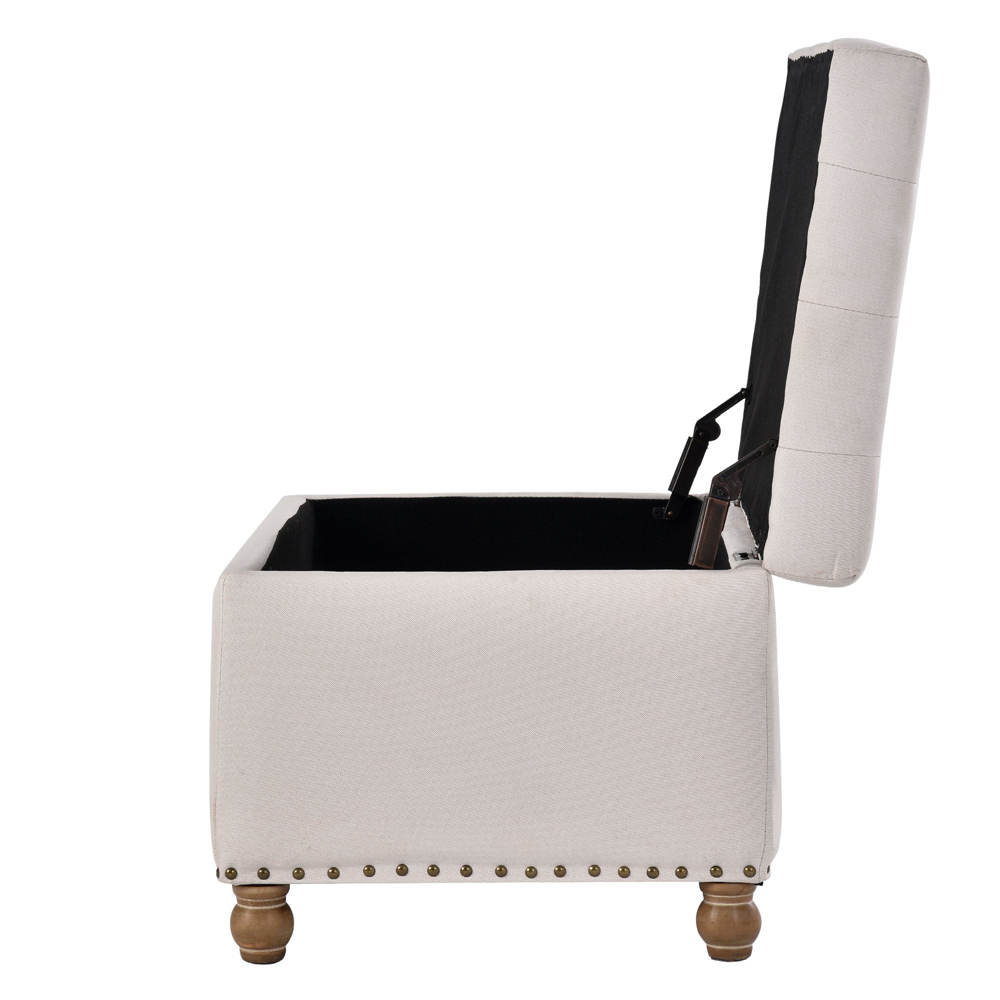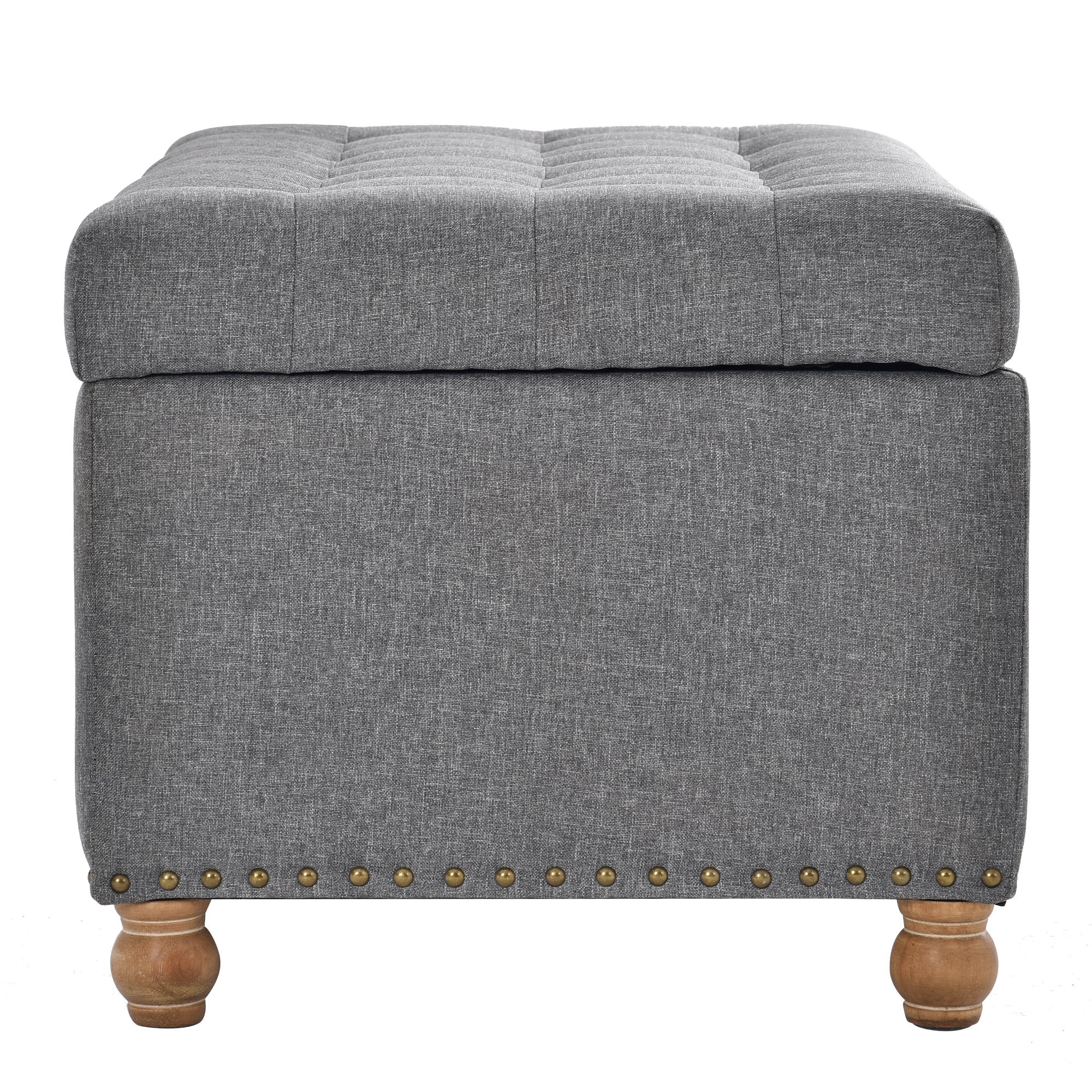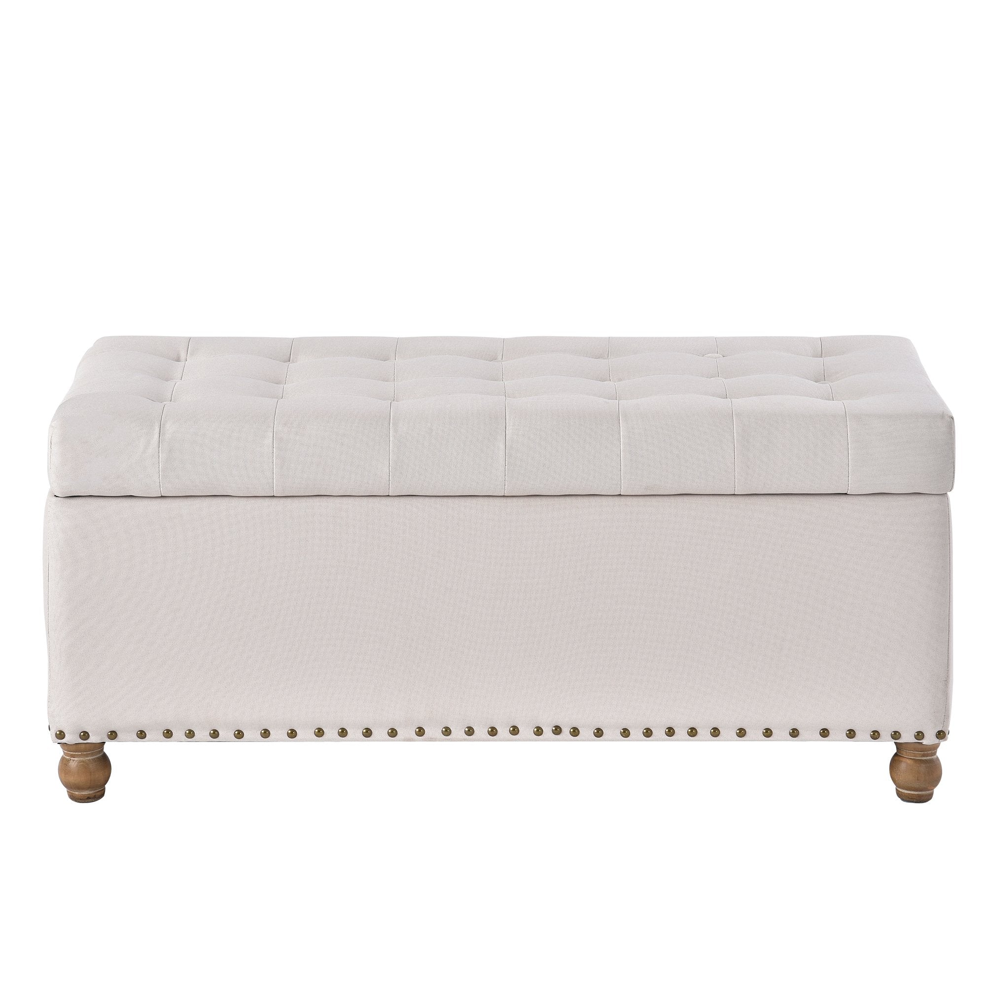 Upholstered Flip Top Storage Bench with Tufted Top, Rubber wood legs