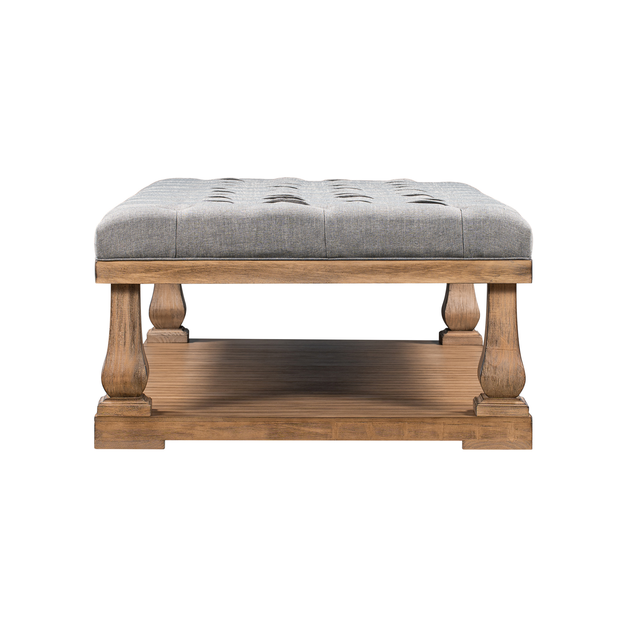 Place this extravagant bench anywhere in your home with its highly versatile design that will compliment a variety of spaces. Enjoy the thick dimpled cushioned upper supported by thick carved pillars with a spacious wood storage underside, making this piece the perfect contender for shoe storage in your hallway, a luxe accent piece at the foot of your bed, or even a show stopping center piece in a living or dining room.