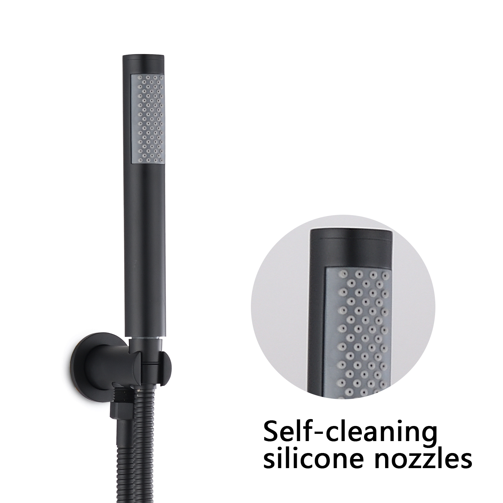 - Round shower and hand shower, coarse water inlet valve is made of brass, with ceramic box, no maintenance. The shower head with a silicone nozzle allows you to easily wipe off hard water and scale deposits.