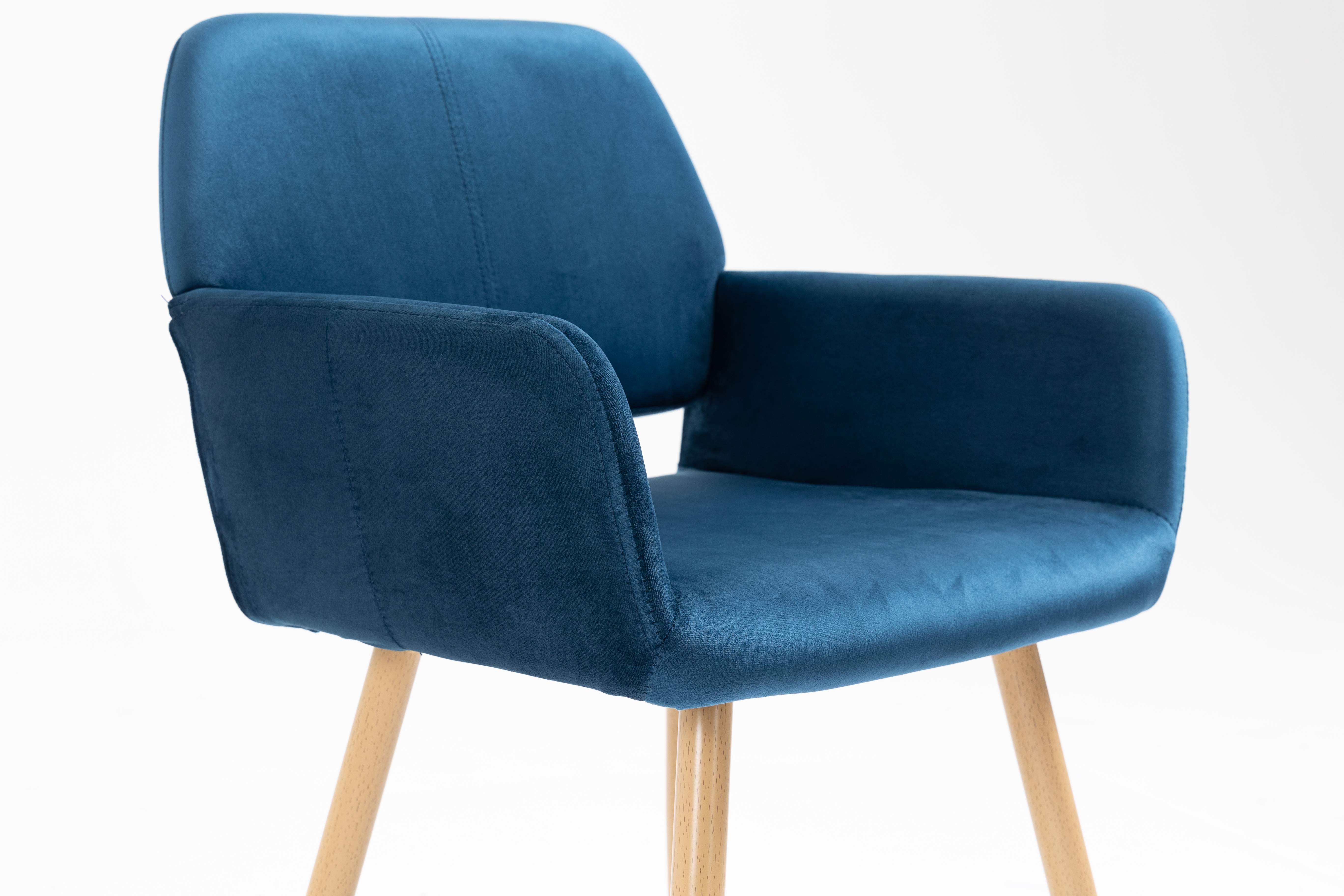 Velet Upholstered Side Dining Chair with Metal Leg(Blue velet+Beech Wooden Printing Leg),KD backrest