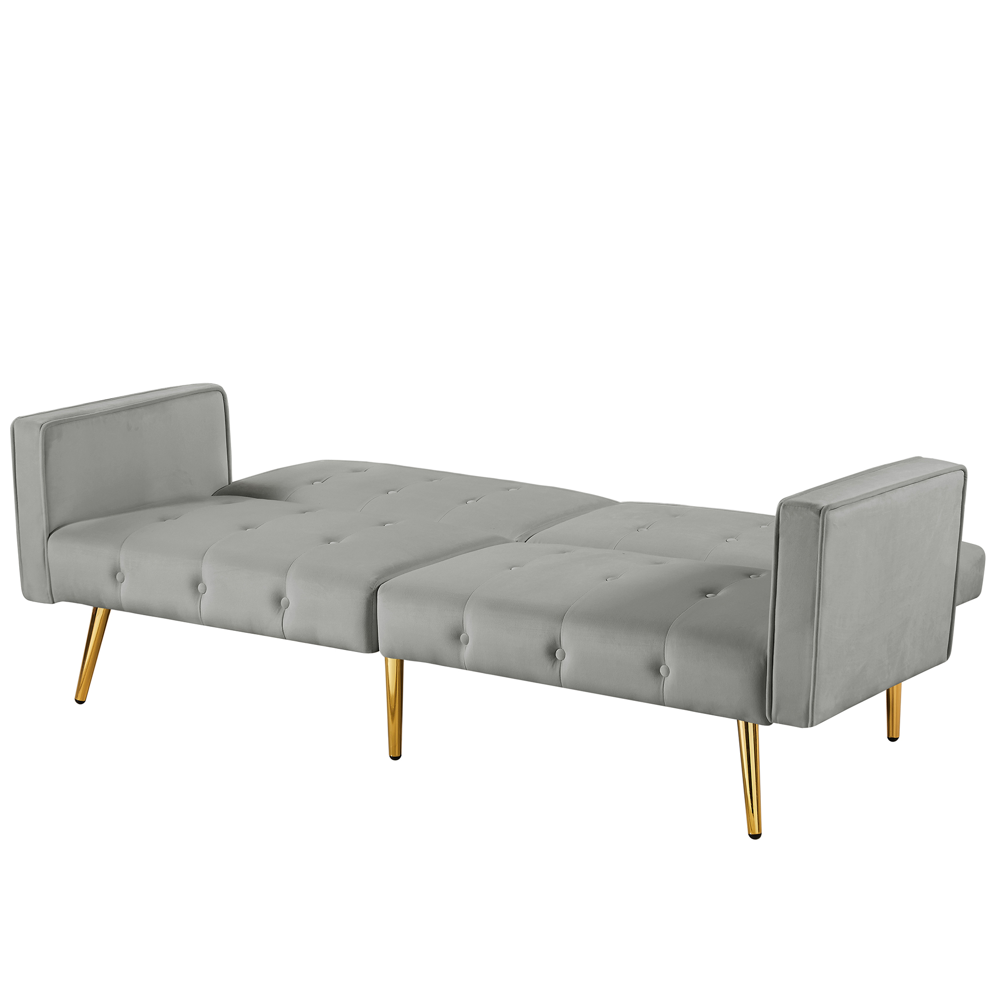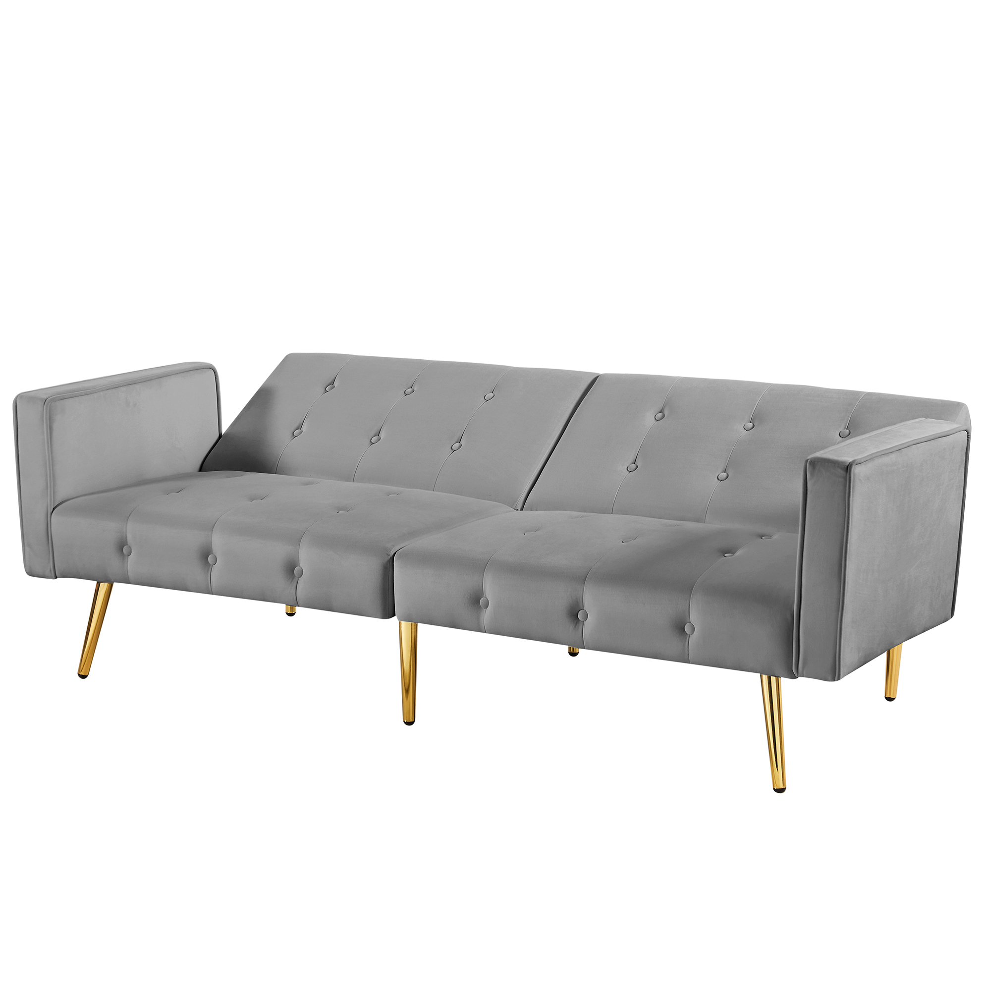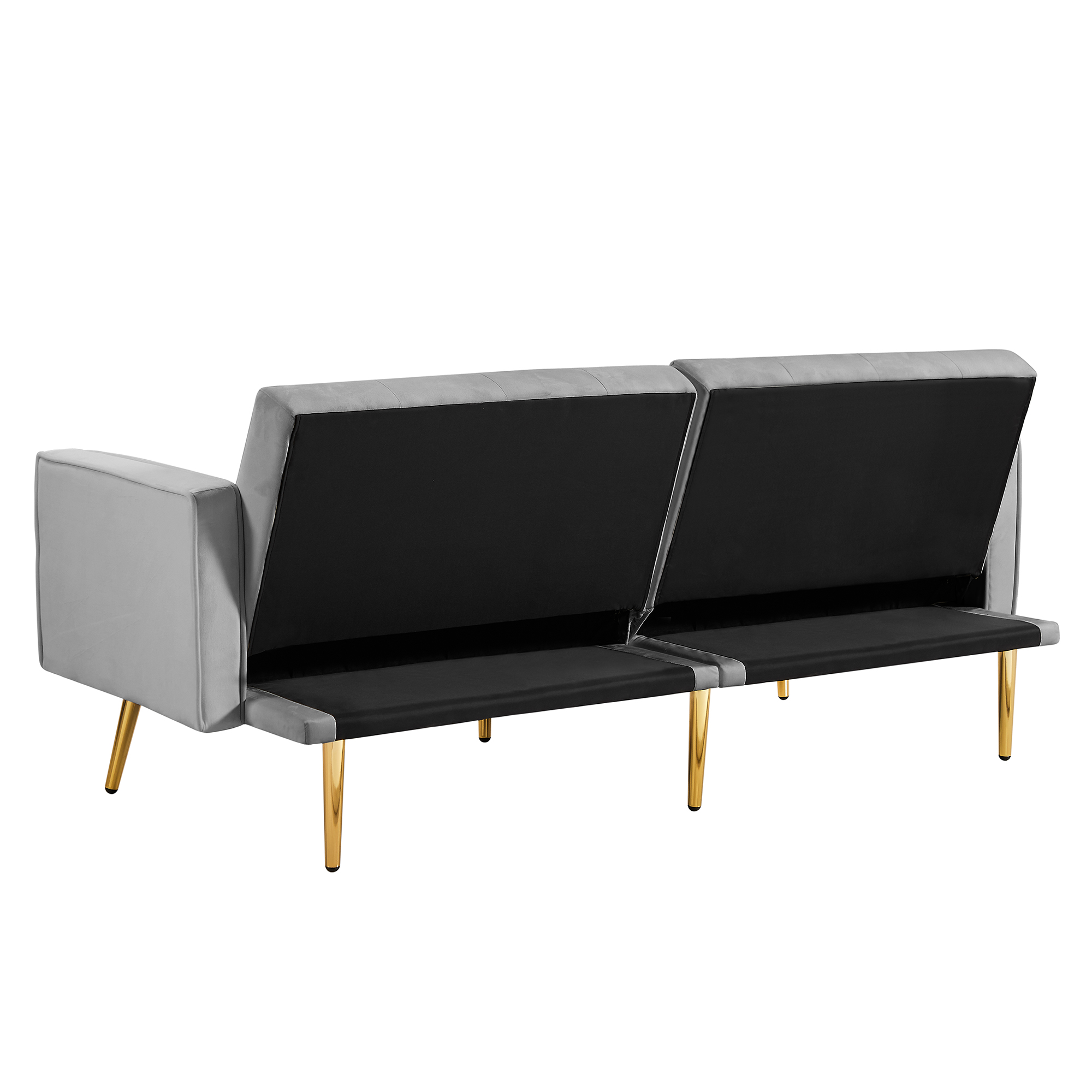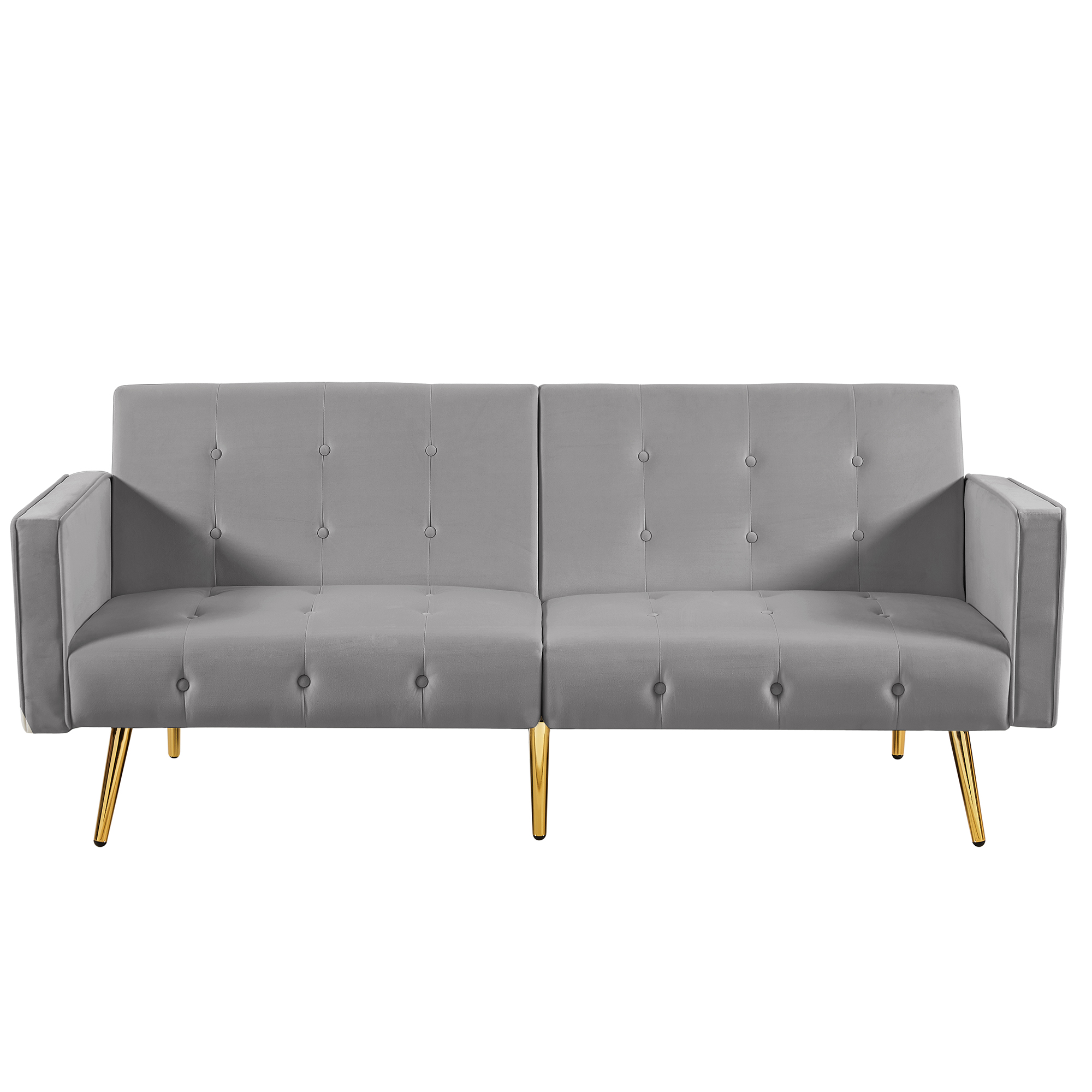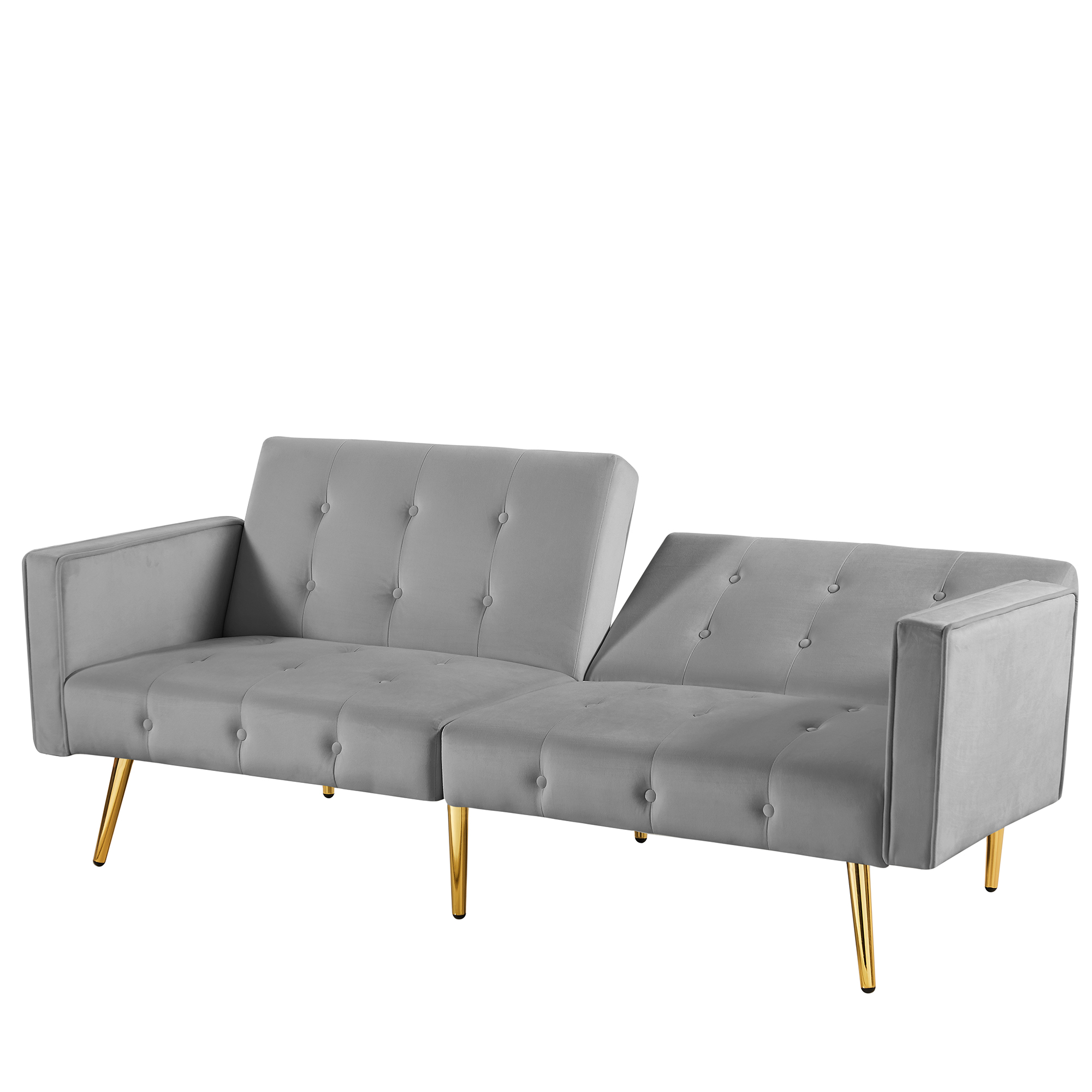Products Velvet sofa bed Upholstery Material: Velvet Upholstery Colour: grey Leg Material / Color: Metal /Gold Seat & Back Fill Material: Foam Frame Material: Solid + Manufactured Wood Seat Construction: Sinuous Spring and foam Assembly Required: Yes