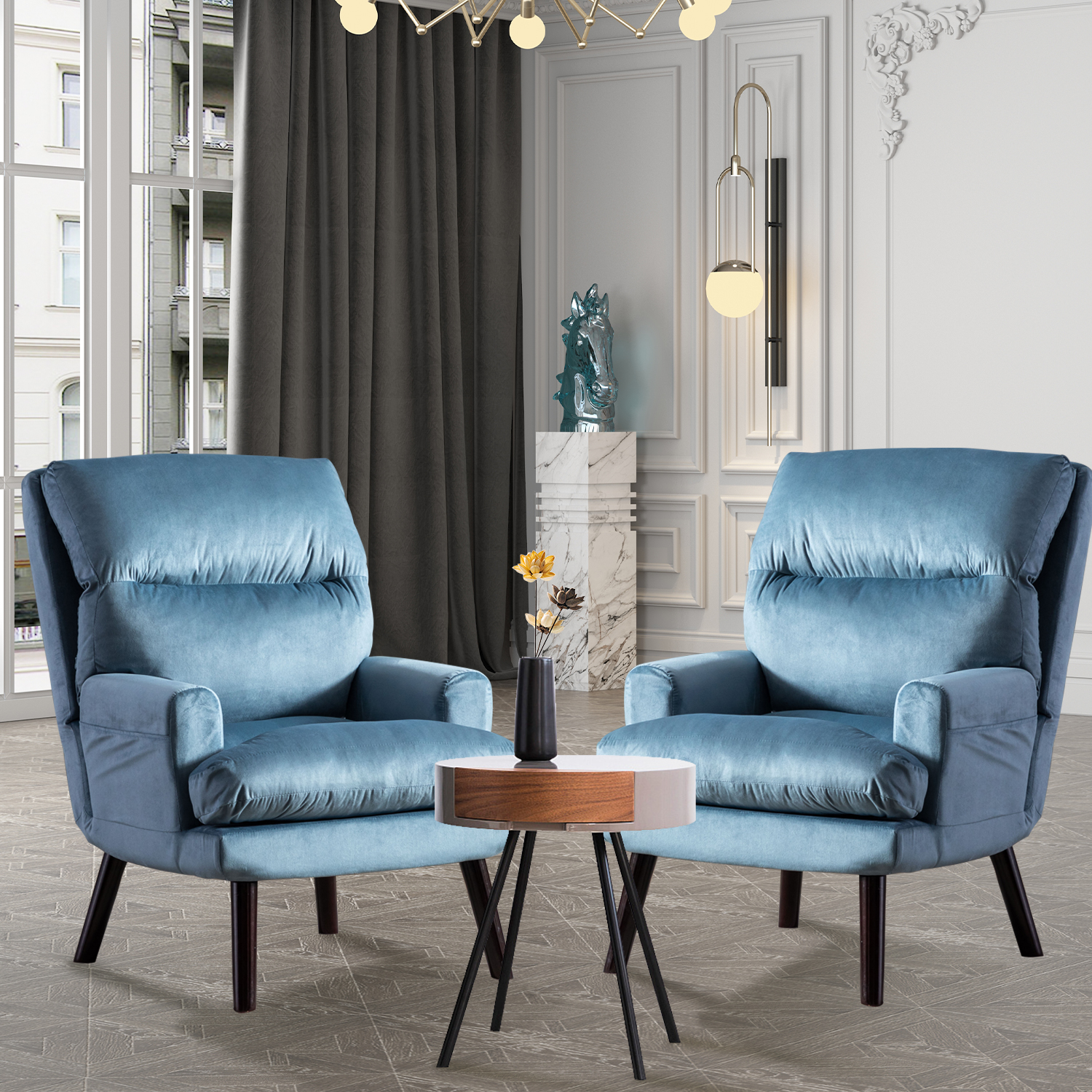 Bring the exquisite recliner set into your home and living room, so that you can enjoy the product comfortable and bring visual beauty at the same time. This recliner with 5 adjustable posture, soft velvet fabric, detachable cushion and exquisite durable solid wood feet, let you experience the visual beauty and comfortable and durable.