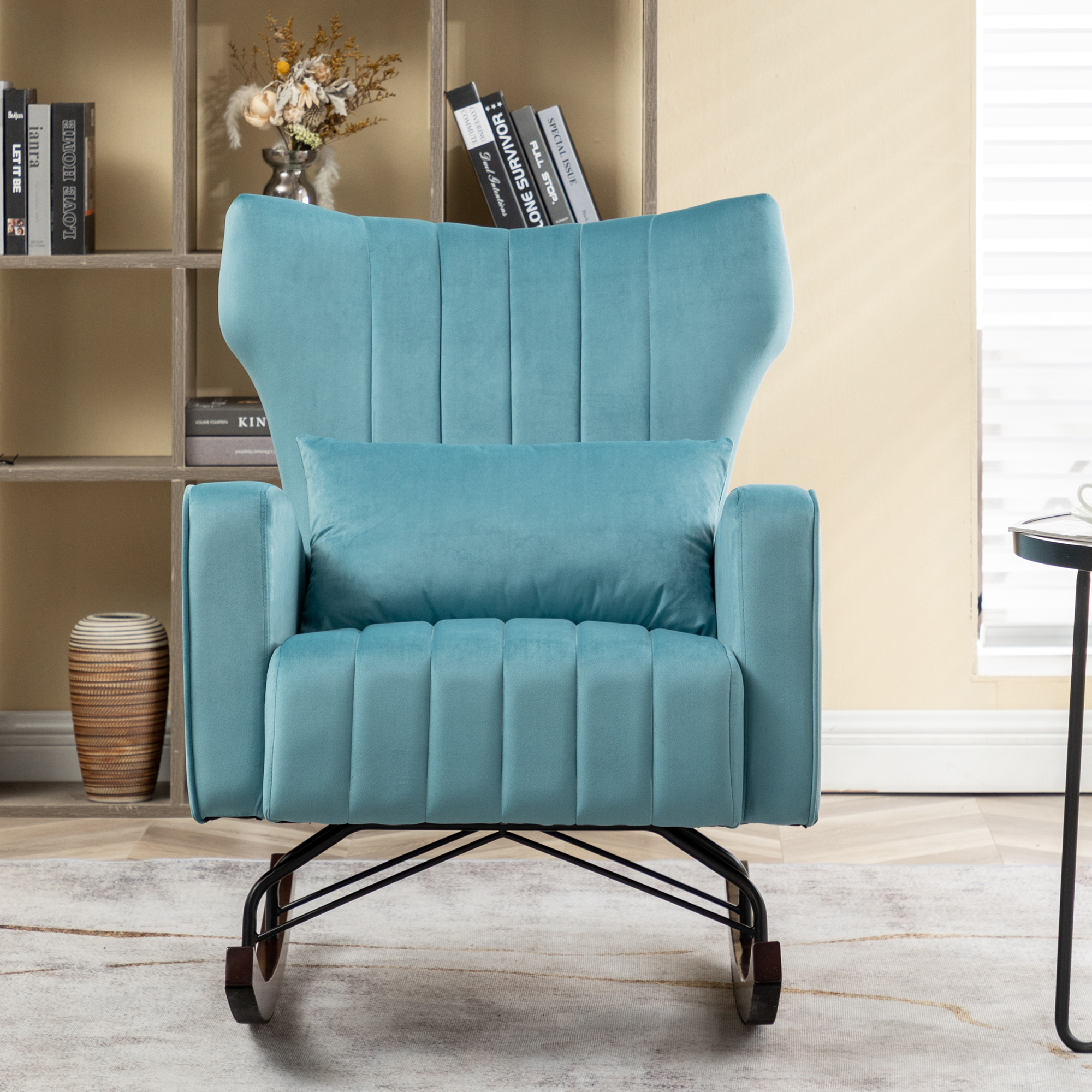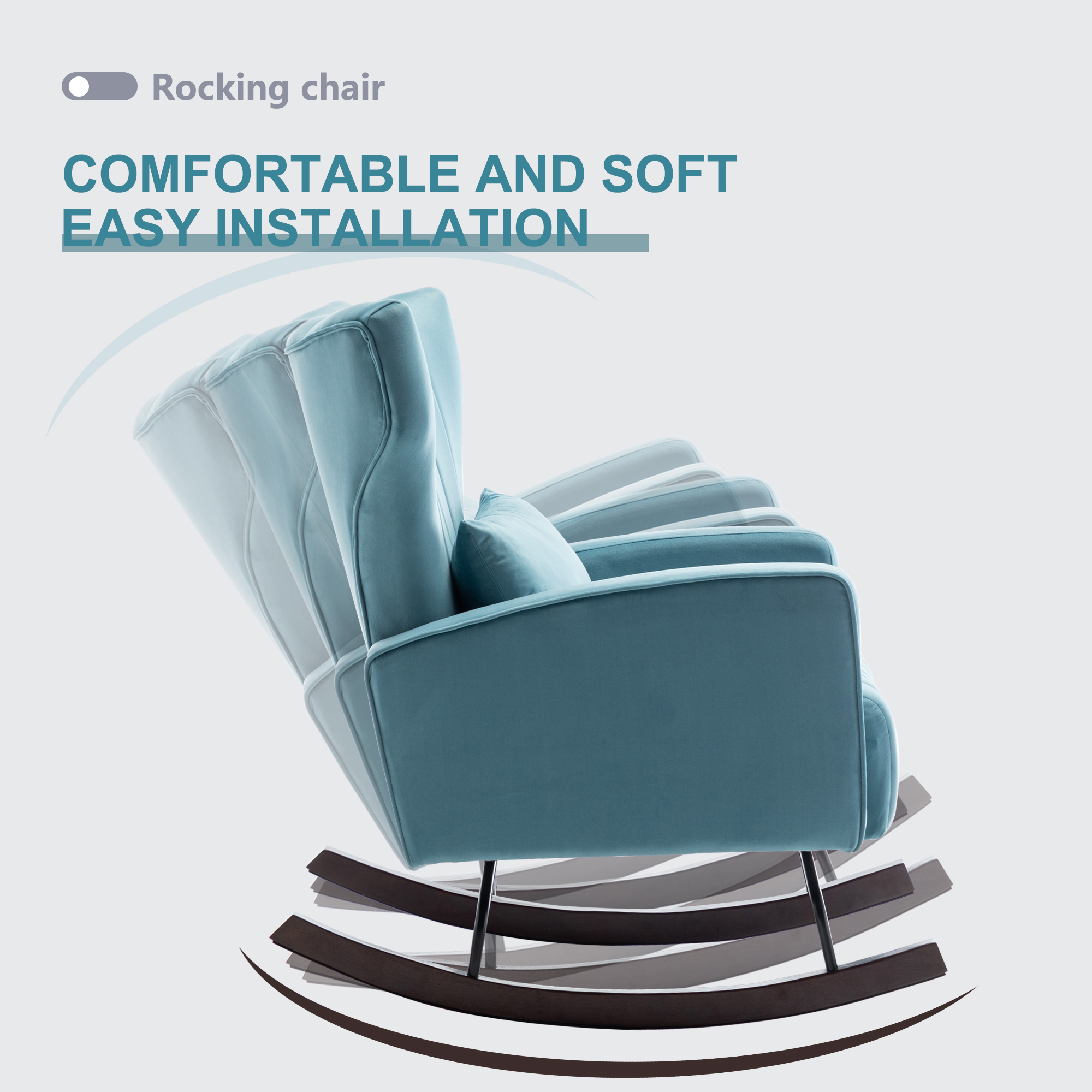 [ Velvet Cloth ]: With a velvet fabric design, the accent rocking chair is in a unique mid-century modern style. It is not only a very comfortable chair, but also a great decoration.