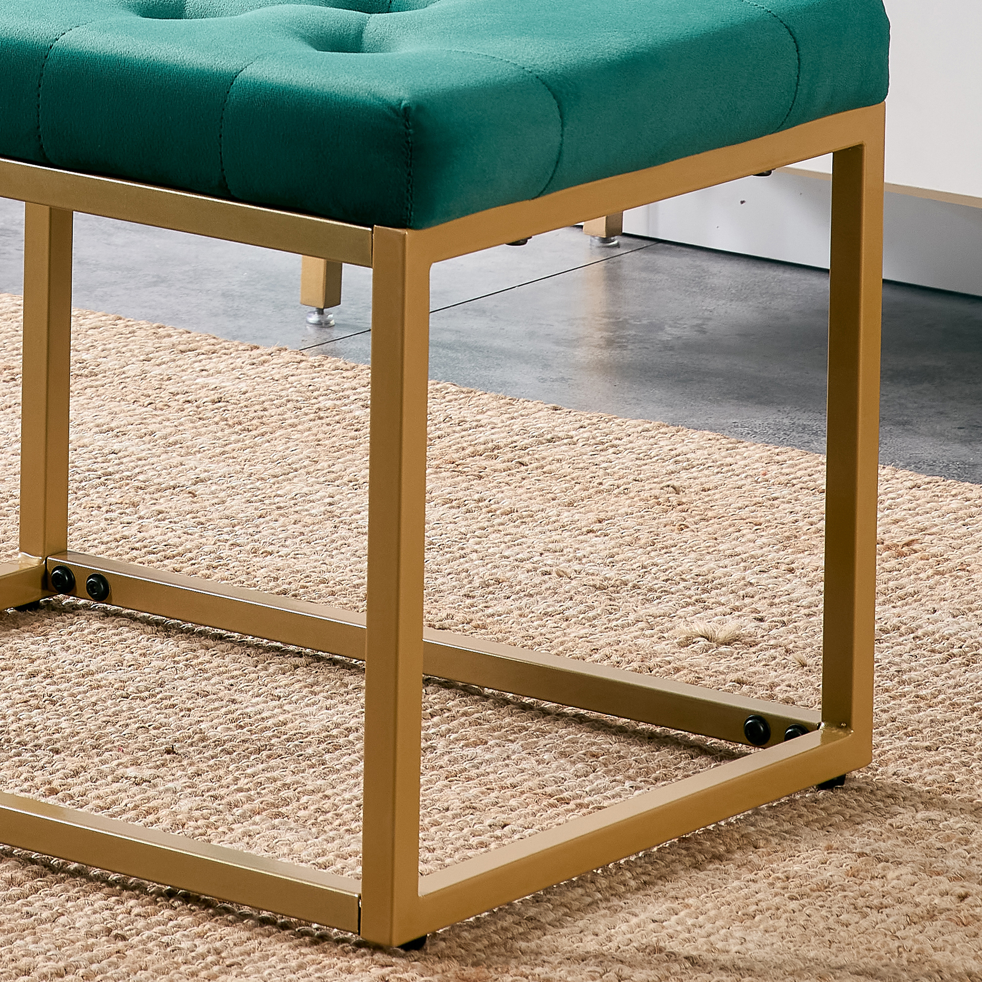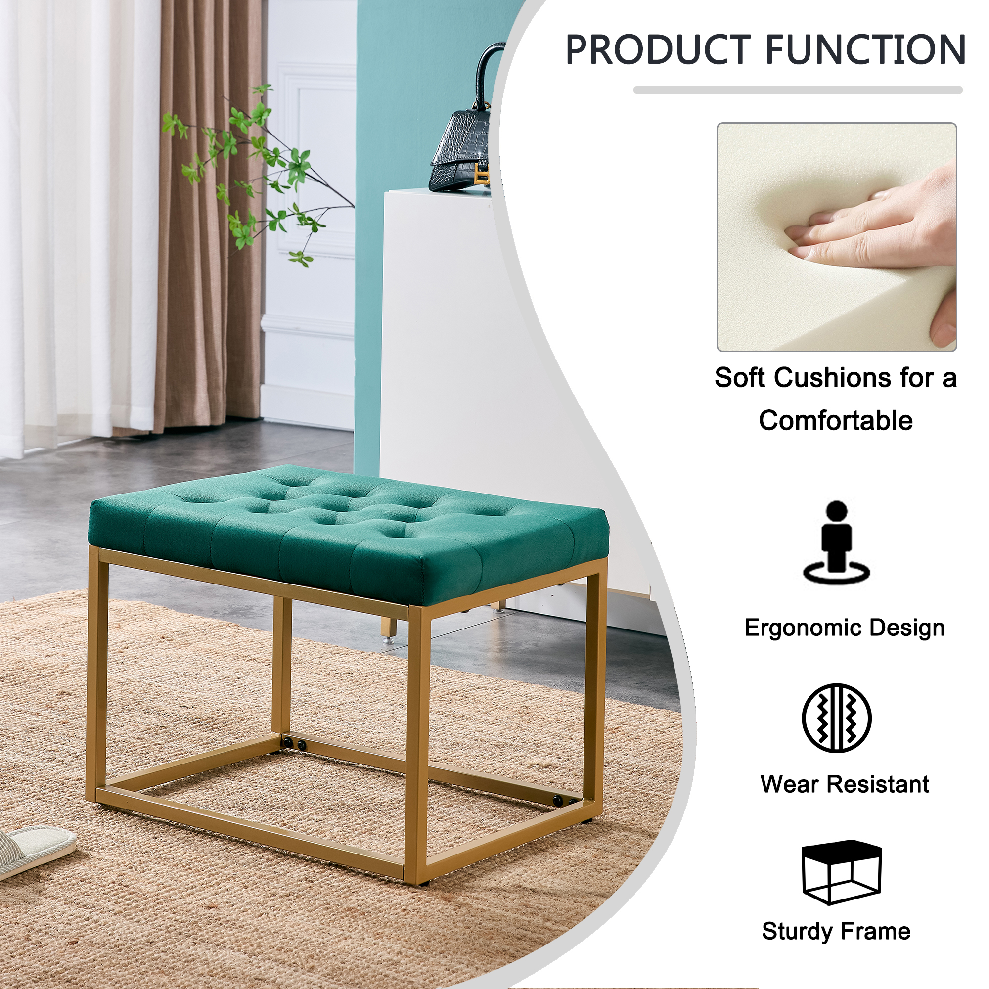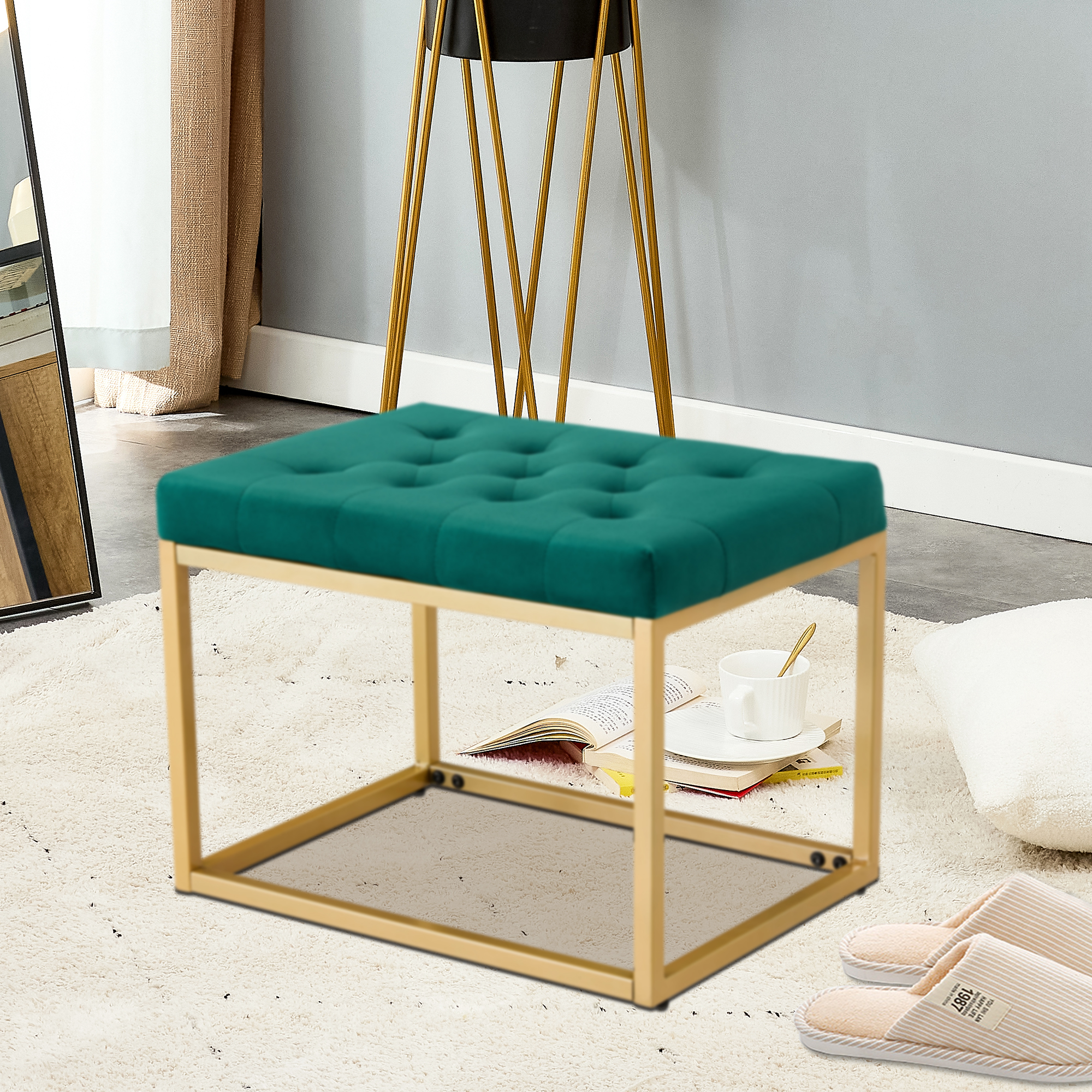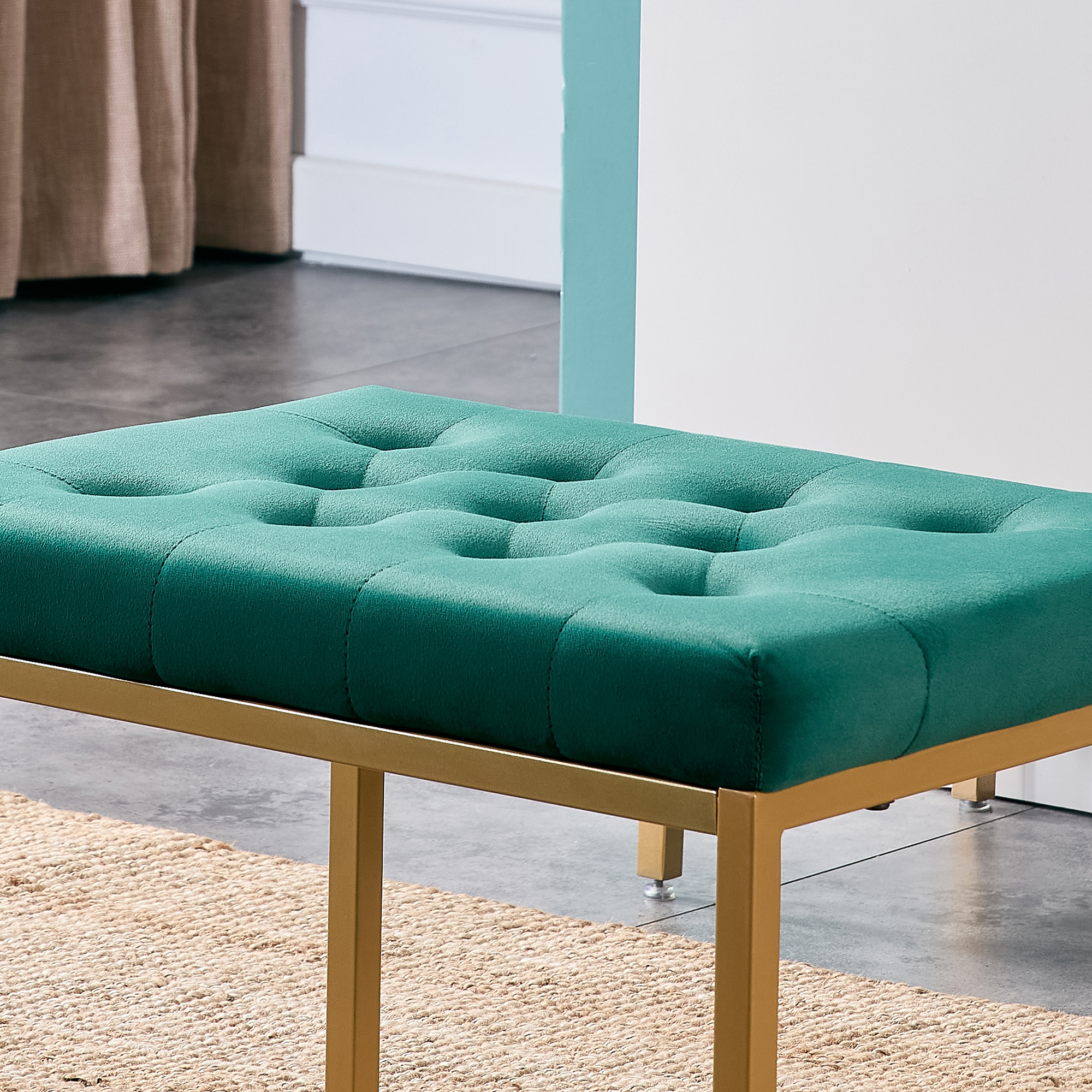 | 7.Modern luxury style ottoman along with velvet upholstery, gold metal legs, elegant channel tufting detail sure to match with almost any decor. |