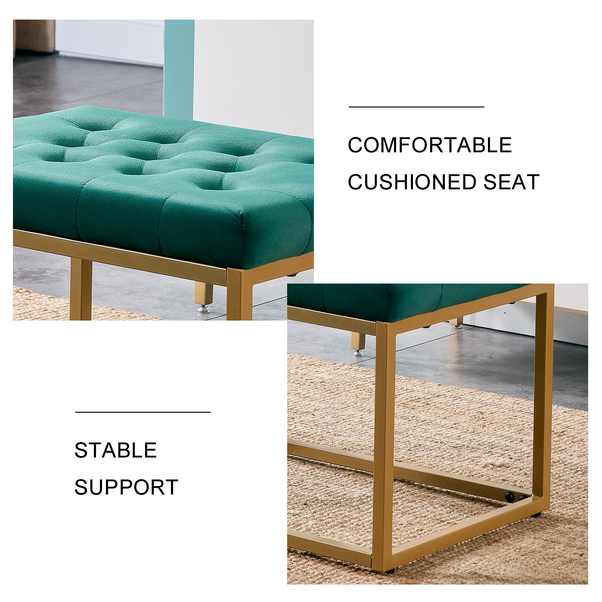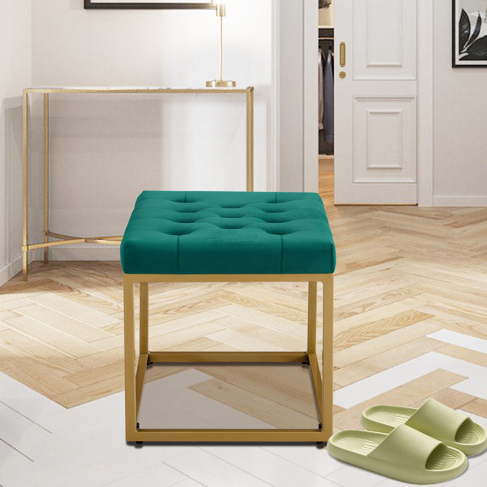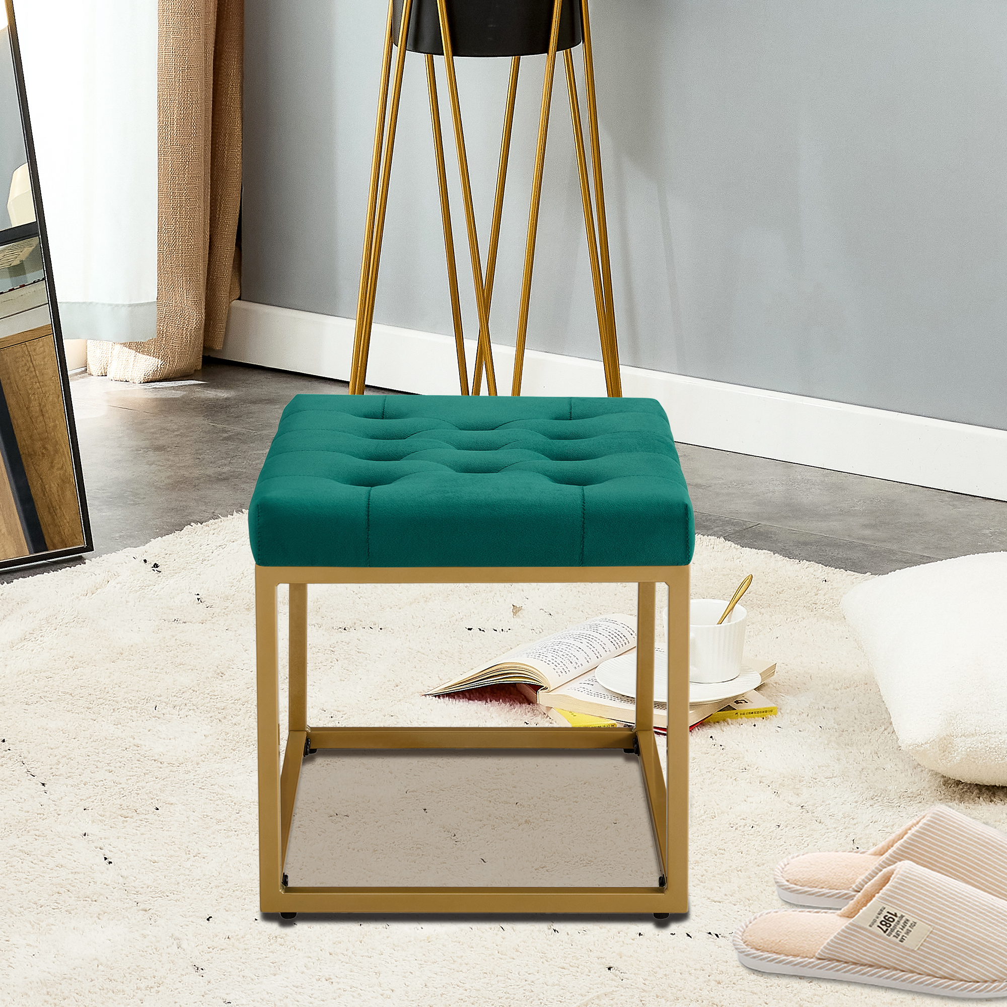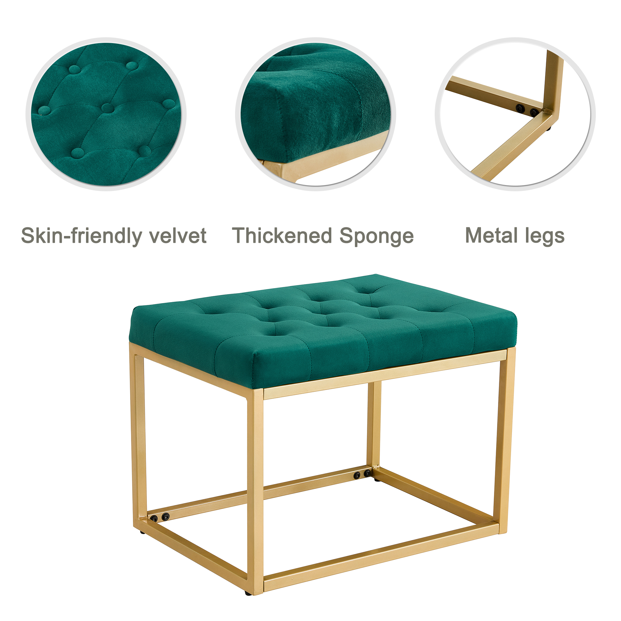 | 7.Modern luxury style ottoman along with velvet upholstery, gold metal legs, elegant channel tufting detail sure to match with almost any decor. |