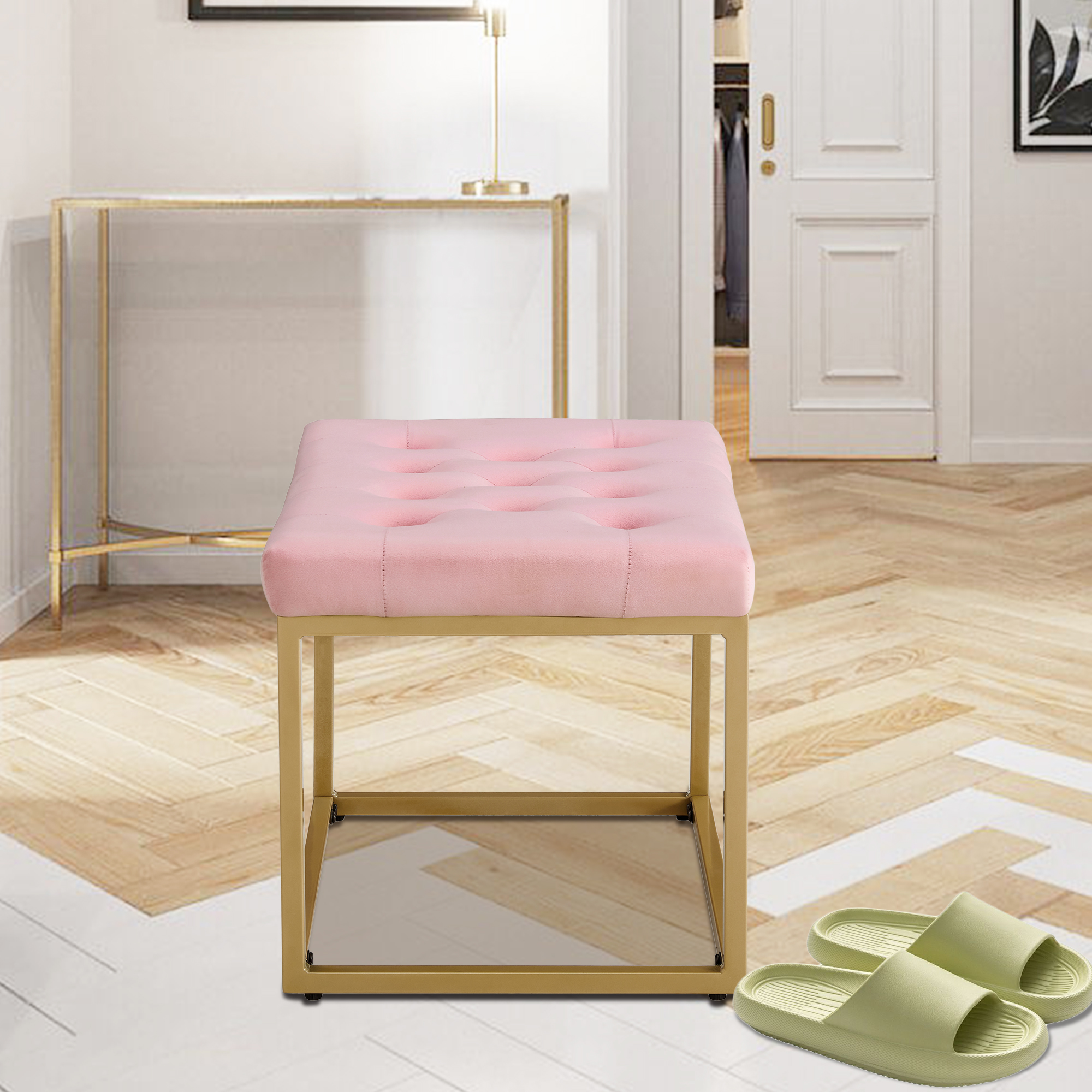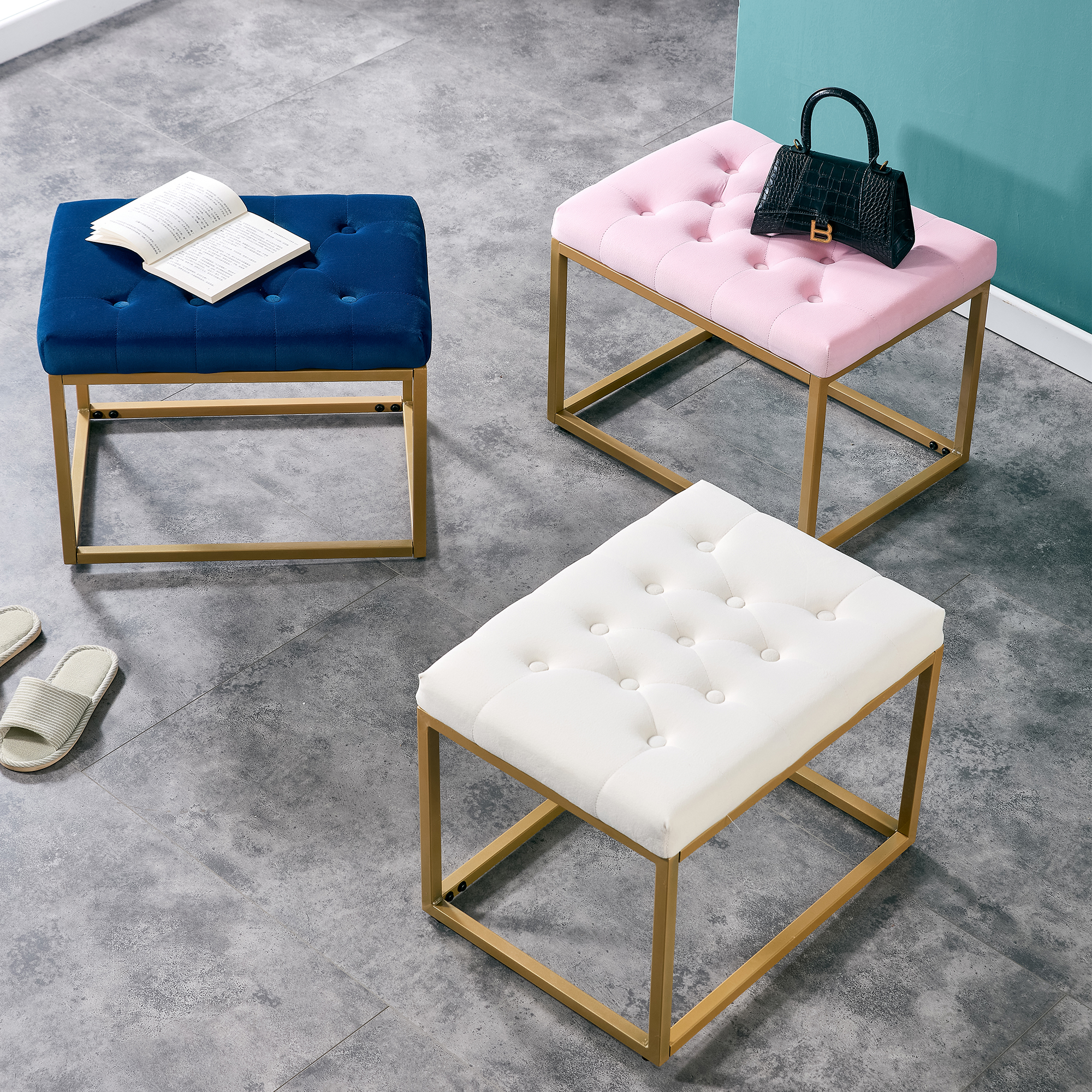 7.Modern luxury style ottoman along with velvet upholstery, gold metal legs, elegant channel tufting detail sure to match with almost any decor. | |||