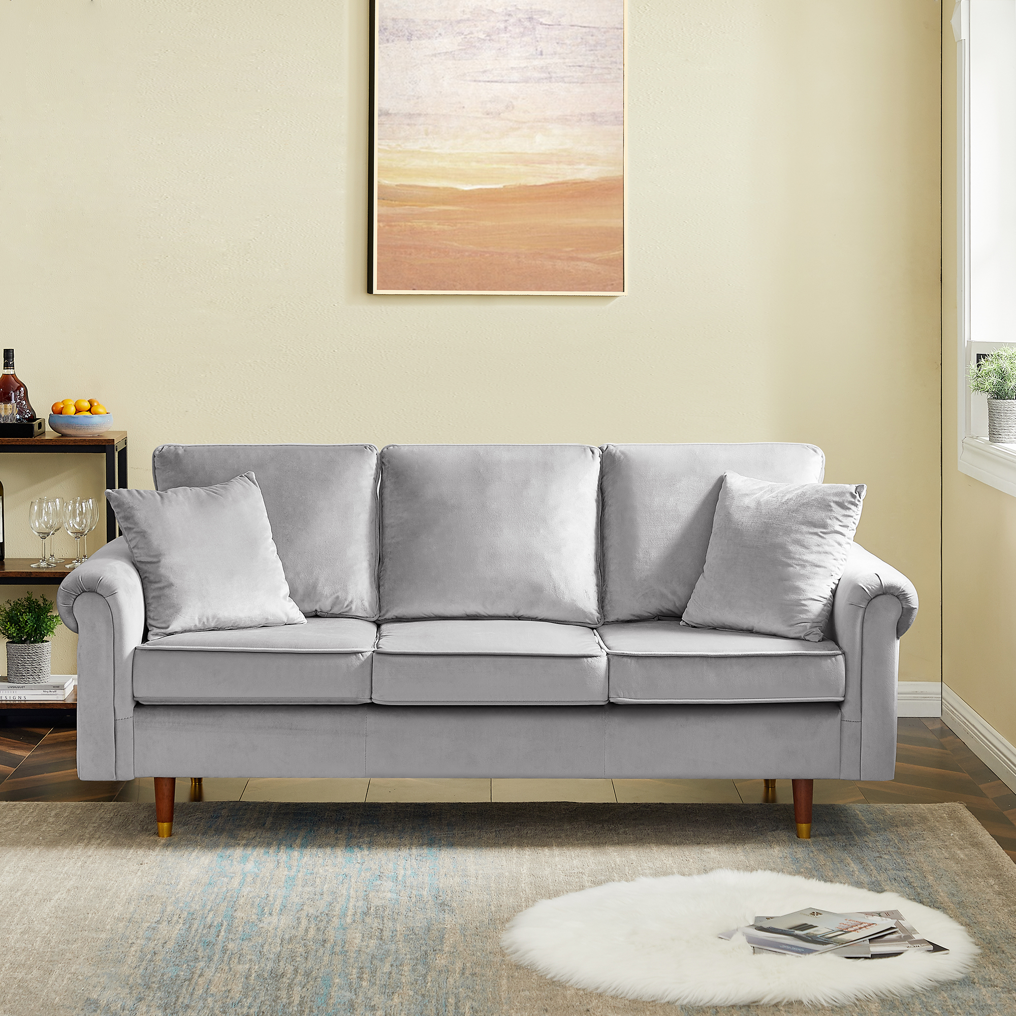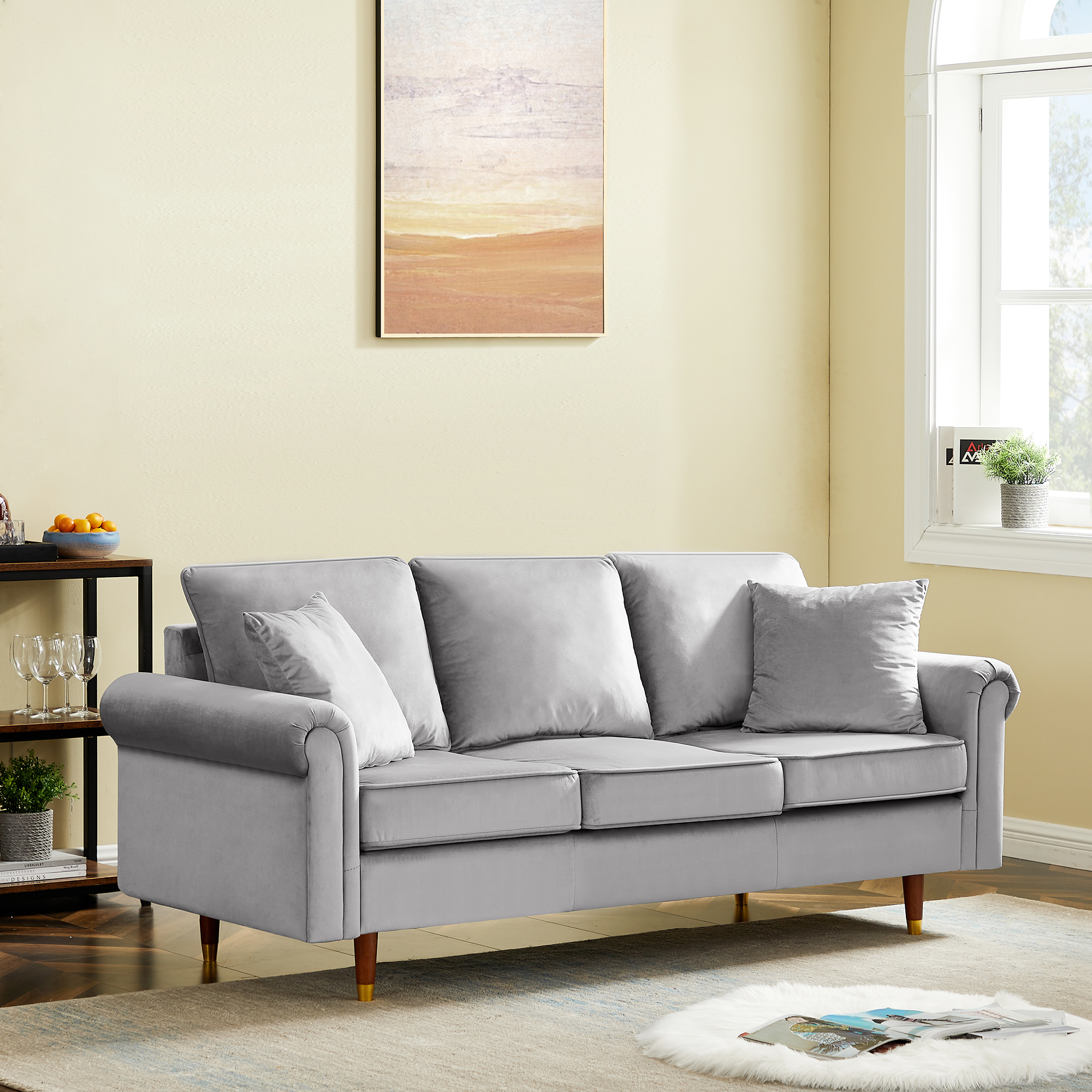 | Products | Velvet 3-Seater Sofa Couch with 2 Pillows |