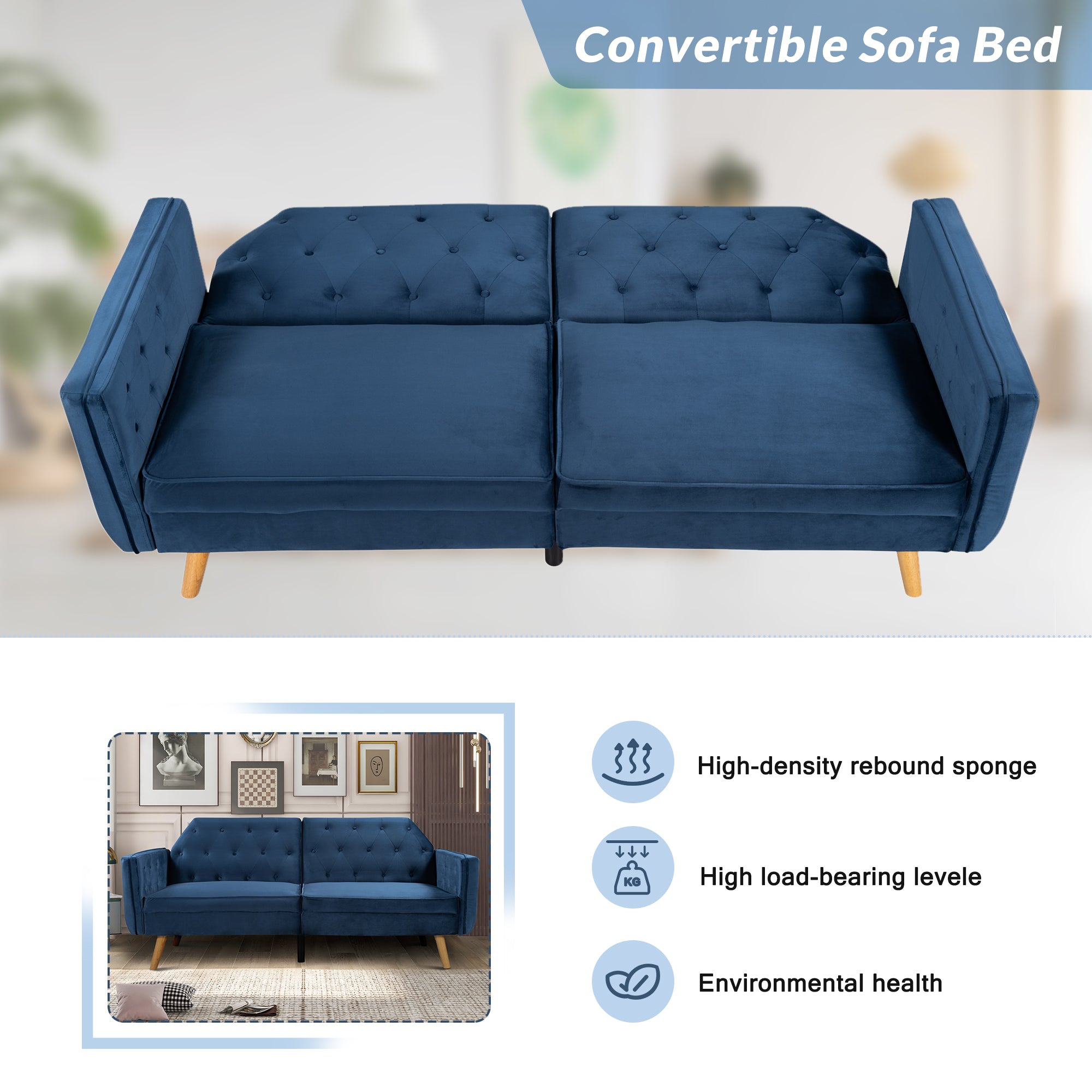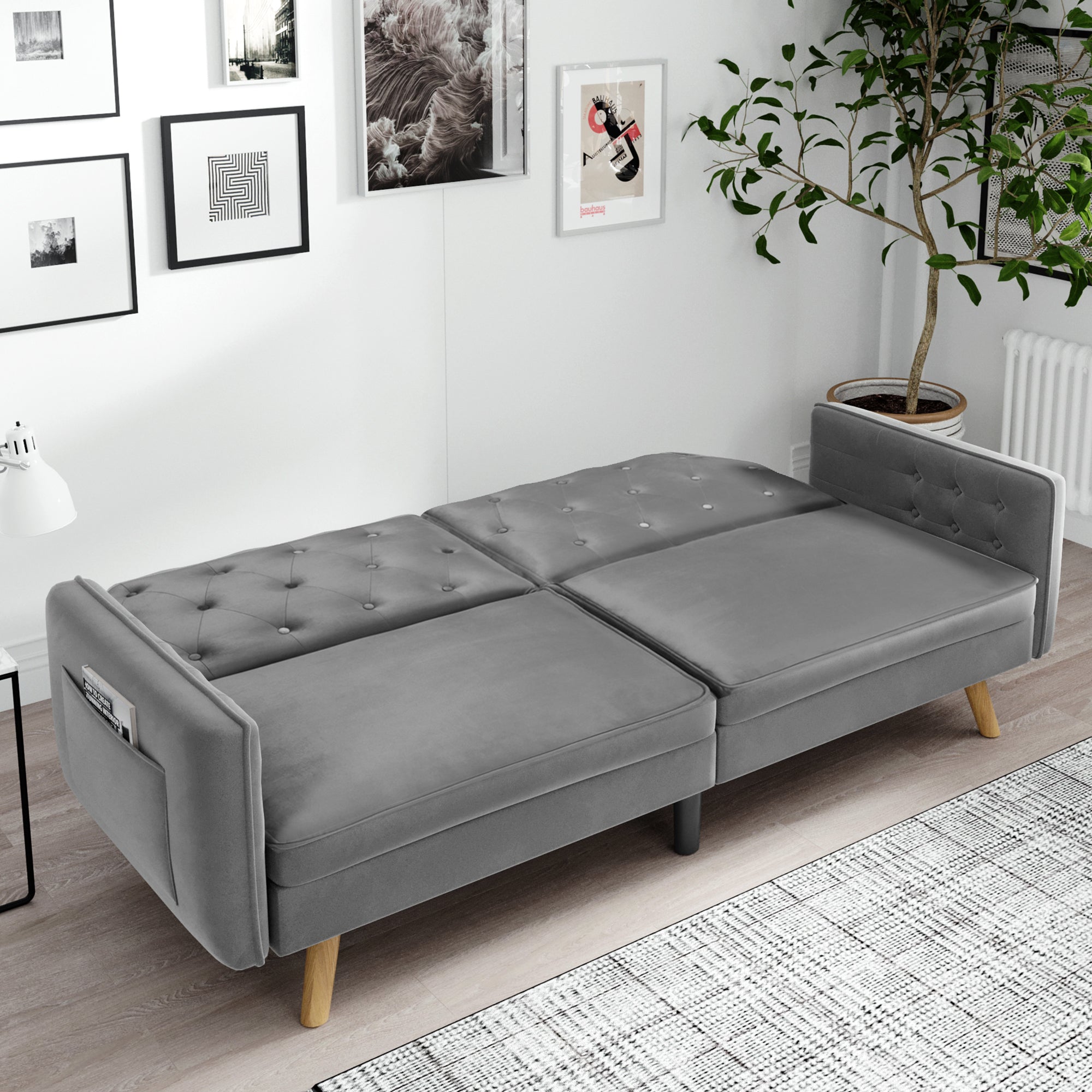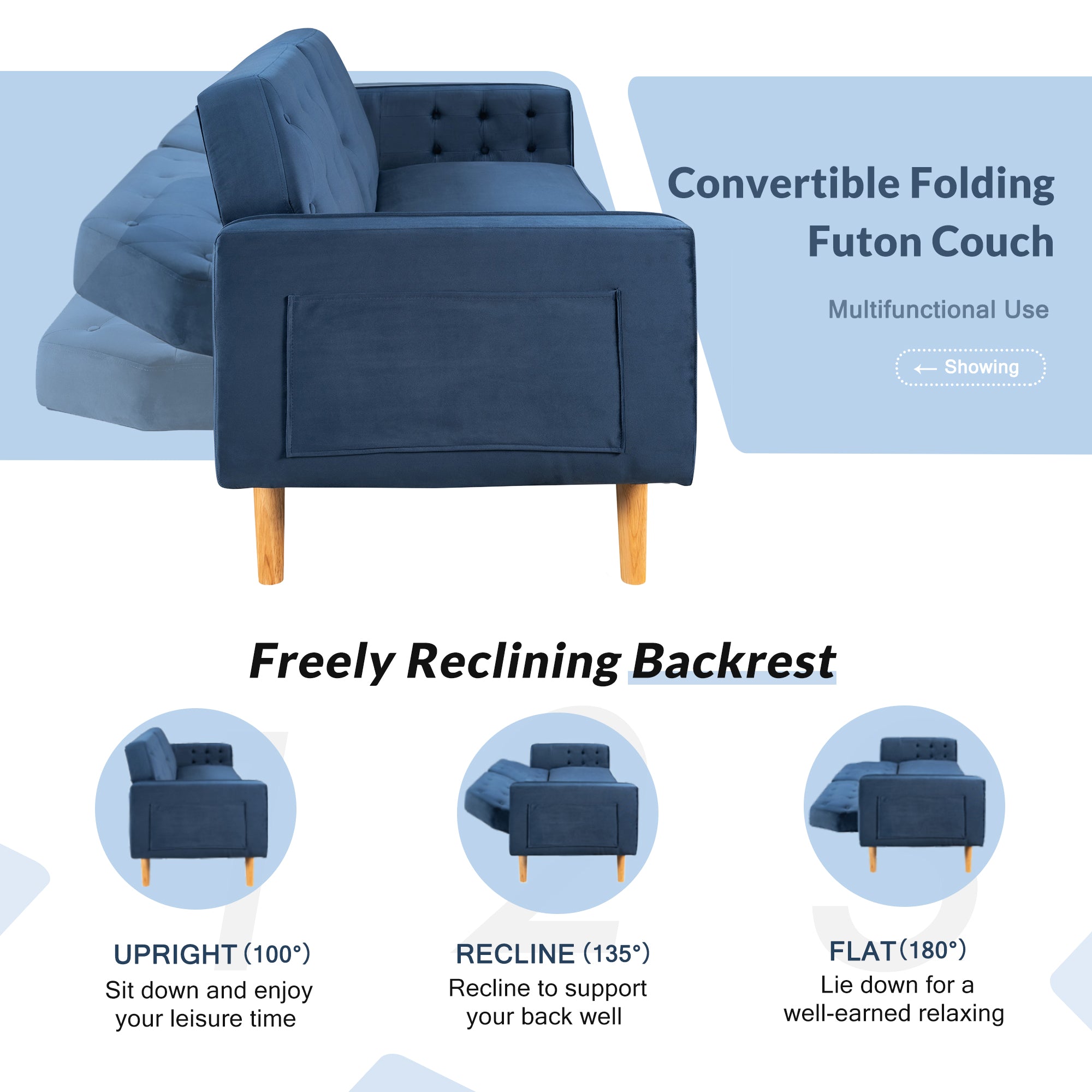 Velvet Upholstered Modern Convertible Folding Futon Sofa Bed