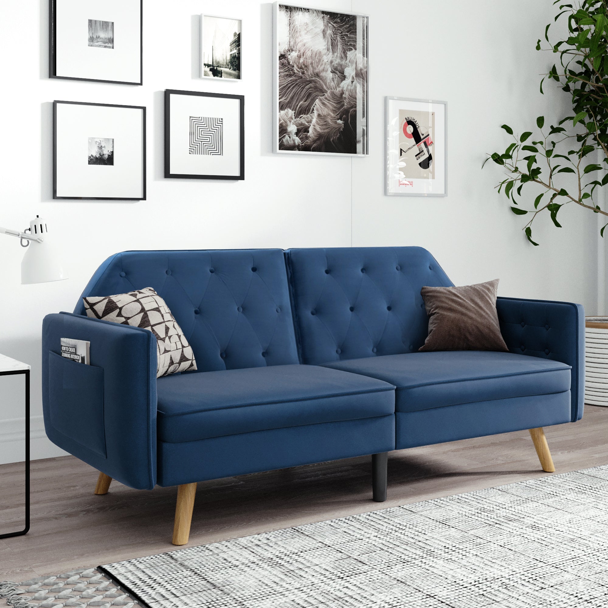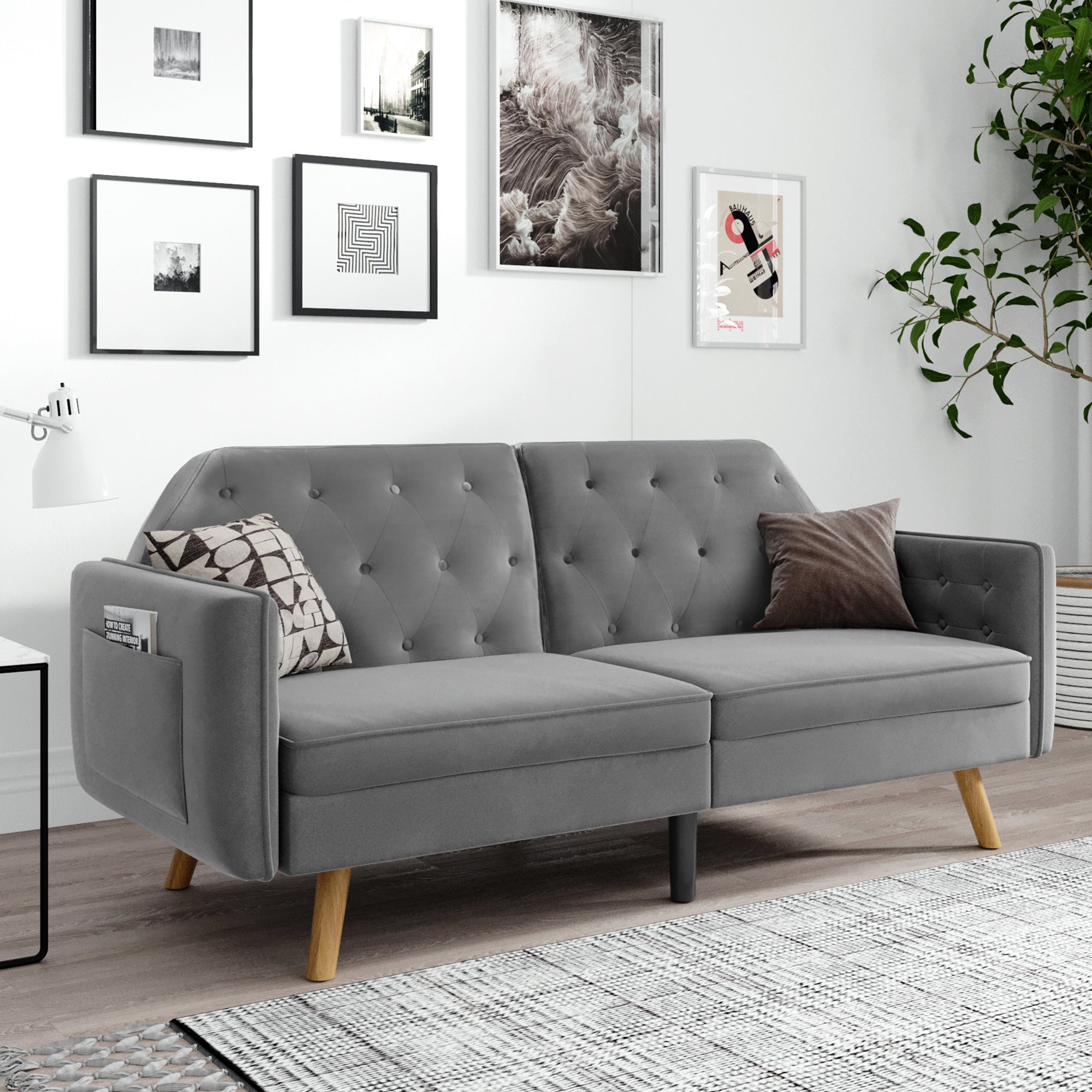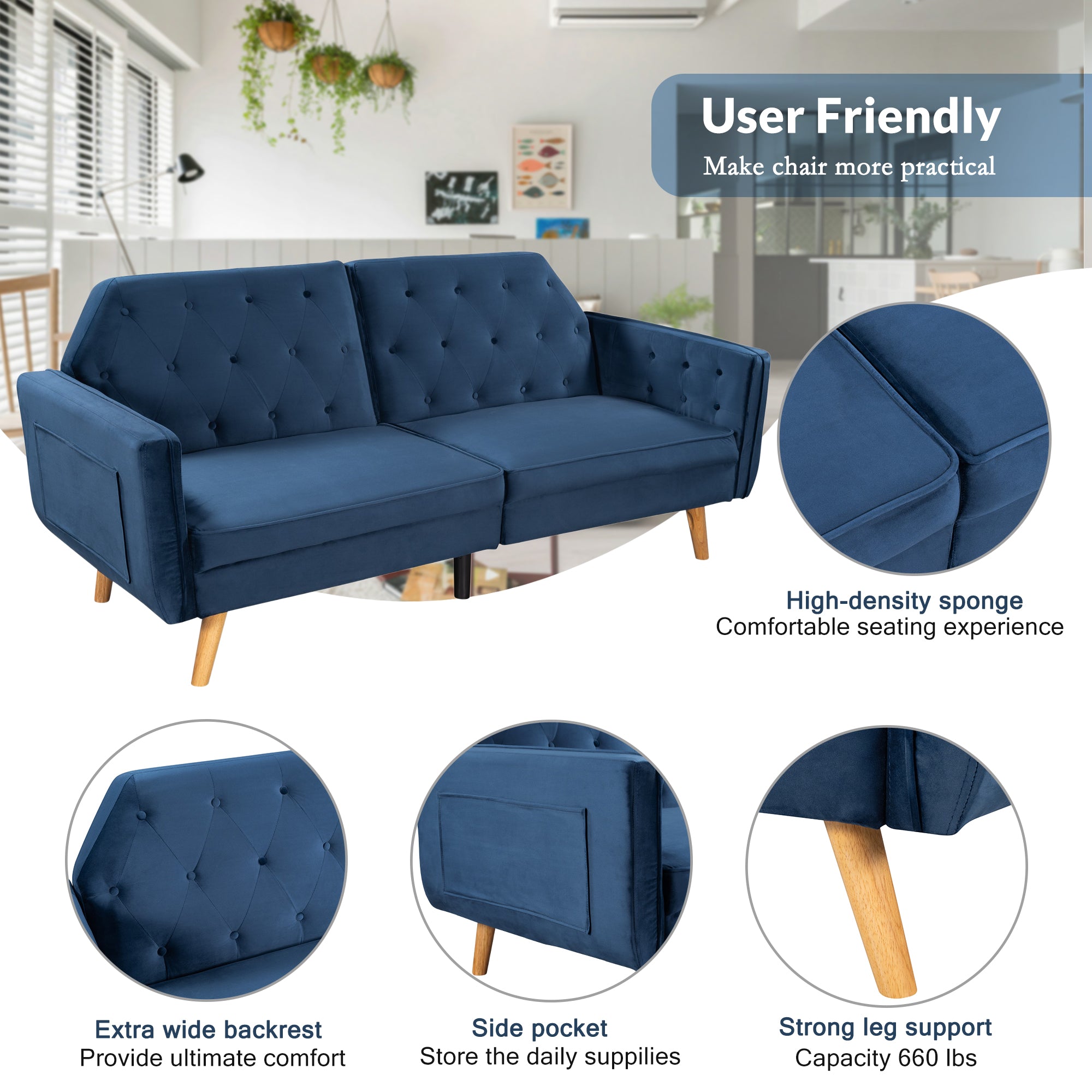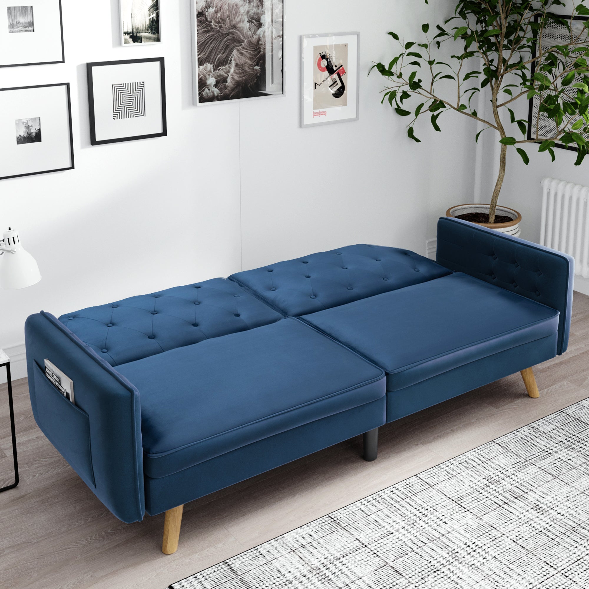 Velvet Upholstered Modern Convertible Folding Futon Sofa Bed