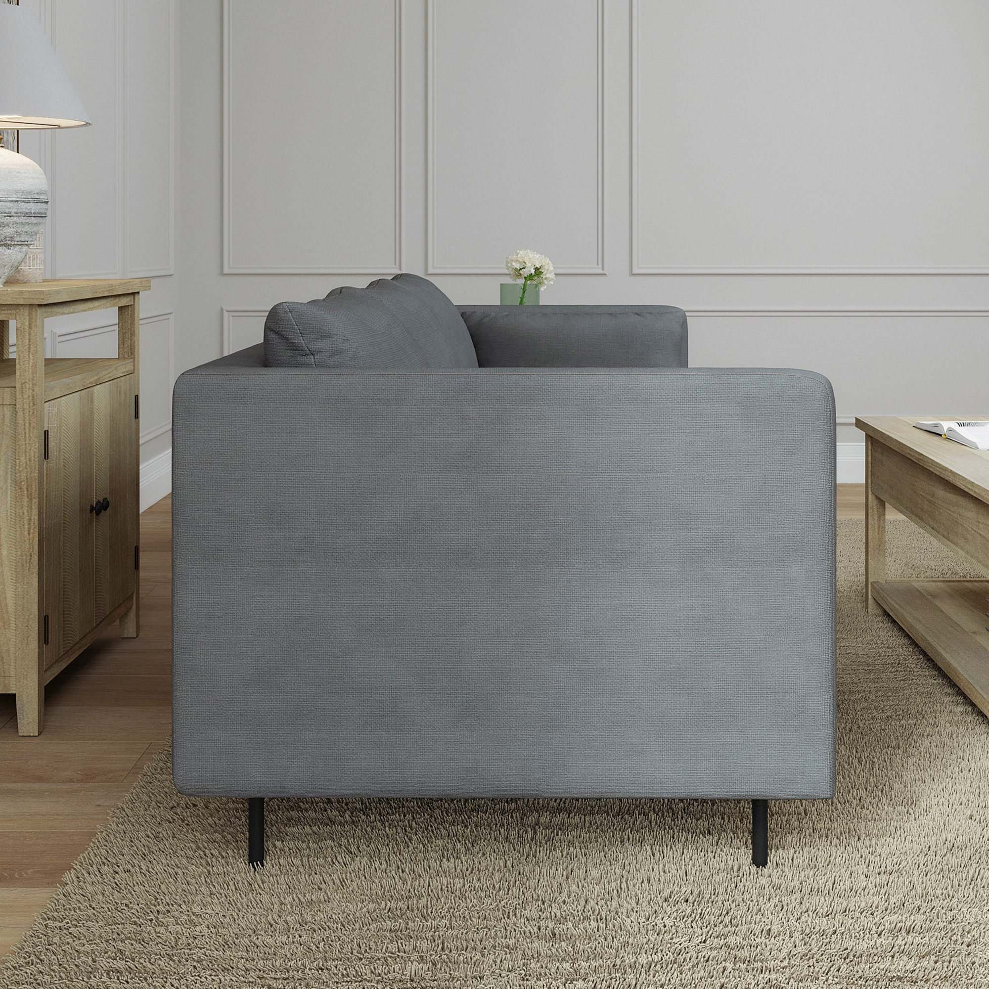 • Built to last: A naturally strong frame thanks to FSC Pinewood made Inner frame, wrapped in supportive foam cushioning and durable Polyester fabric; black metal legs for a sturdy construction• High quality made for long-lasting use and lux-looking: safely seats up to 2 adults or a maximum weight capacity of 750 lbs; foam cushioning for a modern look and comfortable seating• Throw pillows included for extra comfort and fun• Seat cushions are secured to the frame while back cushions are detachable, with removable cushion cover• Made from Premium fabric that is durable, for easy cleanups and extended wear• Simple assembly: we've got you! Everything you need is included. Simply follow our instruction and assembly is now like a little game for the weekend