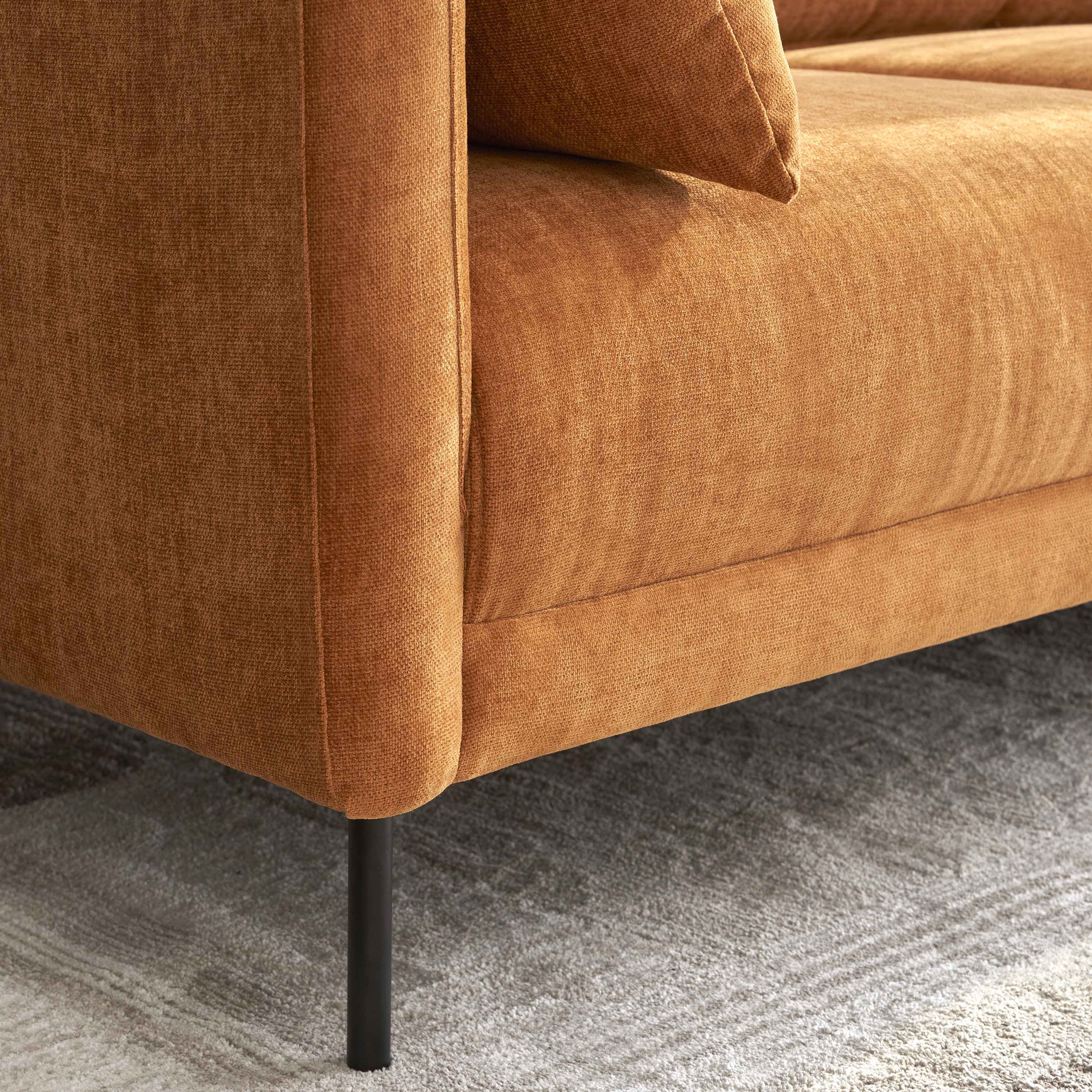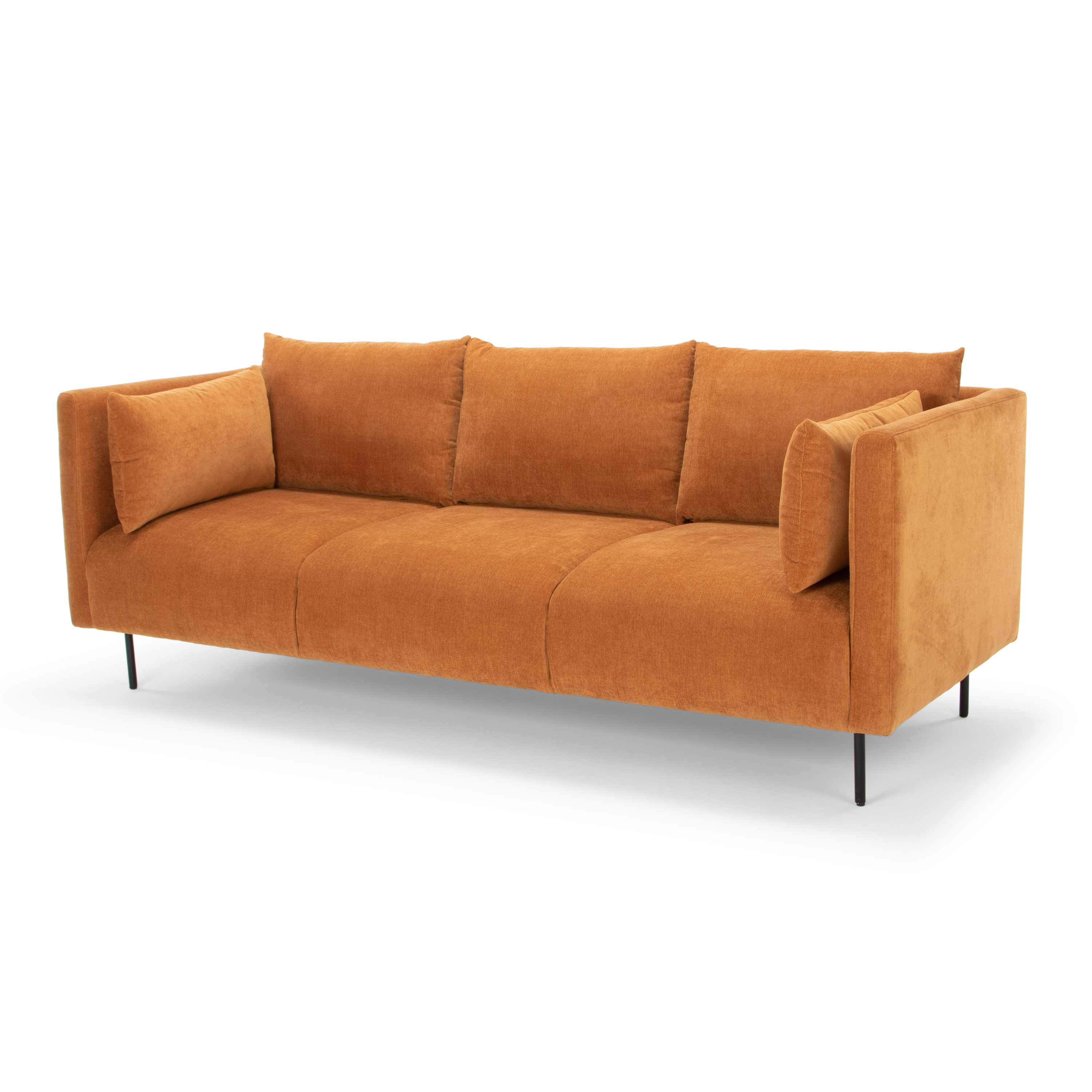 • Comfort meets style: This sofa not only adds a refined appearance to any setting, but also provides a smooth, immaculate texture as well as plush seating for extra comfort• High quality made for long-lasting use and lux-looking: beautifully tapered black metal legs offer a touch of modern contemporary look and sturdy construction. Inner frame is made from FSC New Zealand Pinewood for extra durability• Made from Premium fabric that is durable, for easy cleanups and extended wear• Throw pillows included for extra comfort and fun• Seat cushions are secured to the frame while back cushions are detachable, with removable cushion cover• Simple assembly: we've got you! Everything you need is included. Simply follow our instruction and assembly is now like a little game for the weekend