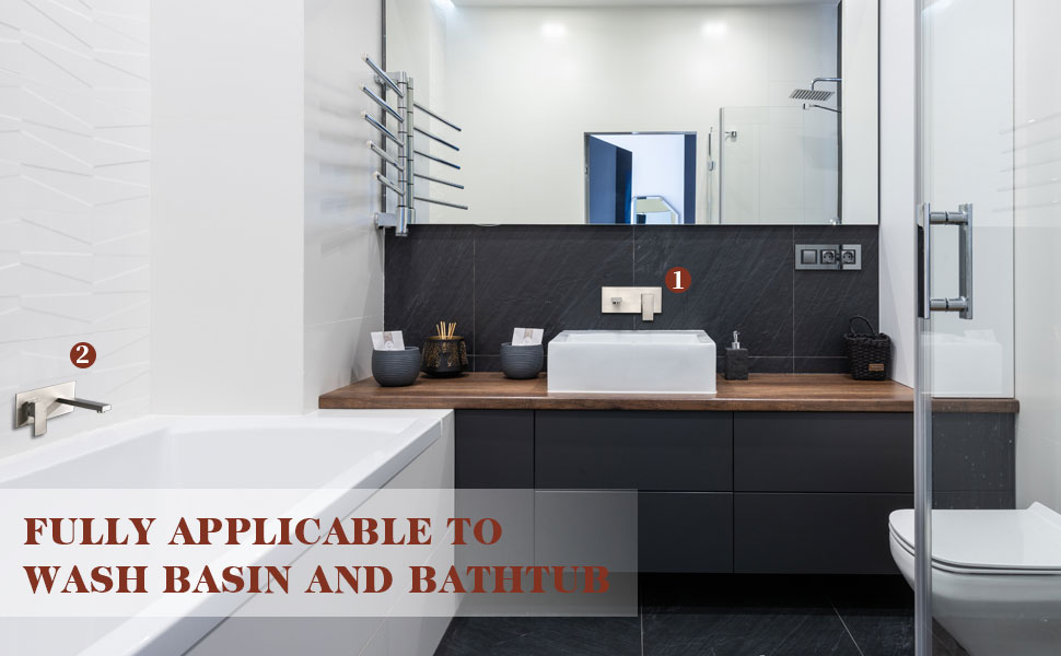 【 High quality cartridge 】Wall-mounted bathroom faucets with brushed nickel finishes exceed industry standards for durability.High-quality ceramic disc cartridge ensures maintenance-free use. Tested to be drip free after 500,000 uses.