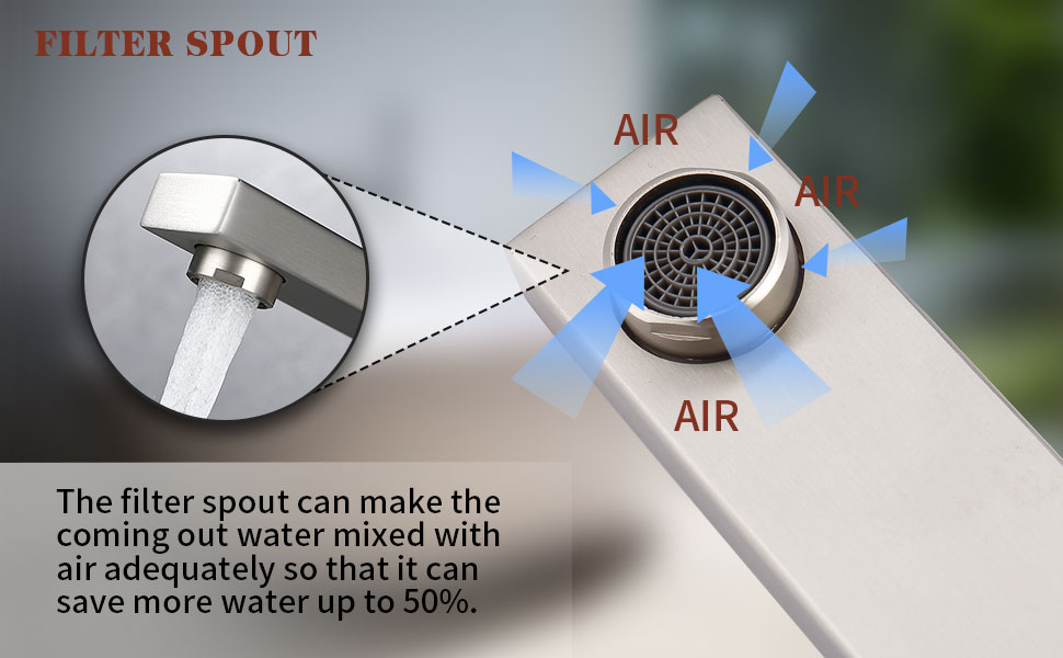 【 Bubble Aerator Spout 】The Bathroom Faucet‘s bubble aerator on the spout makes water flows out with a lot of air, steady and no water spatter, making your room drier and neater and 1.8 (GPM) flow rate also helping to save water. Fully applicable to bathtub and Wash basin.