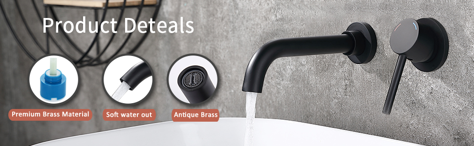 Mounting Type Wall MountMaterial Stainless Steel, BrassFinish Type Matte BlackHandle Type LeverHandle Material ZincSpout Height 2.76 InchesHandle Location RightSpout Reach 7.6 InchesInstallation Method Wall-Mounted