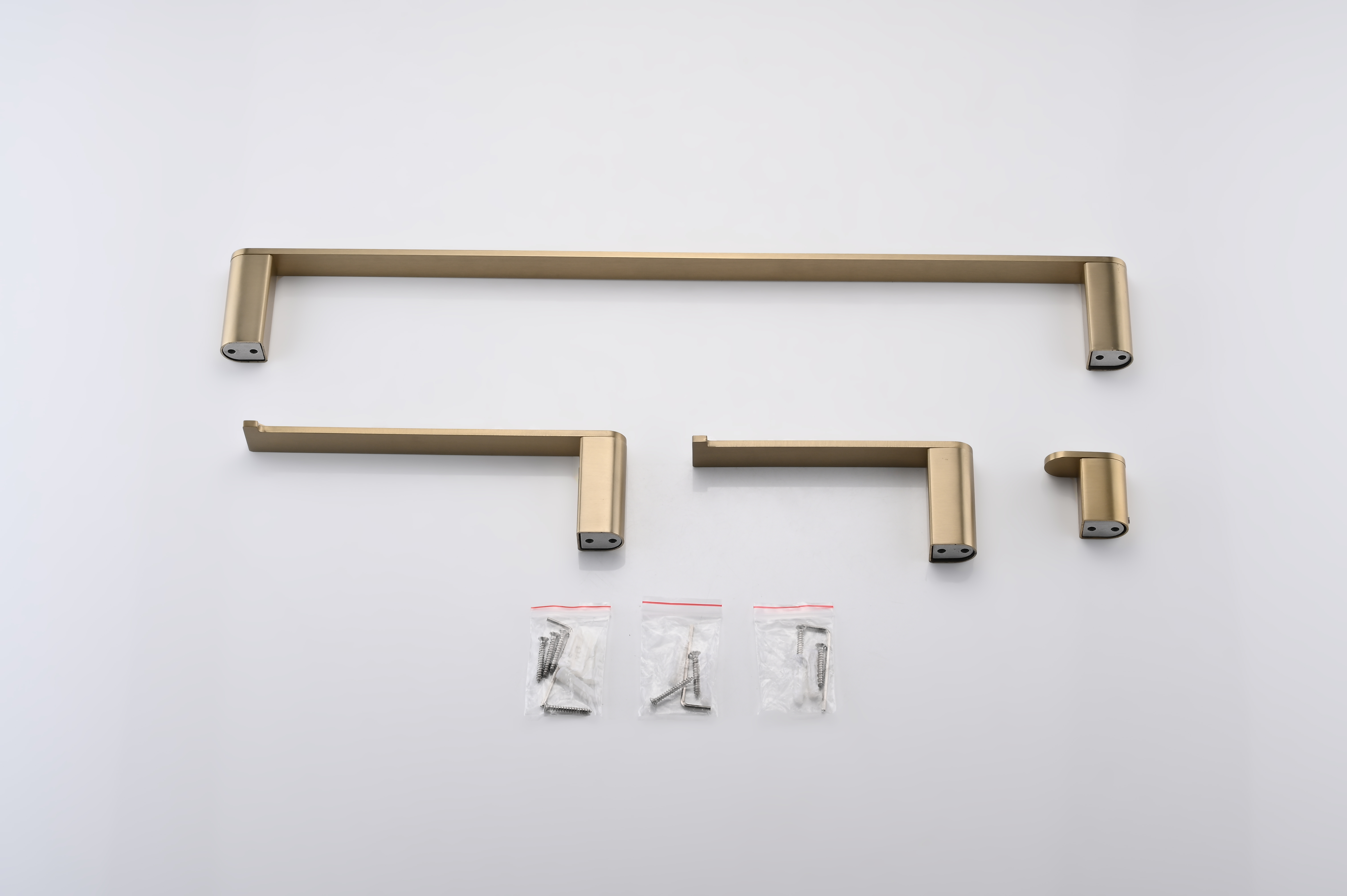 4-Pieces Brushed Gold Bathroom Hardware Set SUS304 Stainless Steel Round Wall Mounted Includes Hand Towel Bar, Toilet Paper Holder, Robe Towel Hooks, and Bathroom Accessories Kit.![]()