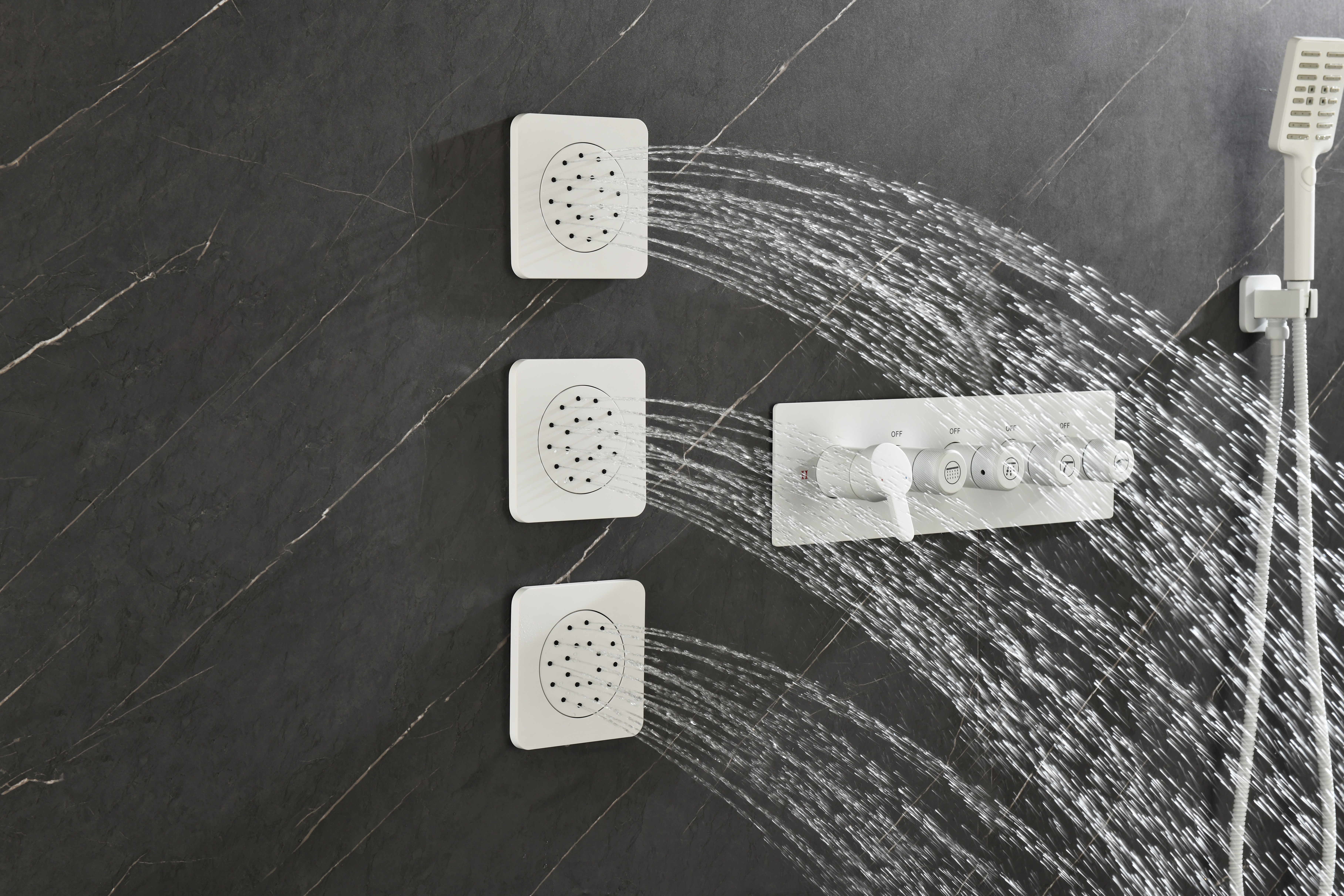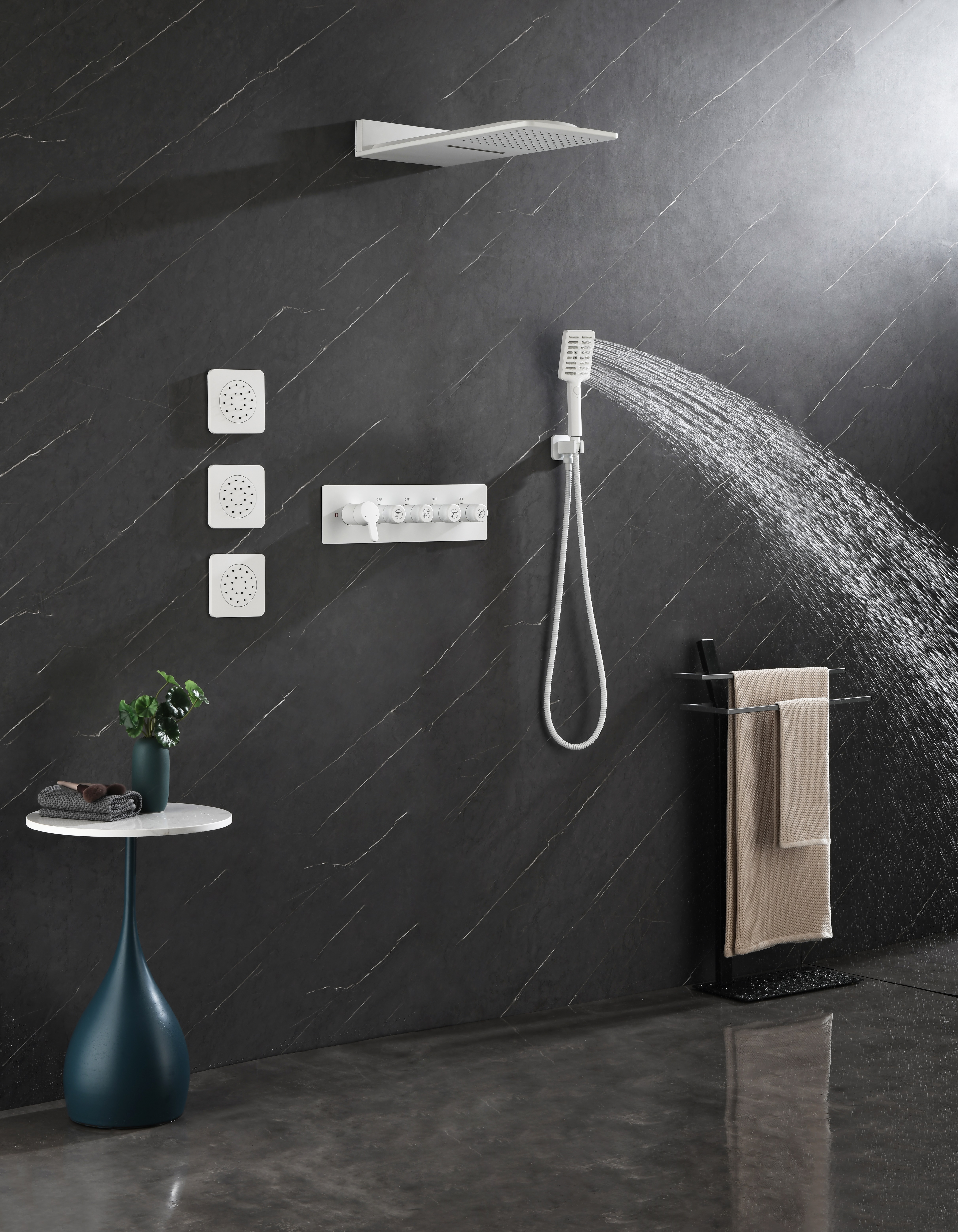 Wall Mounted Waterfall Rain Shower System With 3 Body Sprays & Handheld Shower