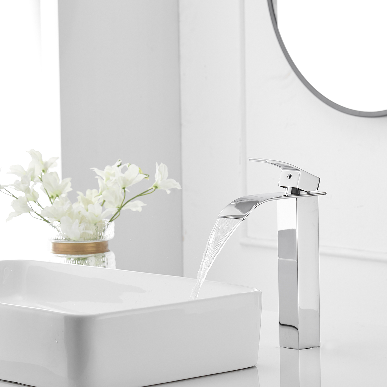 Charming and simplistic, BWE Waterfall Bathroom Sink Faucet is a brilliant accessory for your bathroom. BWE always uses the best material to bring the best guarantee and quality to our customers. The faucet's low lead solid brass fabricated body ensures the service life of the faucet and the best water experience for customers. It is available in multiple finishes and is perfect for bathrooms with contemporary and farmhouse styles. We are committed to 100% original design, products design inspiration comes from the shape of Natural Waterfall, International Chess, Aladdin's Lamp, Kerosene Lamp, Roman Column, etc.