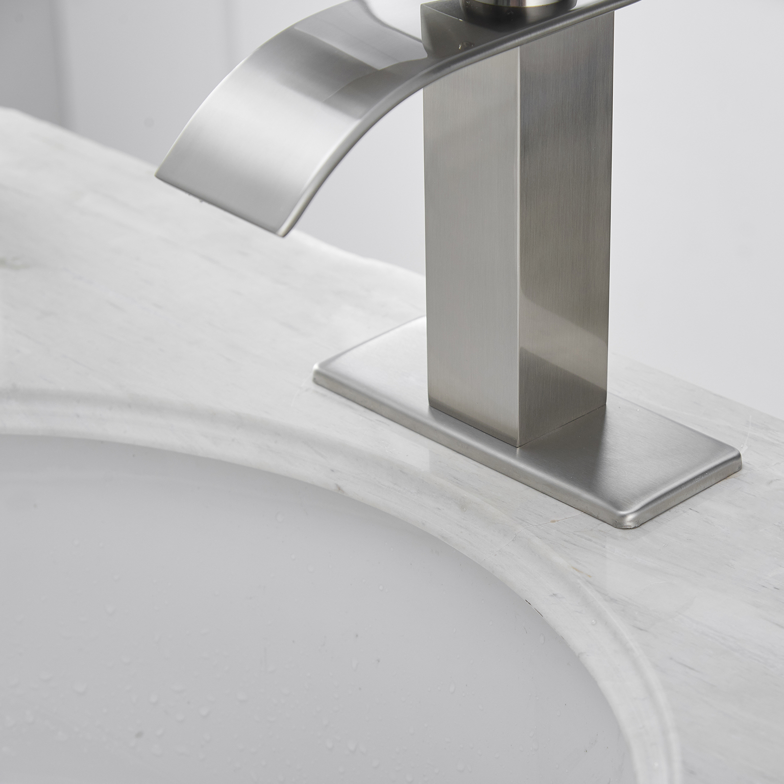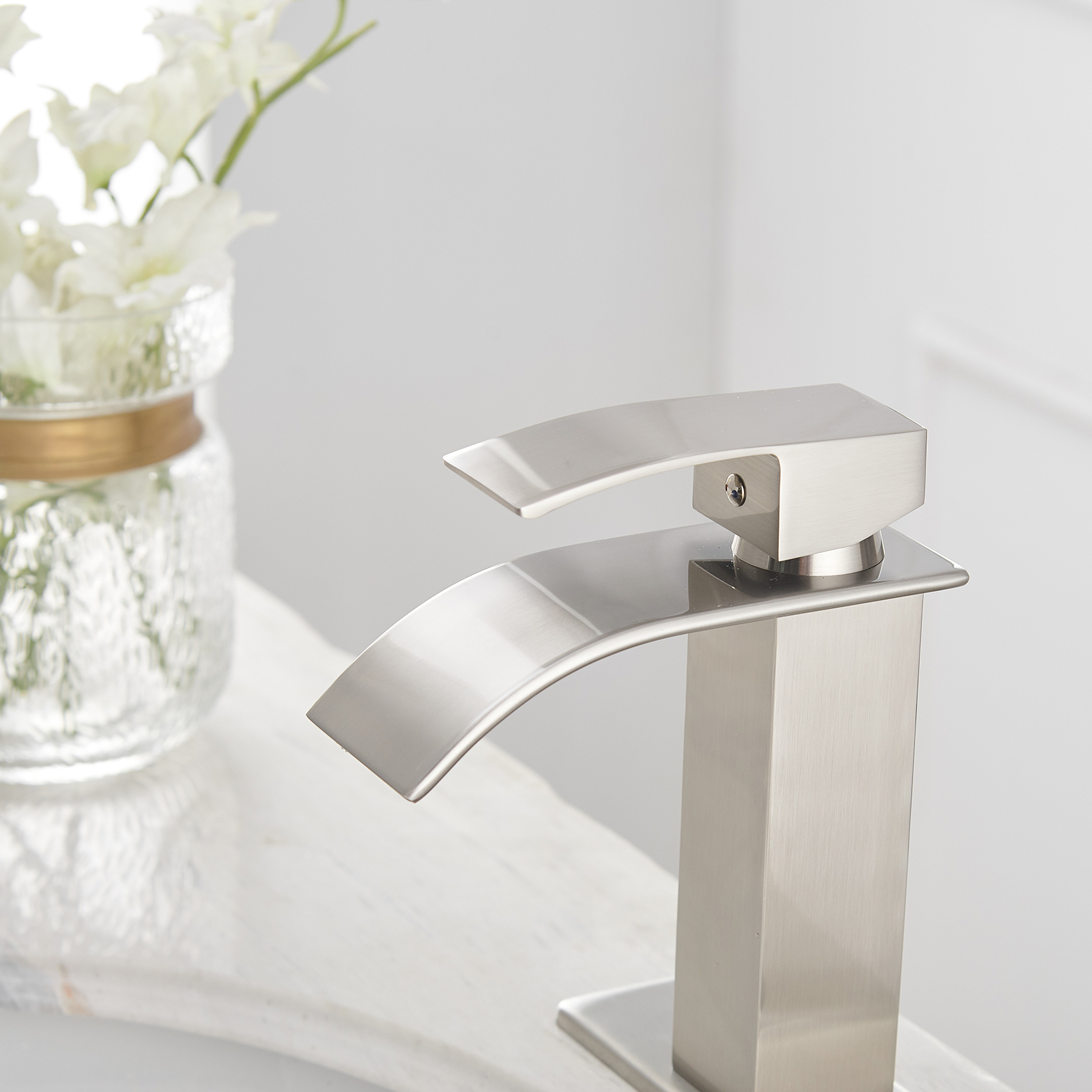 - Waterfall Spout: The bathroom faucet provides a clear and steady laminar stream, that provides a beautiful water presentation. Single lever design for effortless flow and temperature control