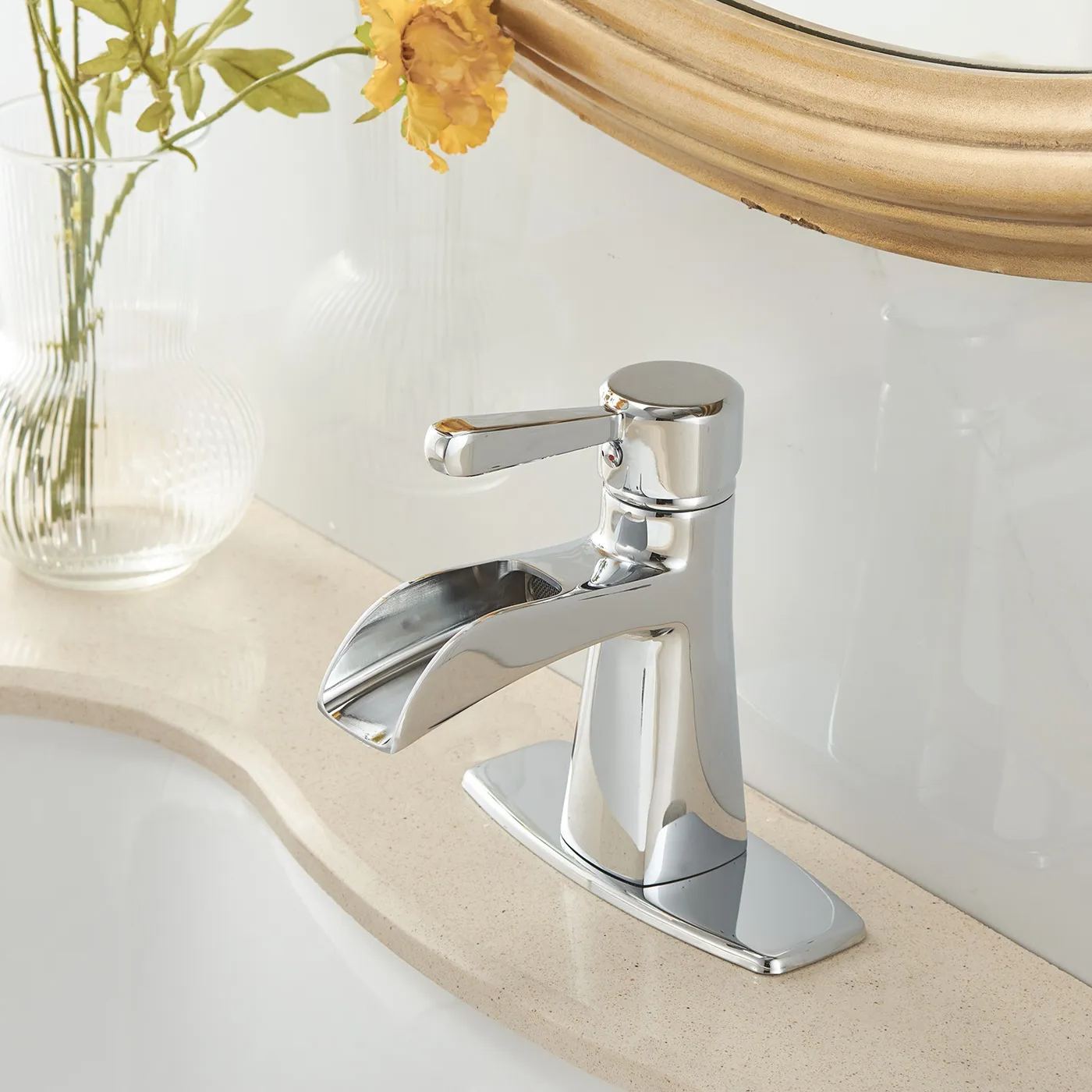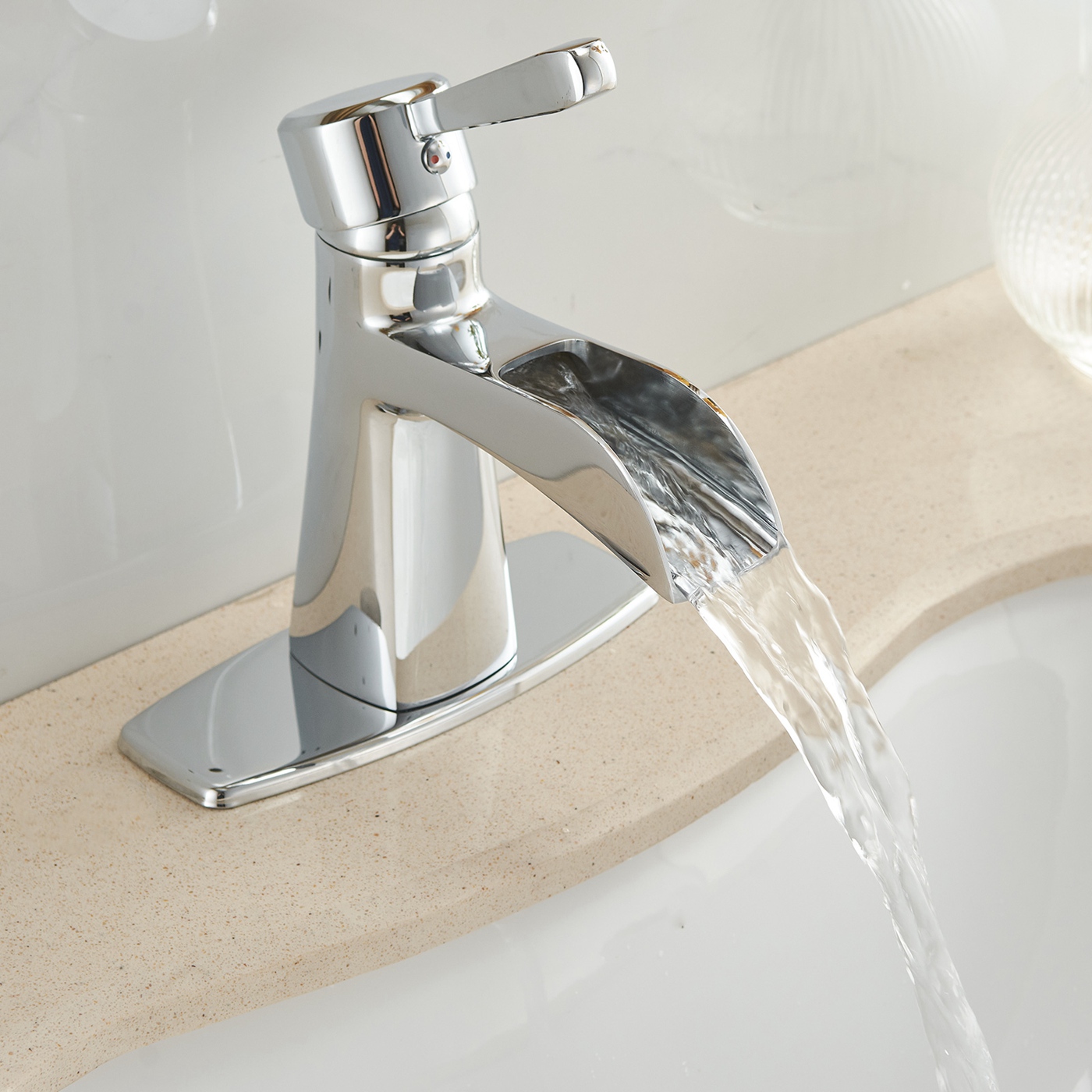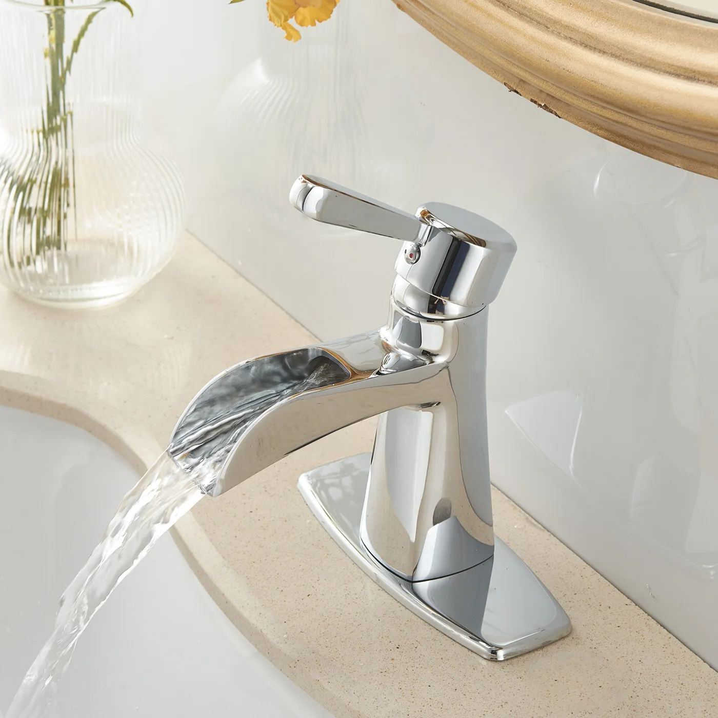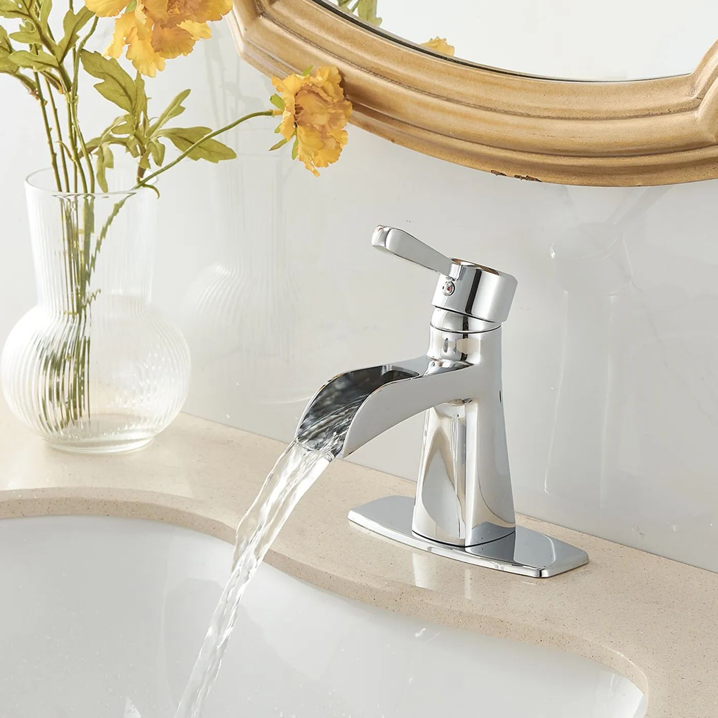 - Waterfall Spout: The bathroom faucet provides a clear and steady laminar stream, that provides a beautiful water presentation. Single lever design for effortless flow and temperature control