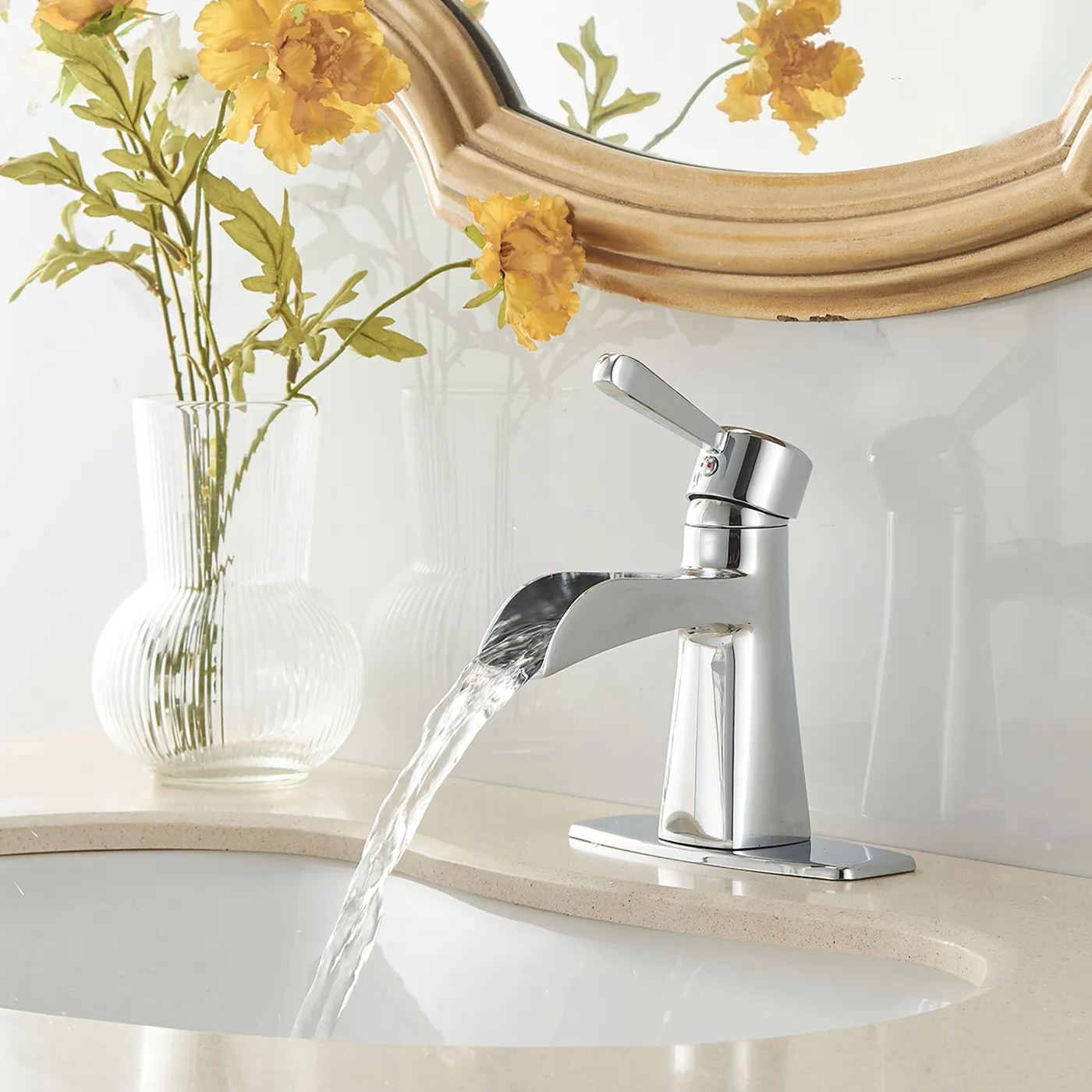The charming and simplistic BWE Single Handle One-Hole Waterfall Bathroom Faucet is a brilliant accessory for your bathroom.BWE always uses the best material to bring the best guarantee and quality to our customers. The faucet's low lead solid brass fabricated body ensures the service life of the faucet and the best water experience for customers.