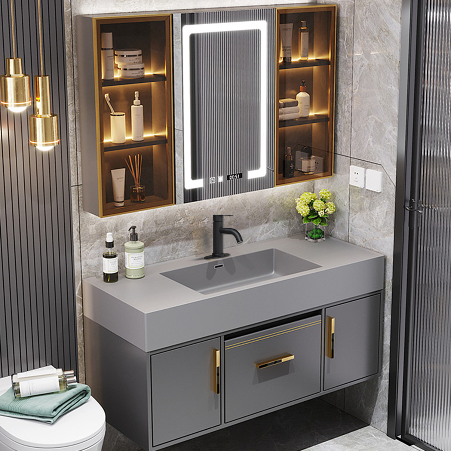 Waterfall Spout Bathroom Faucet,Single Handle Bathroom Vanity Sink Faucet
