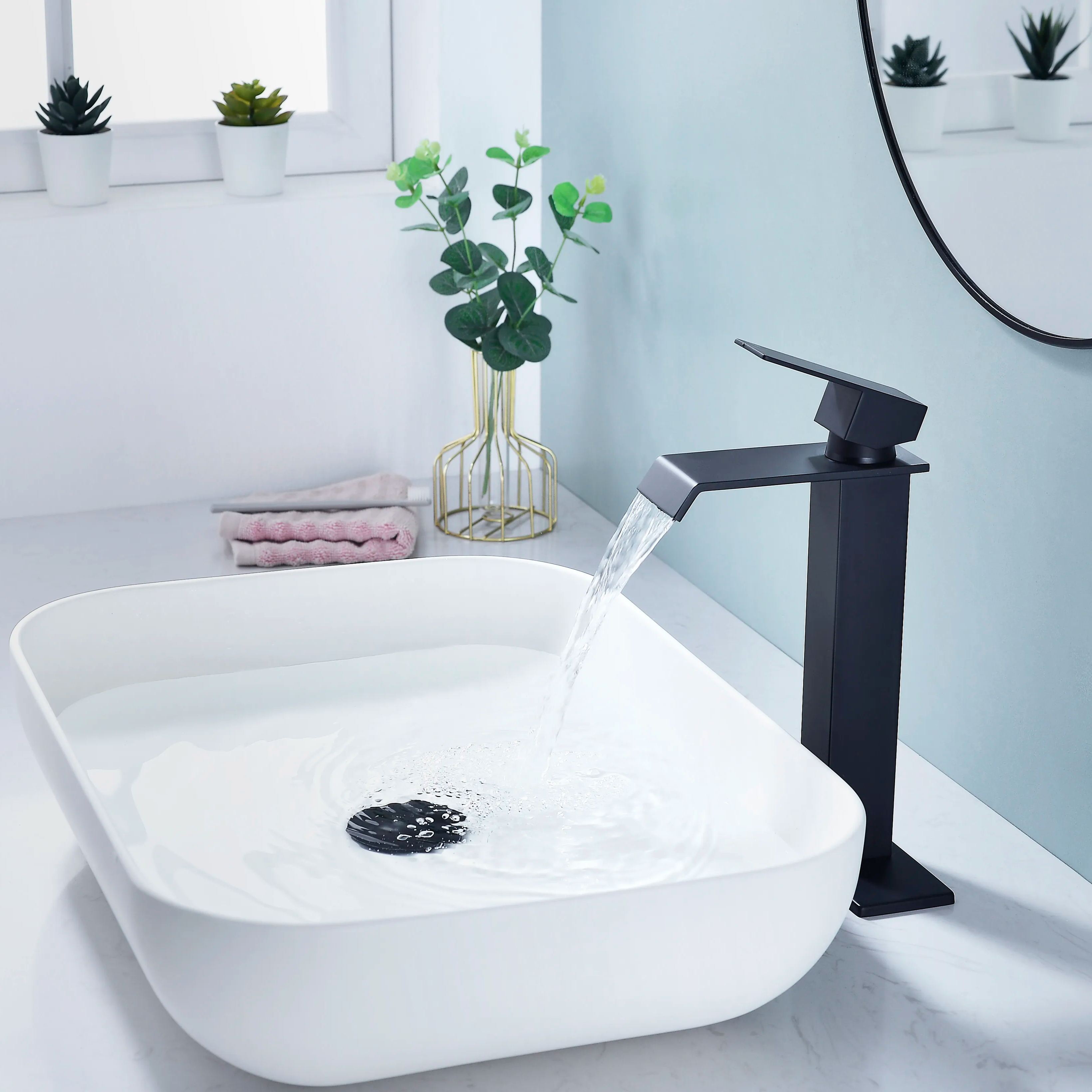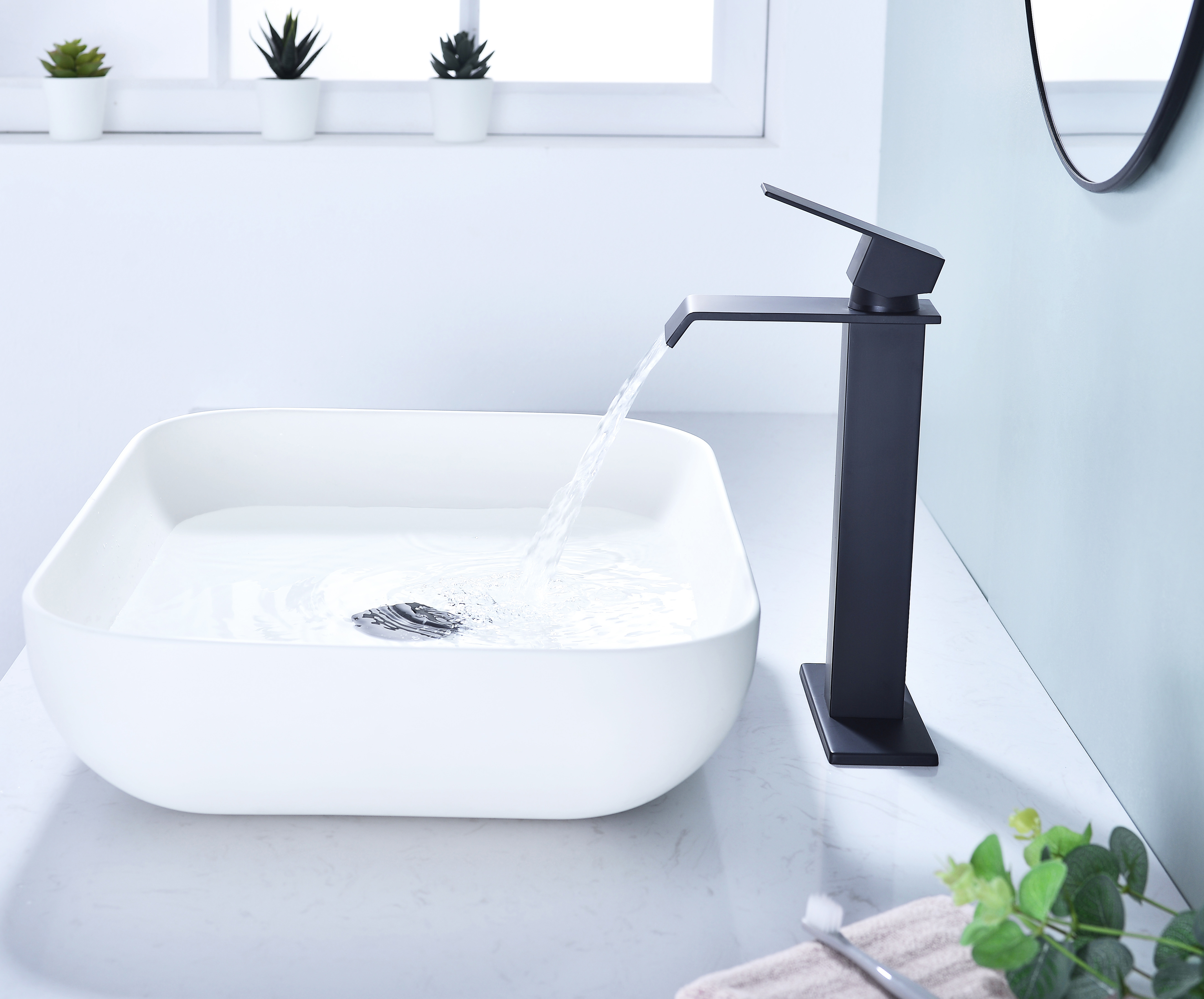 【WATERFALL DESIGN】The ultra-wide waterfall spout design makes large water flow. It provides a clear, powerful and beautiful laminar stream. Simple design suit for any style of the house.