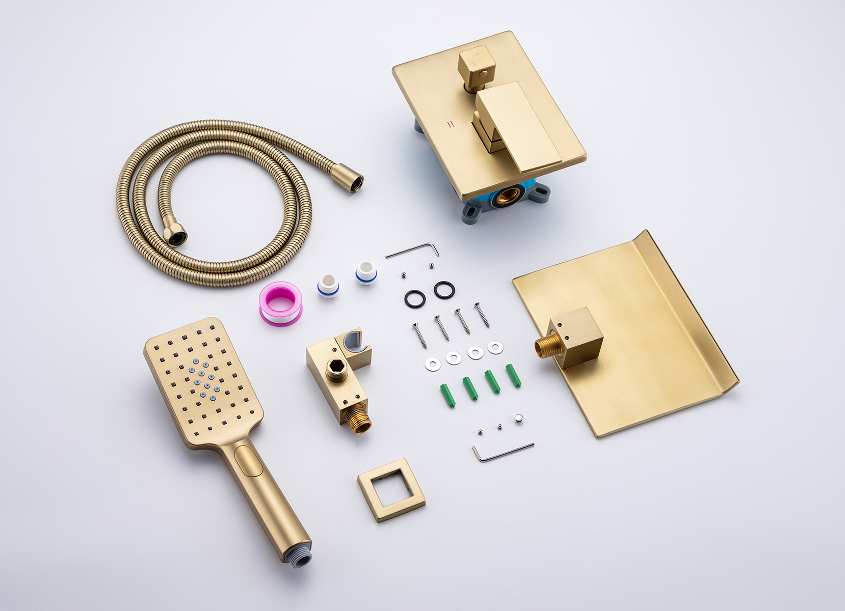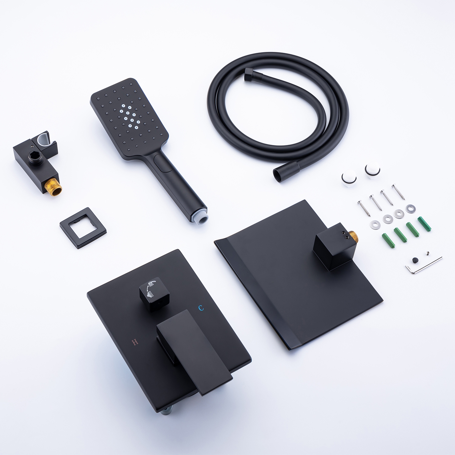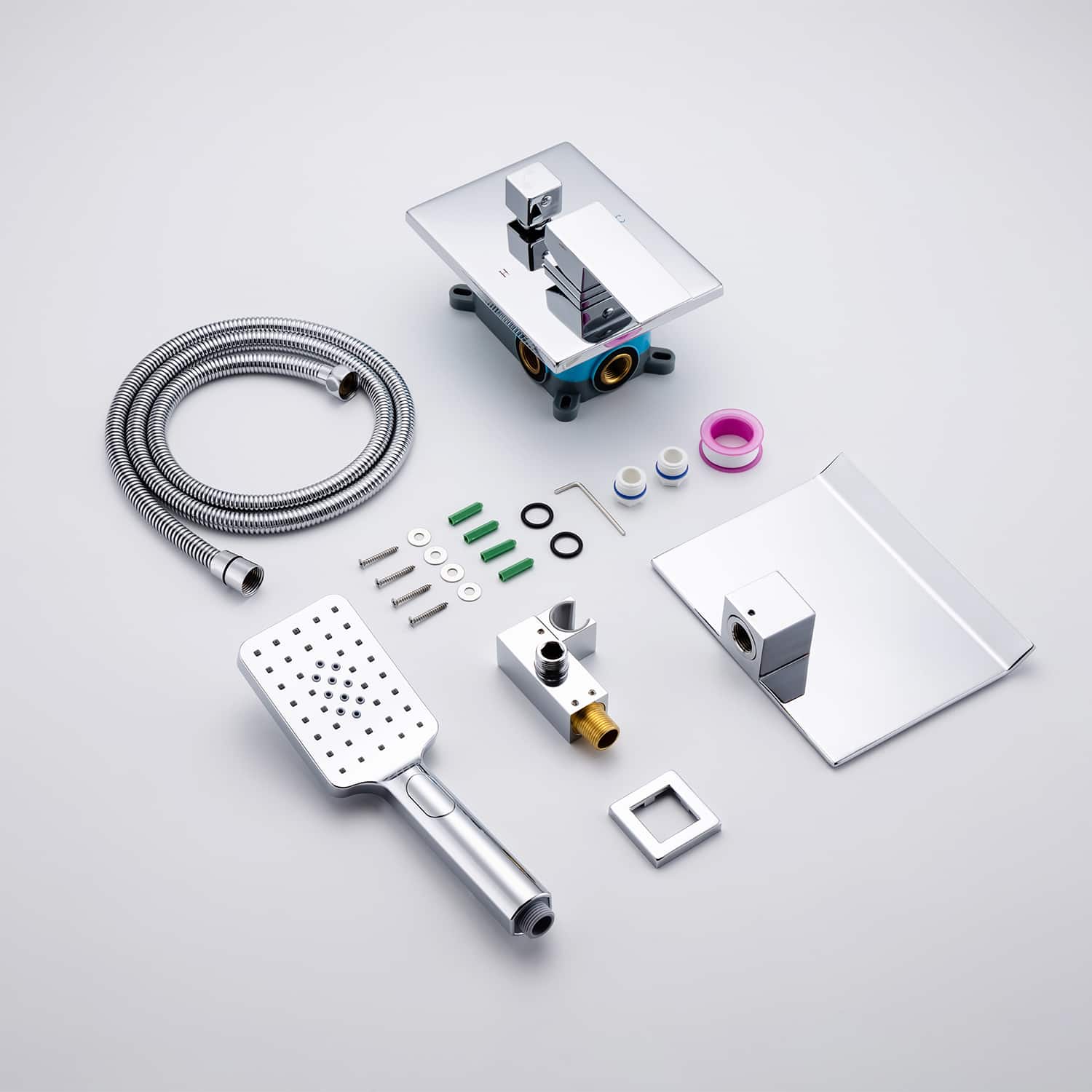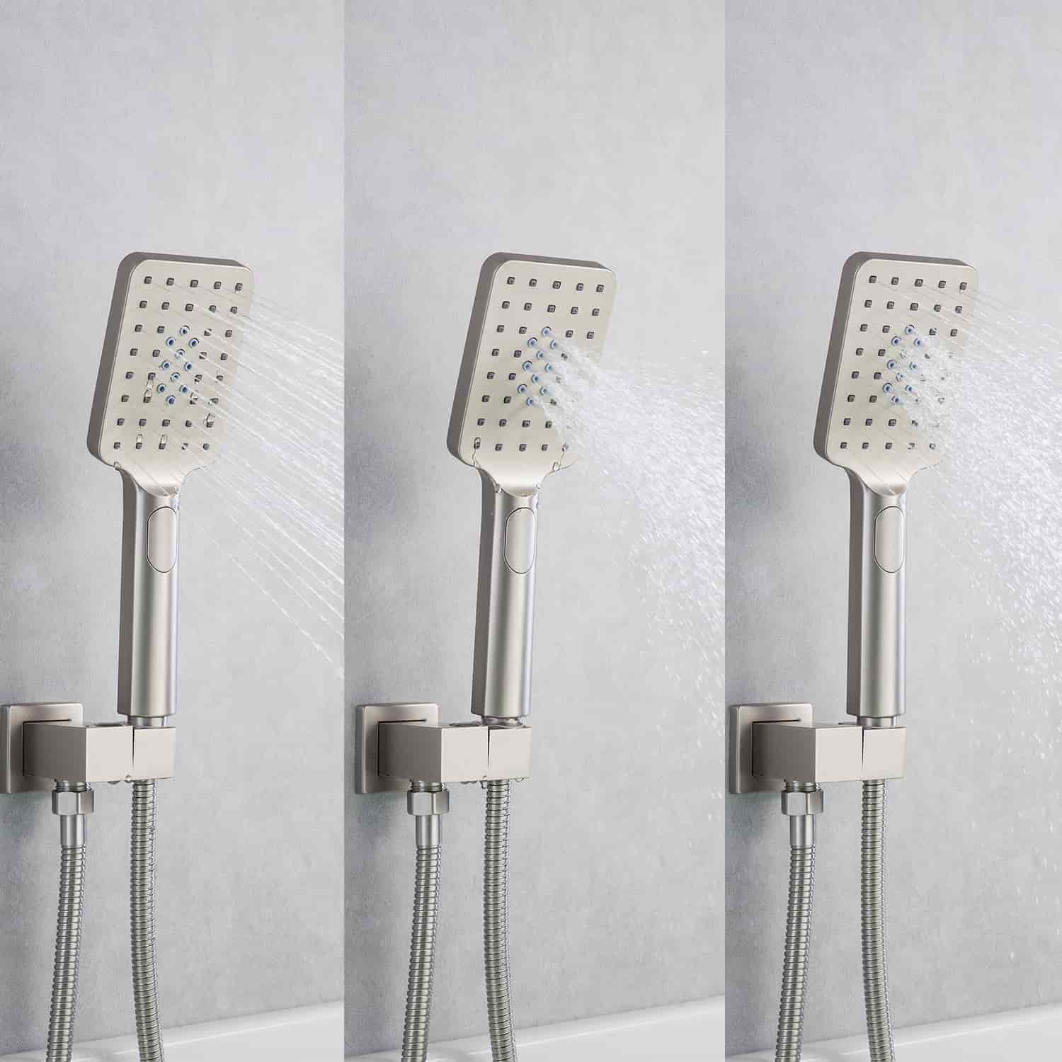 Pieces Include: 3 spray setting hand-held shower head, 59" shower hose, a shower holder and a control valve, all you need for having the ultimate shower experience!