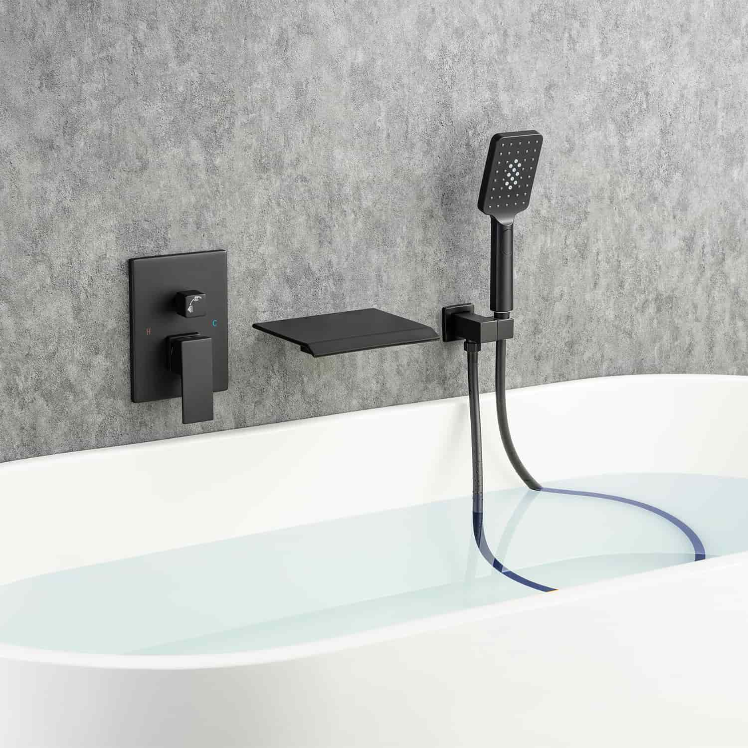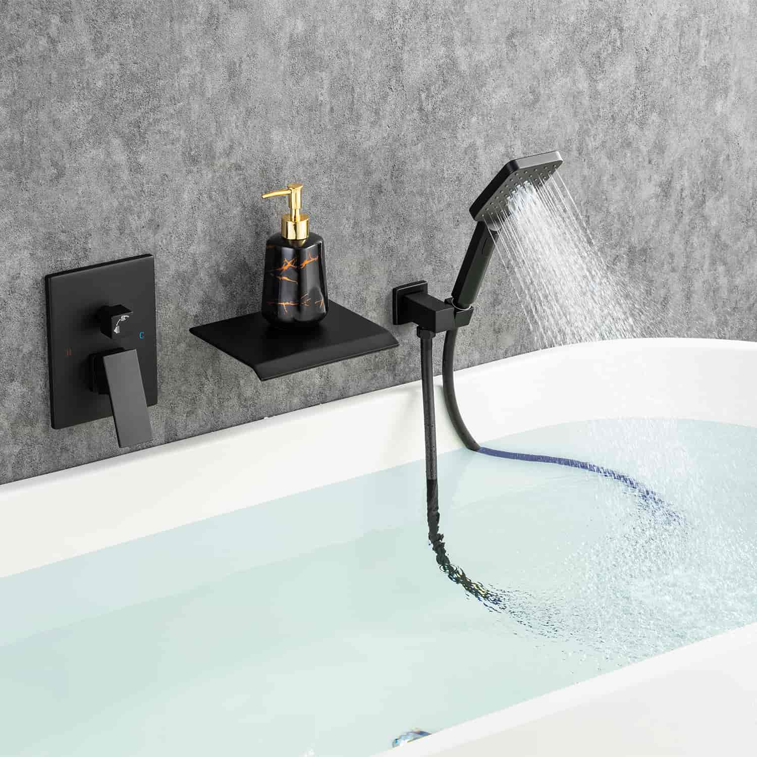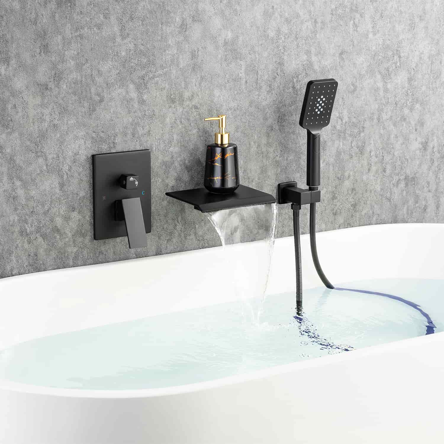 Waterfall Tub Faucet Wall Mount Roman Tub Filler Single Handle Brass Bathroom Bathtub Faucet with Hand Shower