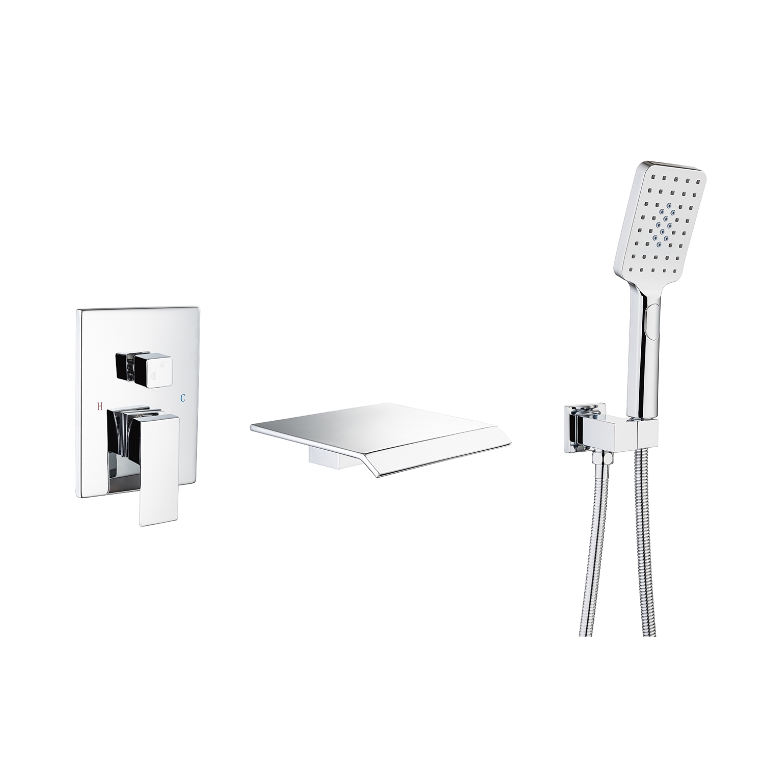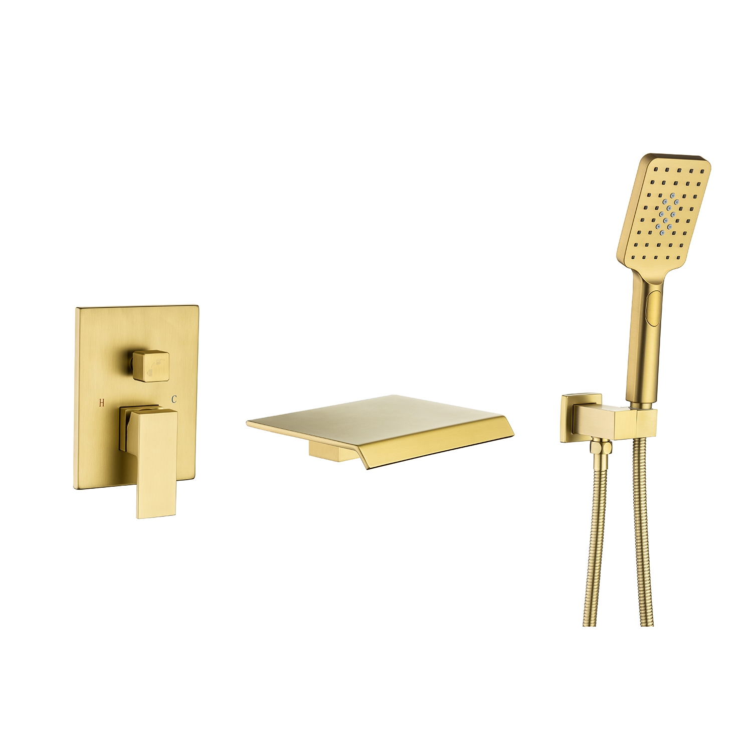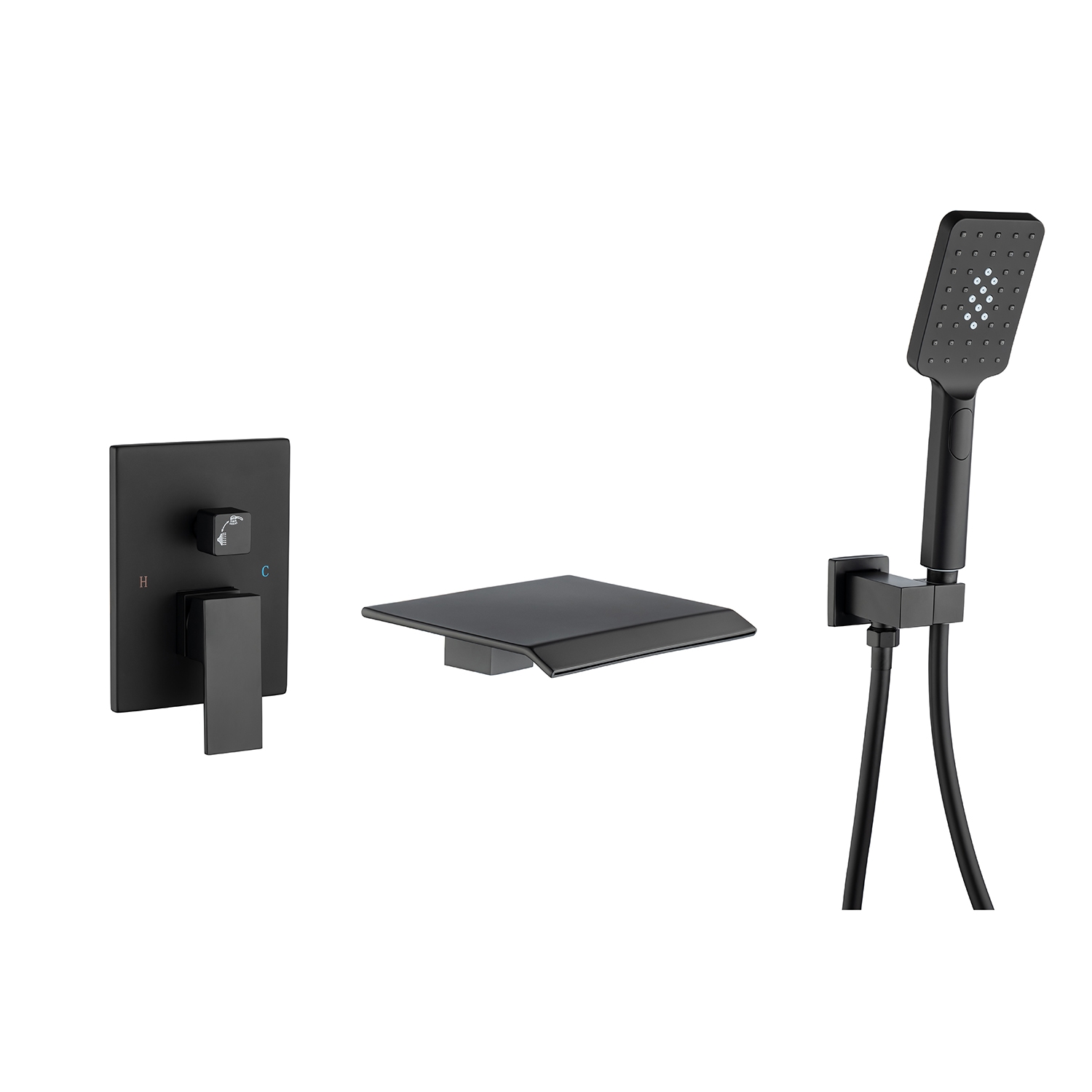 Waterfall Tub Faucet Wall Mount Roman Tub Filler Single Handle Brass Bathroom Bathtub Faucet with Hand Shower