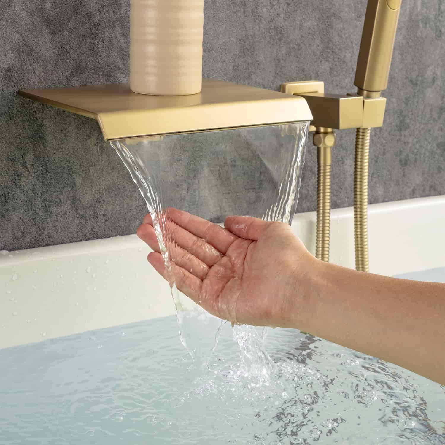 Waterfall Spout: Waterfall spout for larger water flow to fill the tub faster.
