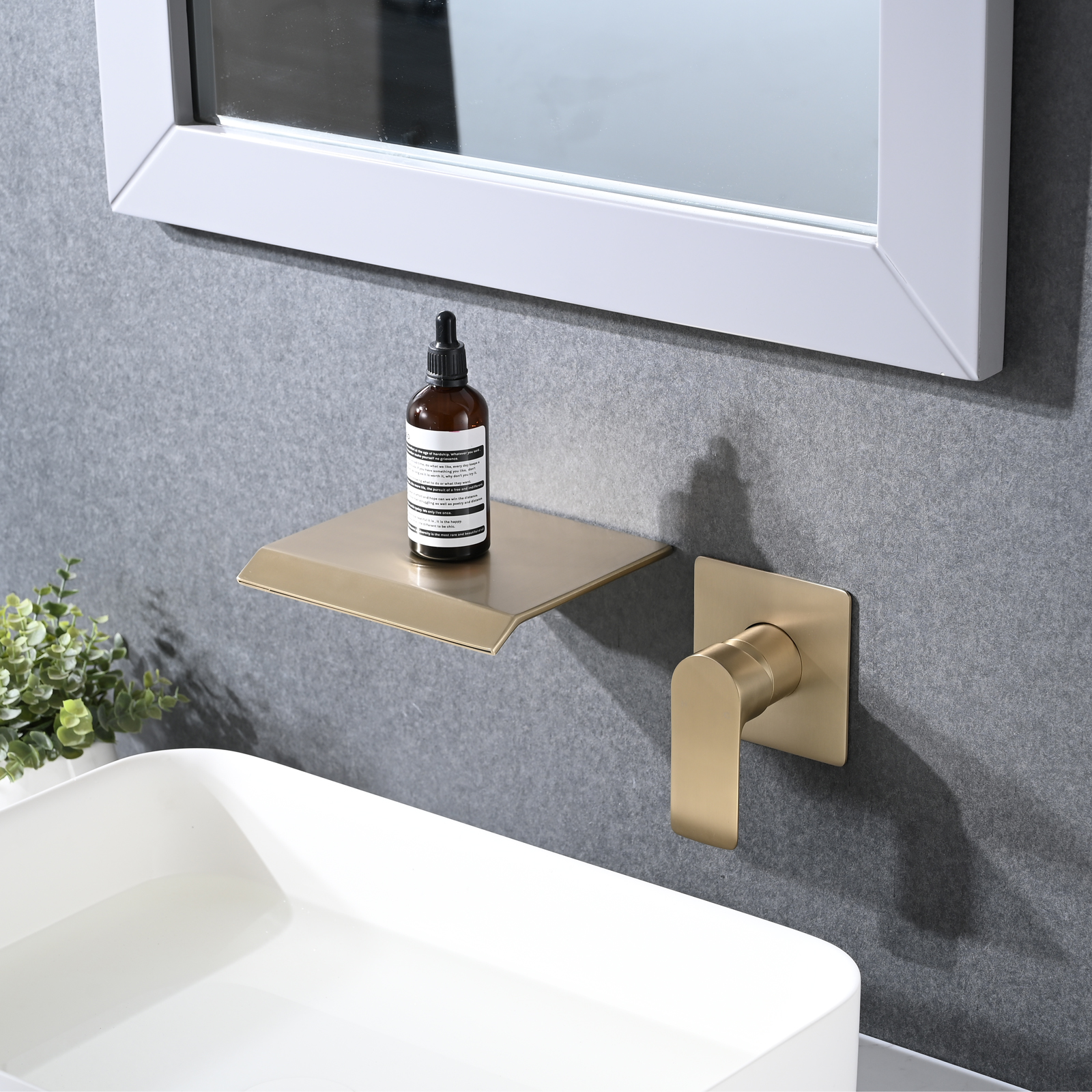 Brushed Gold Waterfall Wall Mounted Sink Faucet, Tub Faucet