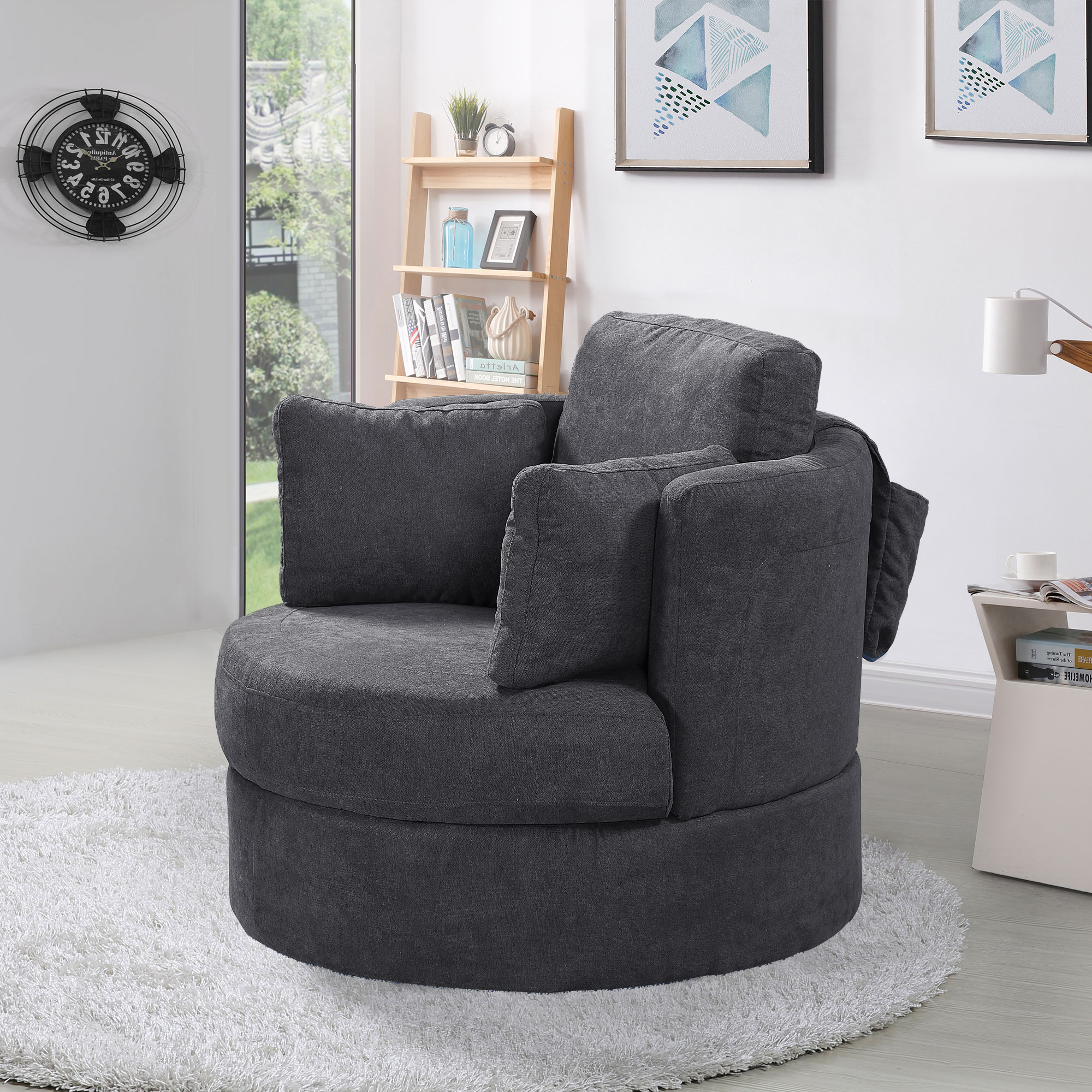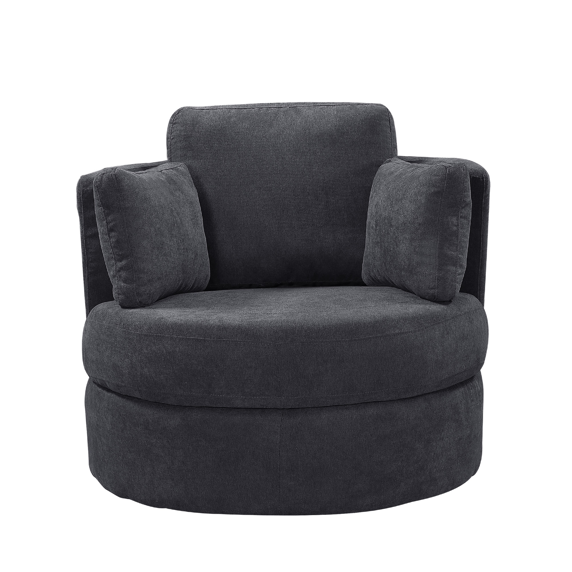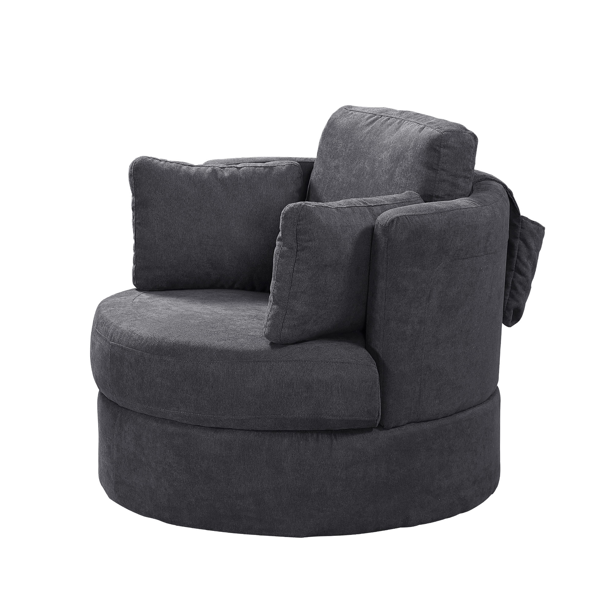 Welike Dark Grey Swivel Accent Barrel Modern Sofa Lounge Club Round Chair Linen Fabric for Living Room Hotel with 3 Pillows and storage (the other SKU: )