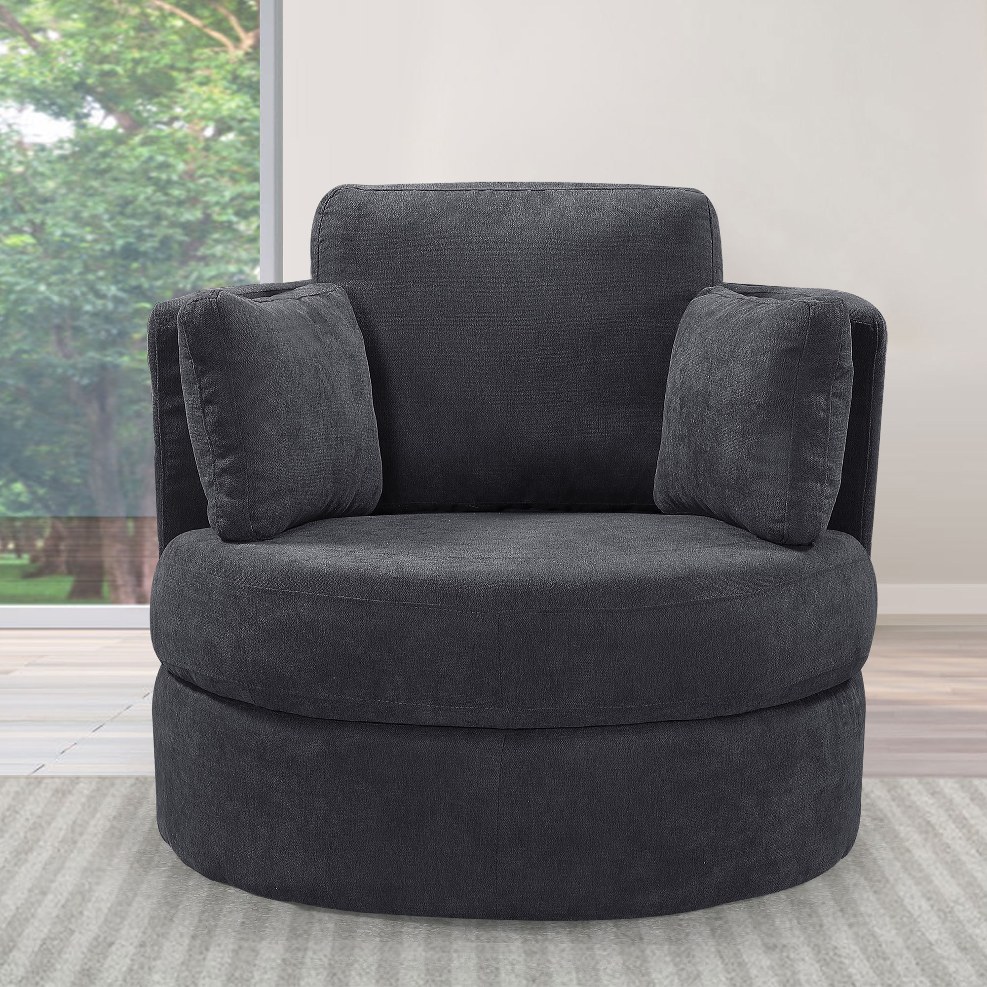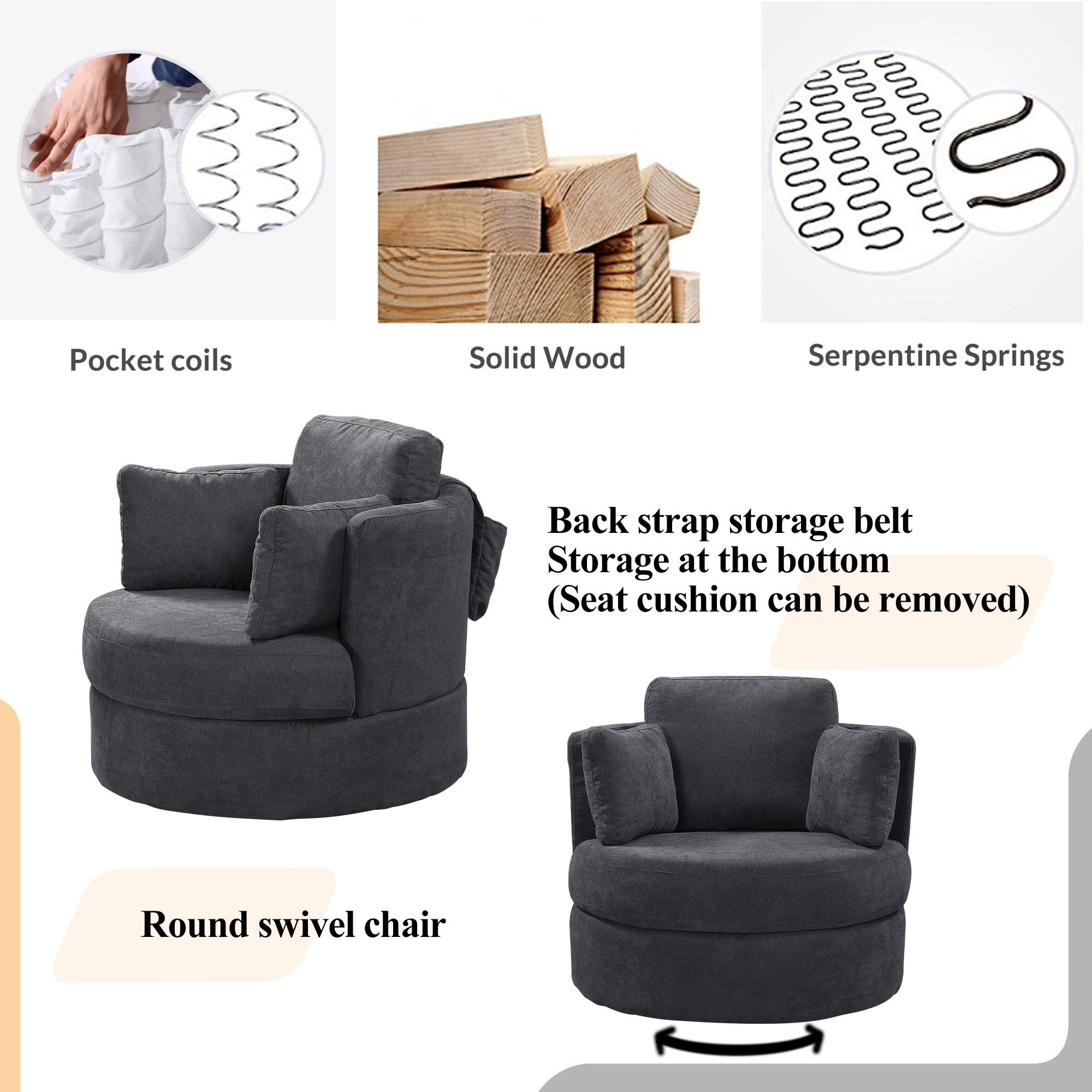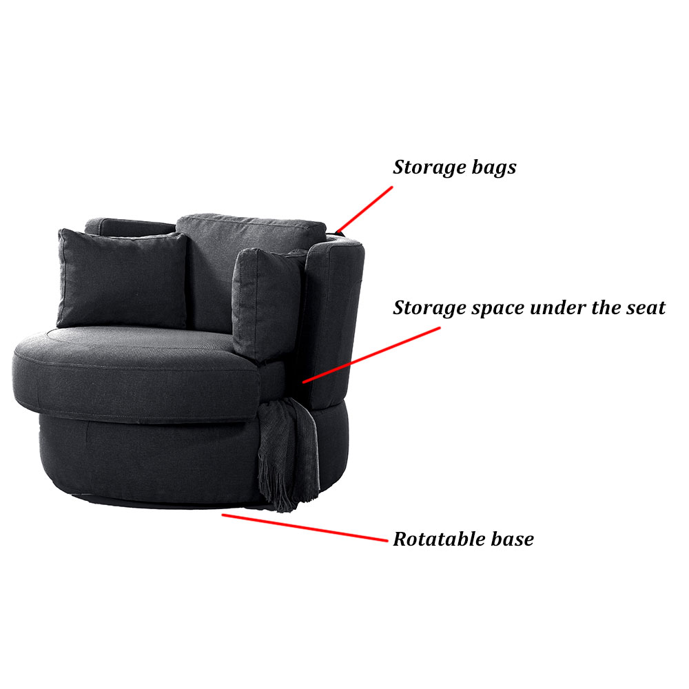 Welike Dark Grey Swivel Accent Barrel Modern Sofa Lounge Club Round Chair Linen Fabric for Living Room Hotel with 3 Pillows and storage (the other SKU: )