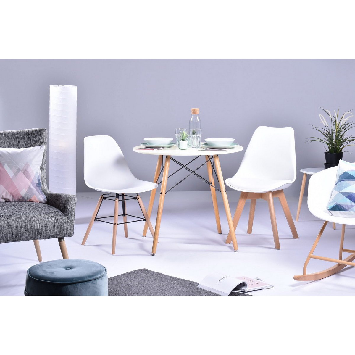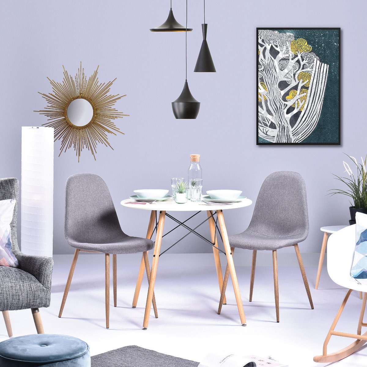 Just because you’re short on space doesn’t mean you should skimp on style! Bring a bit of mid-century modern flair into your cozy eat-in kitchen or dining room with this compact dining table to seat four comfortably. Founded atop four splayed legs in its circular top is made from manufactured wood in white finish to create a subtle contrast. Crisscross metal supports along with the base round out the look with a dash of distinction.
