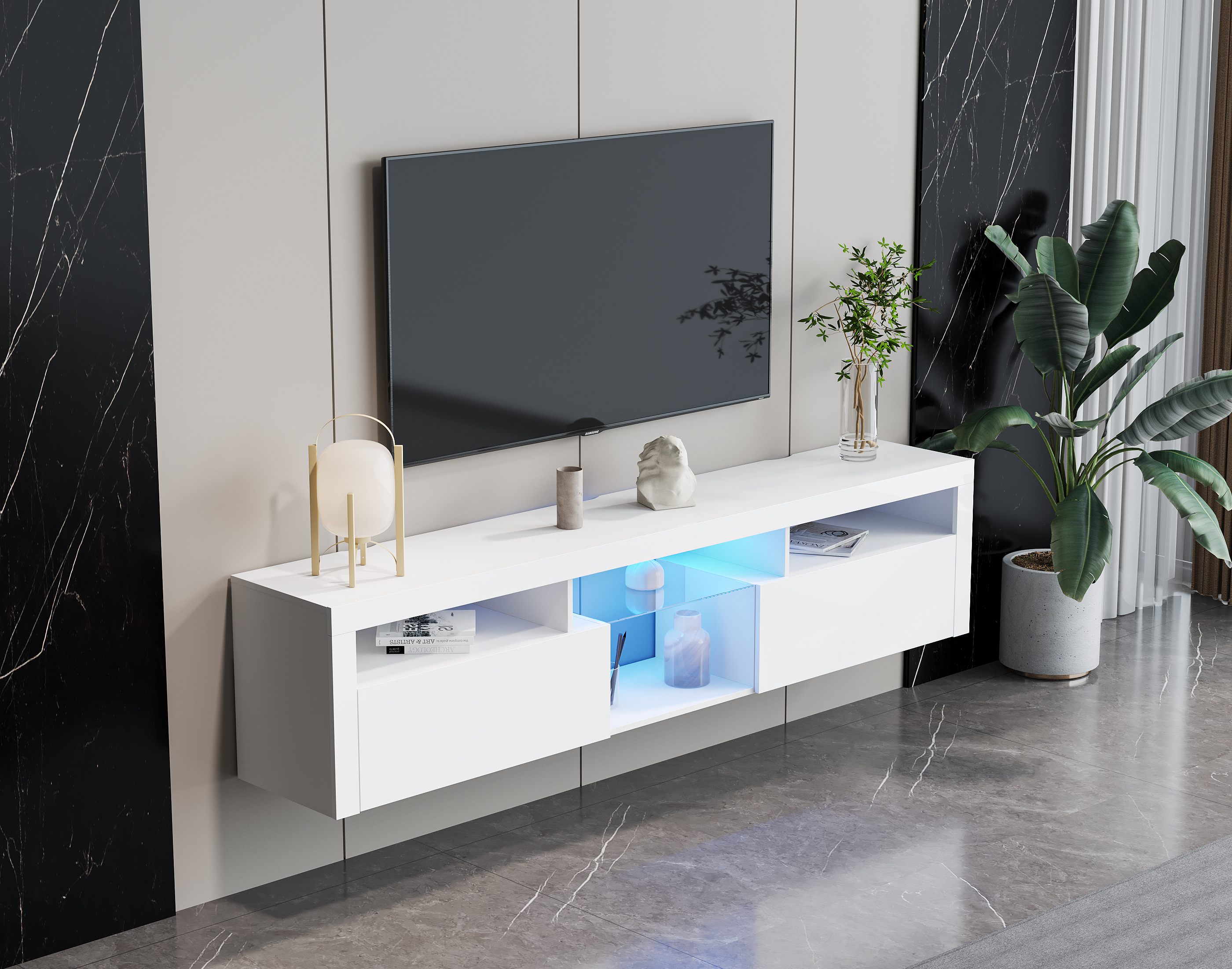 White modern simple TV cabinet for 70 Inch TV Stands