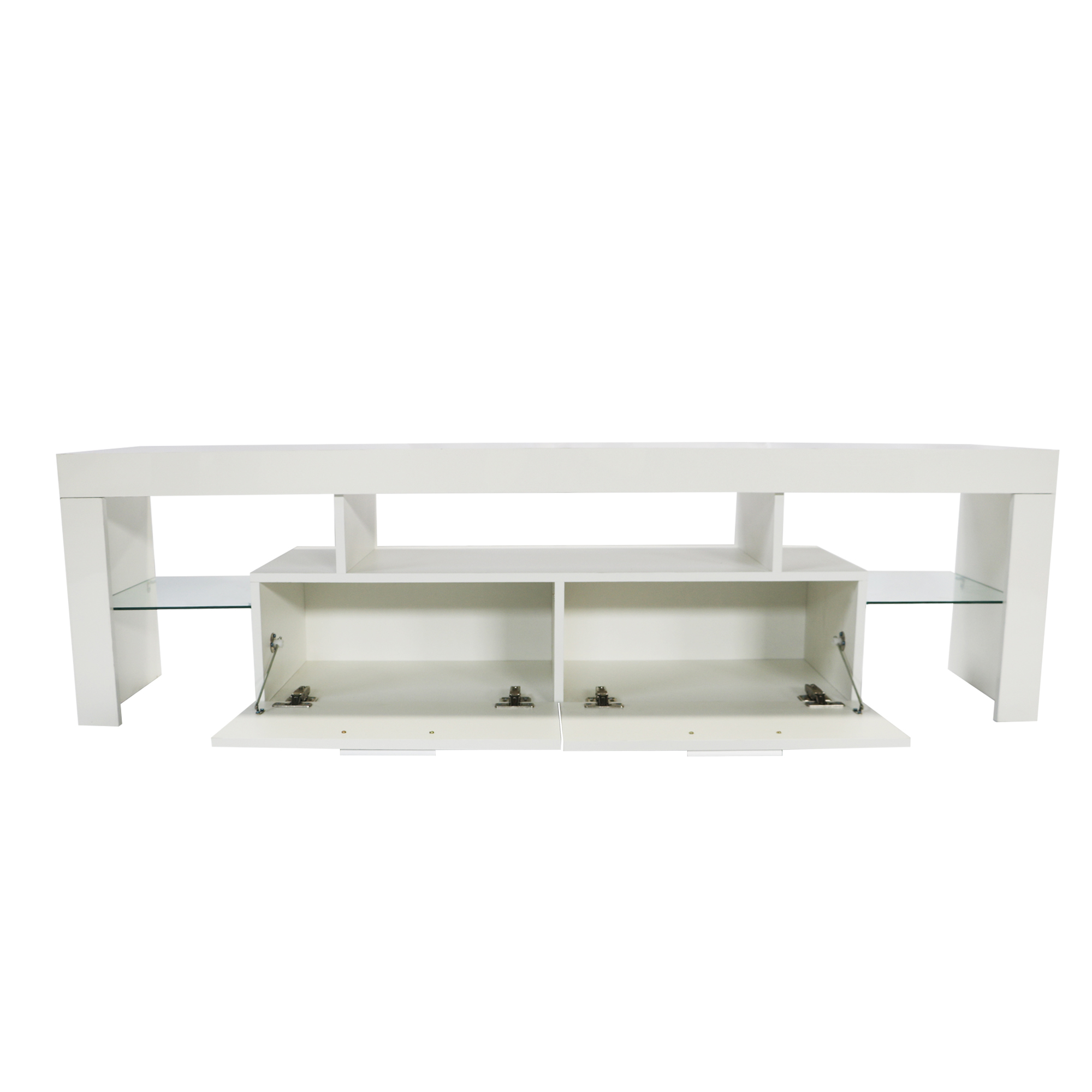 - FUSING DESIGN WITH FUNCTION: Featuring a modern and simple design, this TV Stand with Led fits with different room theme, and the LED lights could create different atmosphere for your room