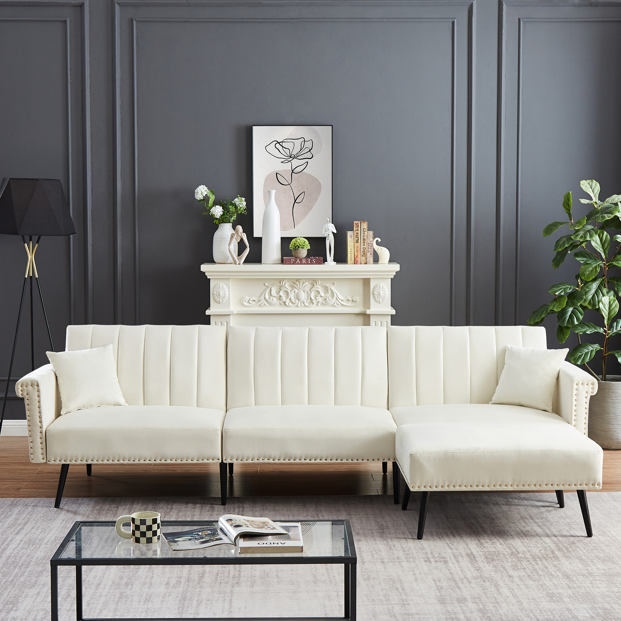 Products Name: Velvet sectional sofa bed with ottoman
