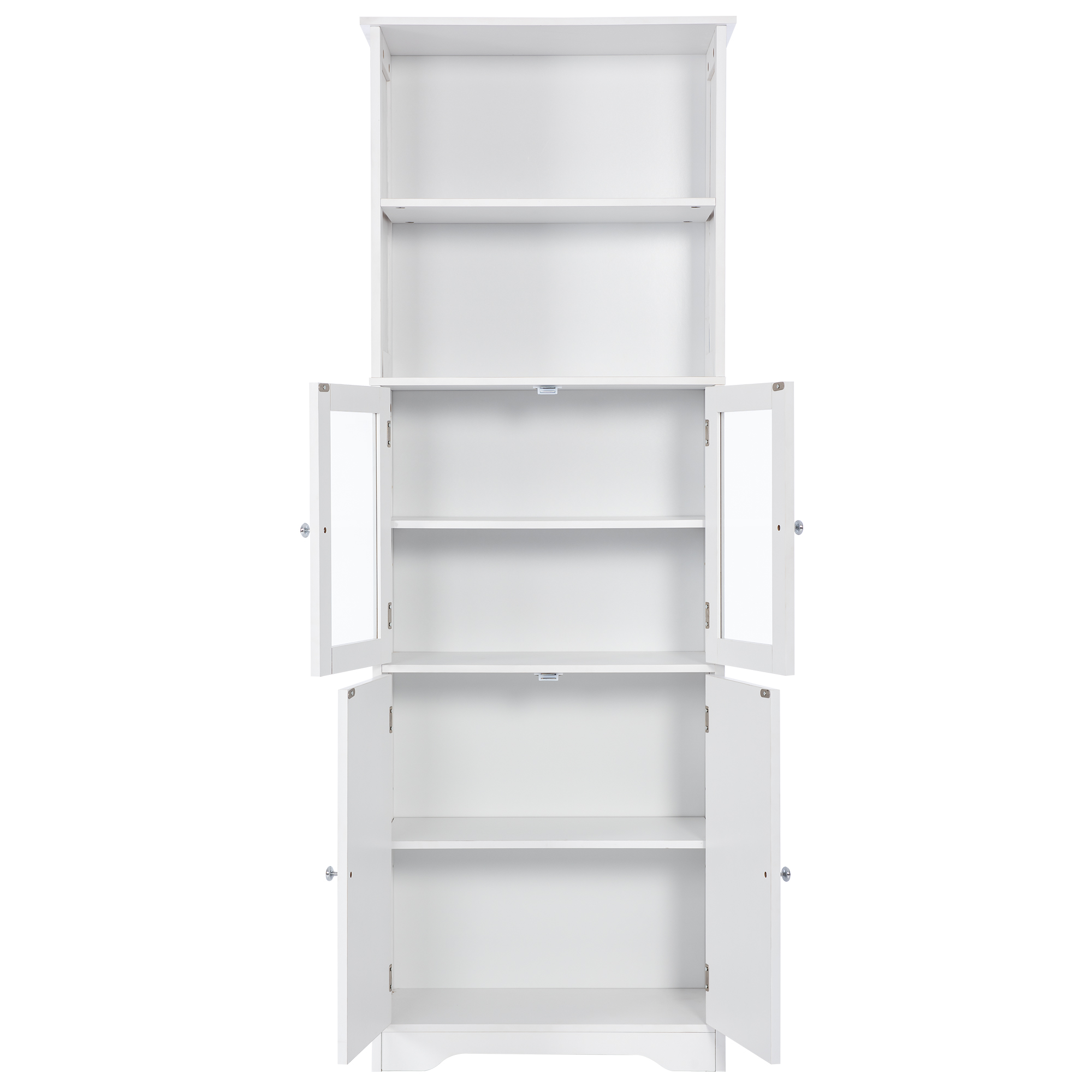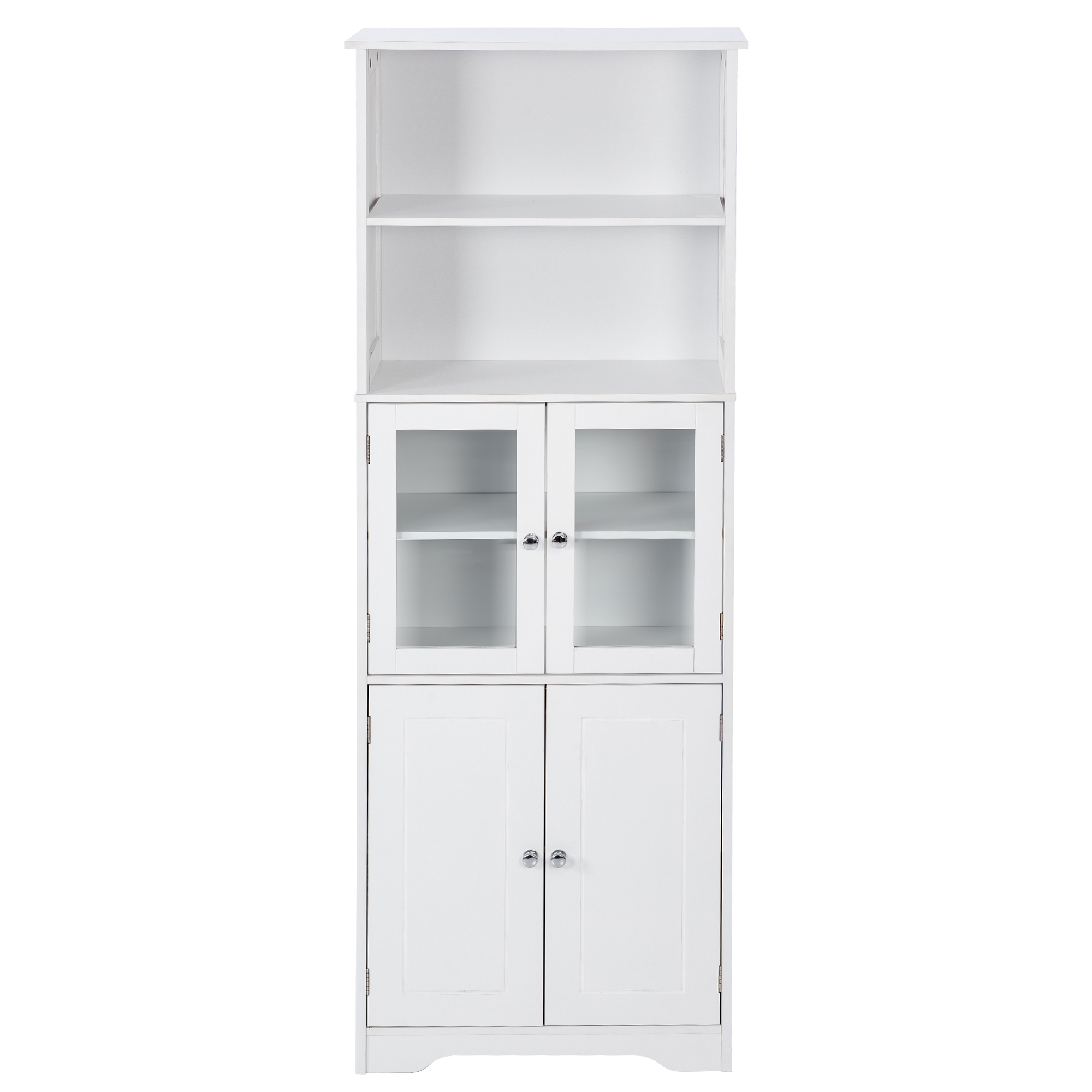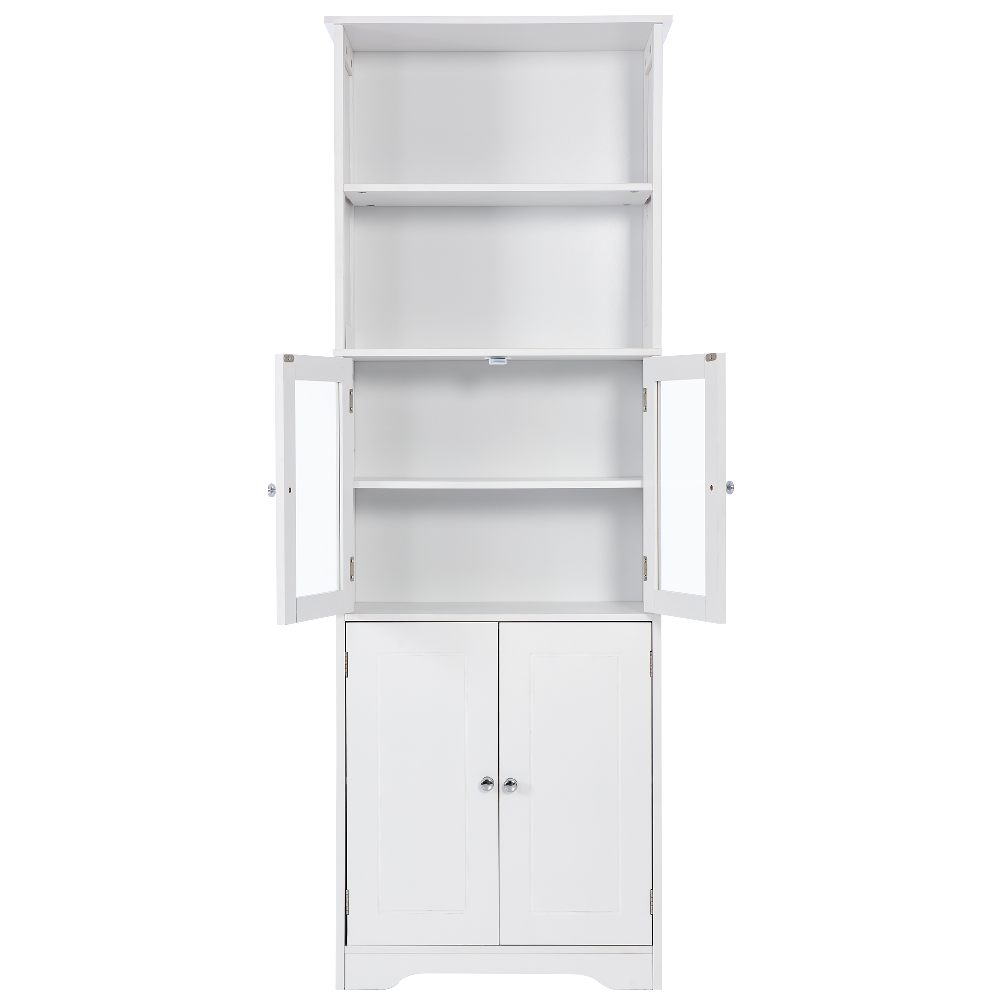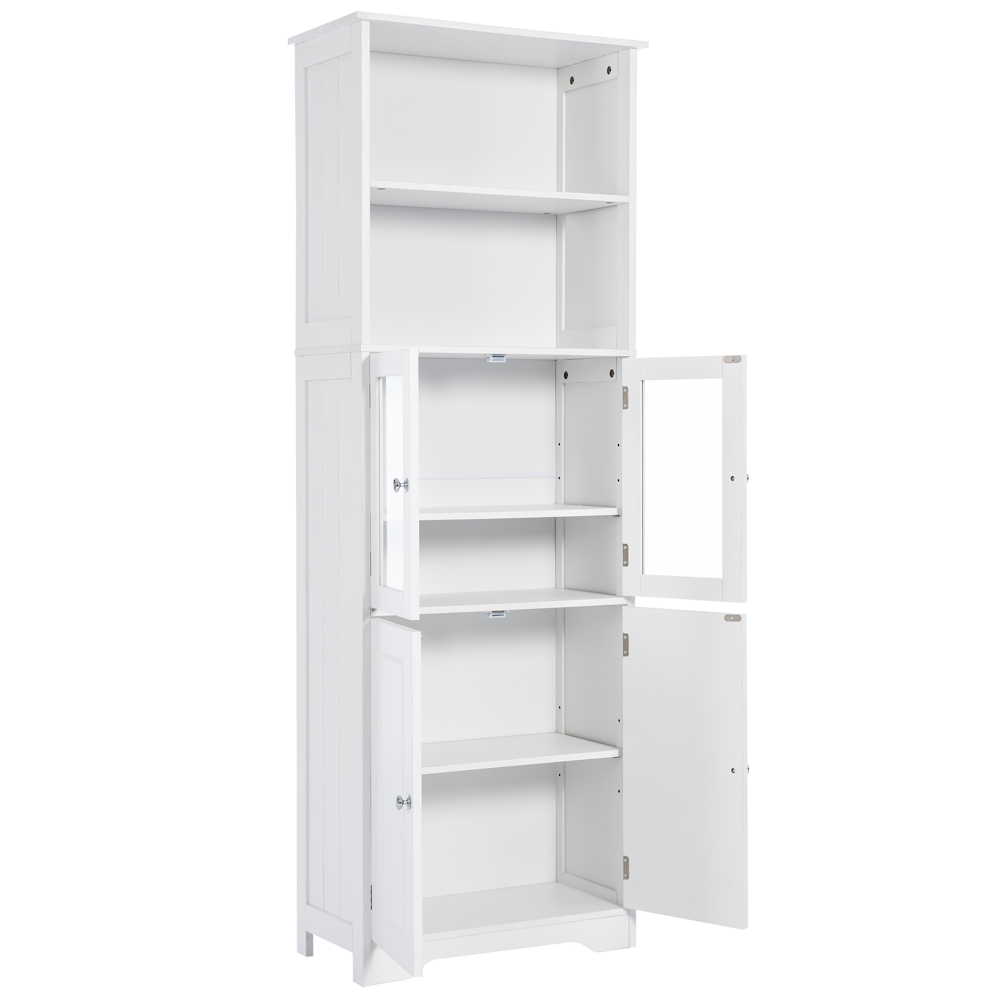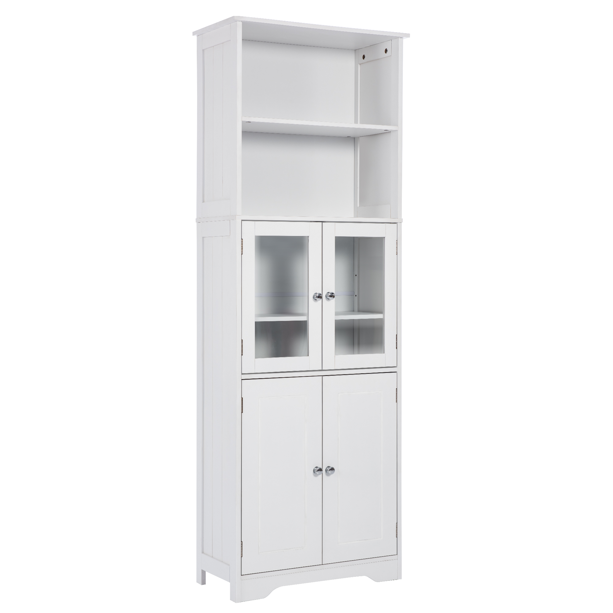White Tall Storage Cabinet with Shelves and Doors for Bathroom, Kitchen, and Living Room, MDF Board