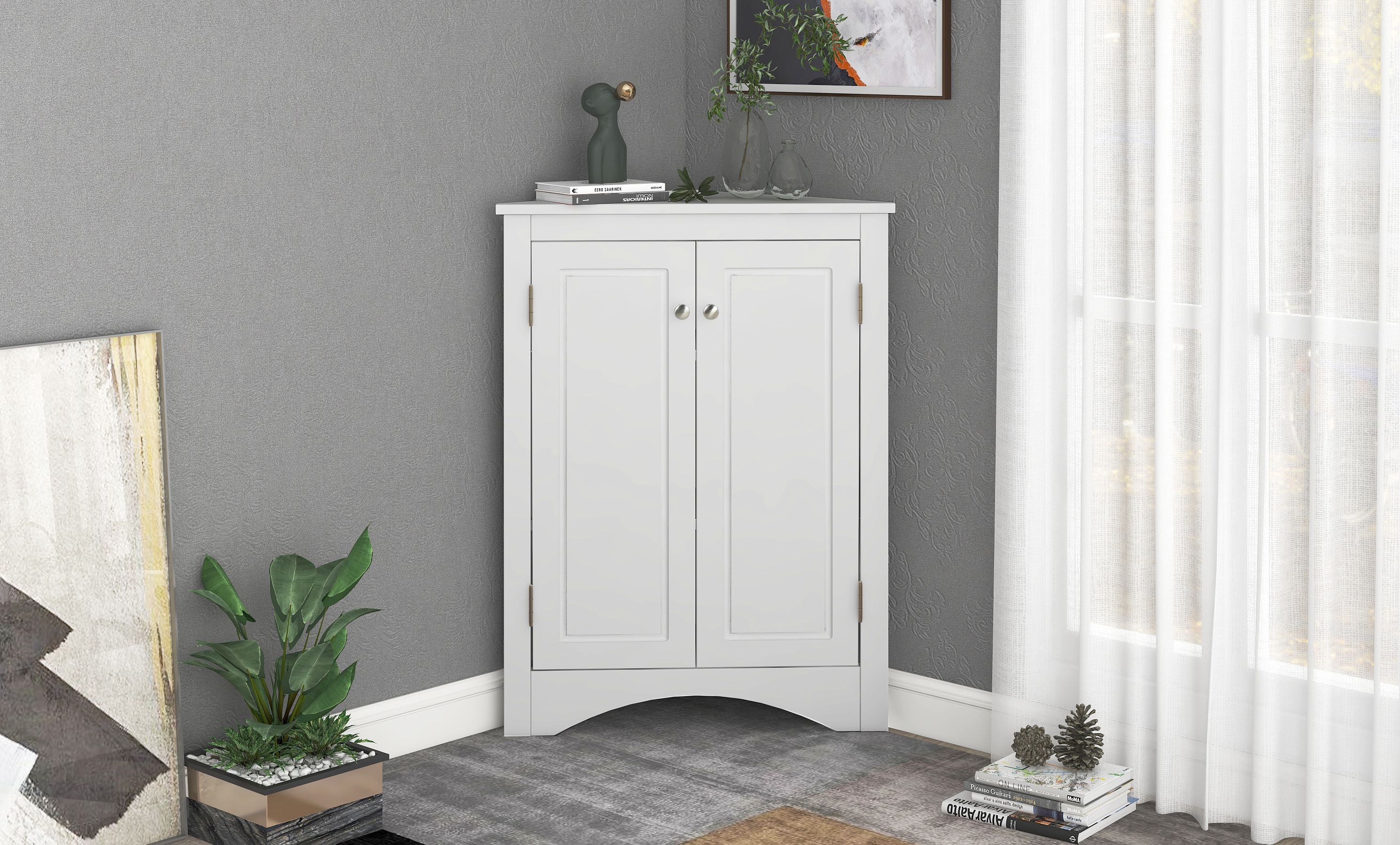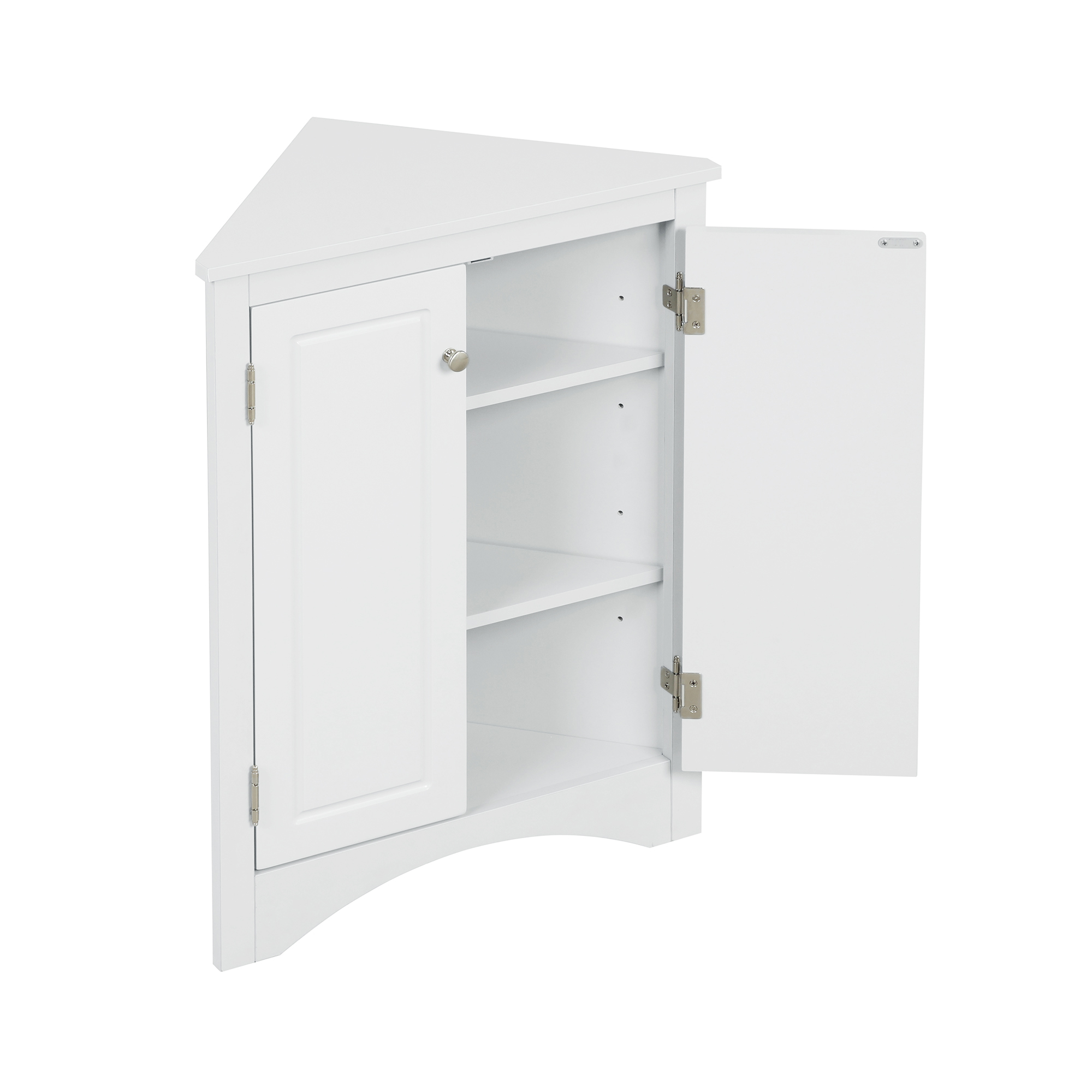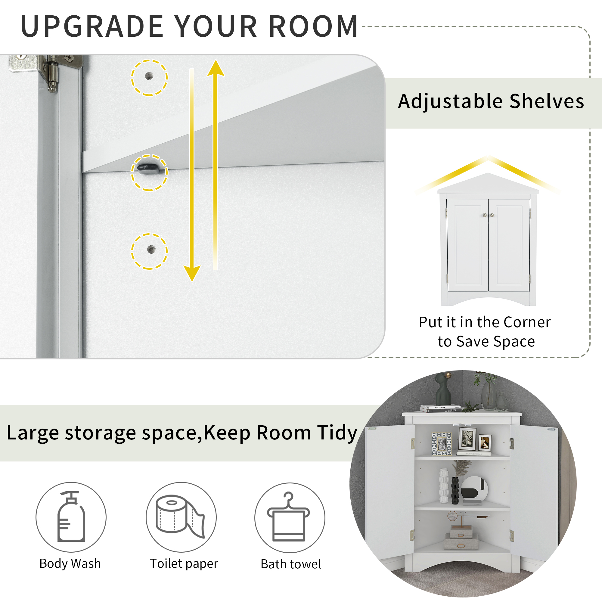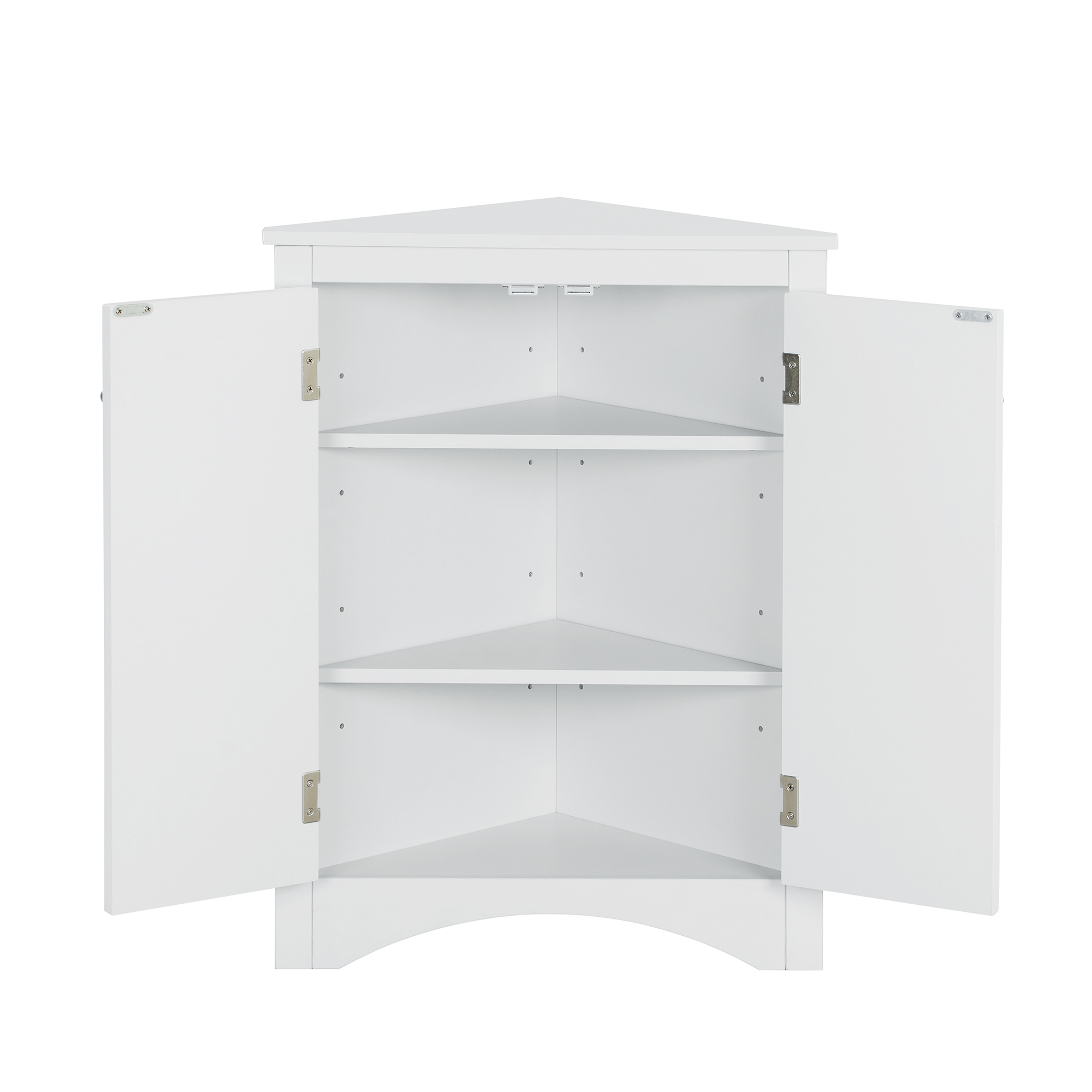 White Triangle Bathroom Storage Cabinet with Adjustable Shelves, Freestanding Floor Cabinet for Home Kitchen