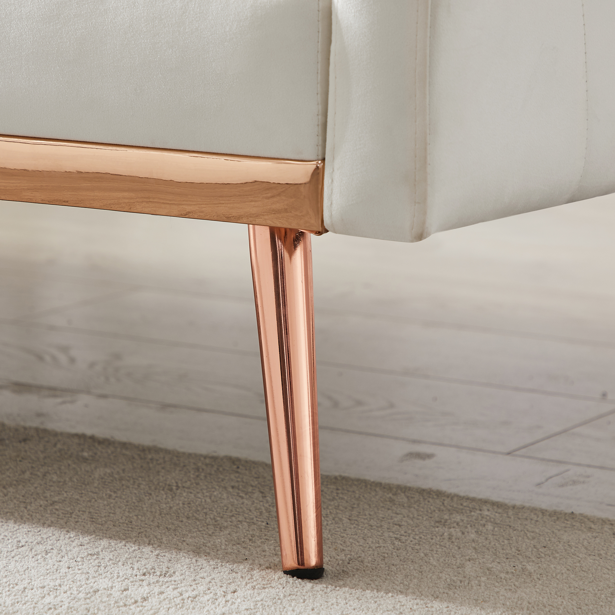 Frame Material: Solid + Manufactured Wood Seat & Back Fill Material: Foam Leg Material: Metal Legs Leg Color: rose gold Assemble Required : Yes Product Care: Damp cloth with a light, water-based cleaner with no detergents