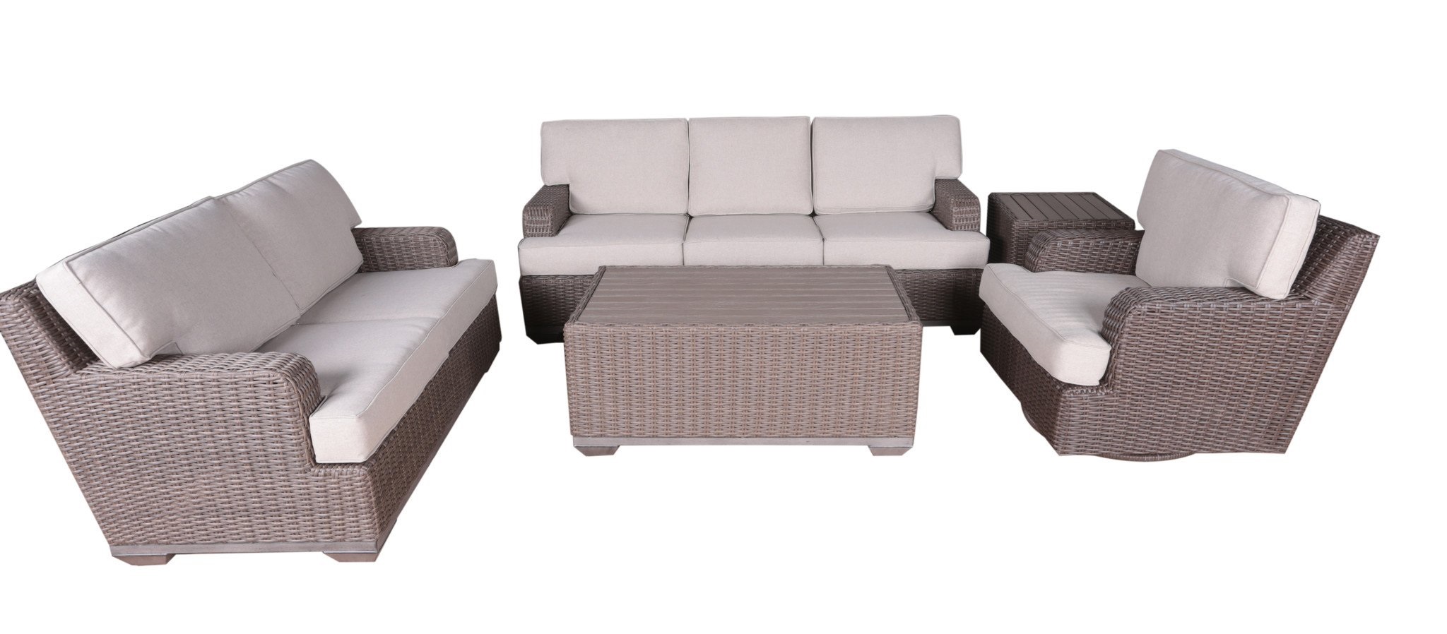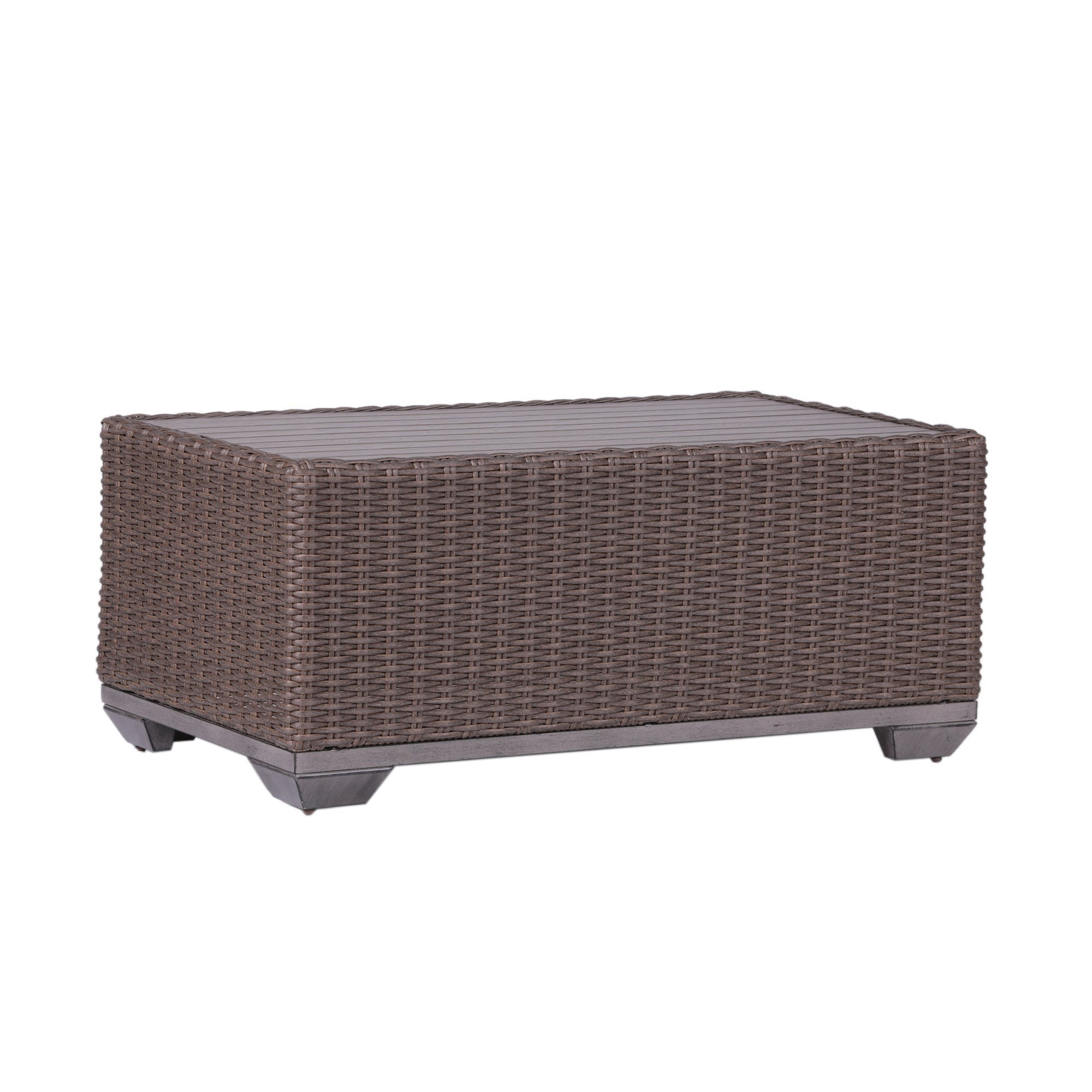 Inspired by the relaxed lifestyle of Italian Dolce Vita, our all-weather wicker collection offers generously scaled seating and clean lines that are crafted in a beautiful classic weave. Constructed with an elegantly simple aluminum frame and custom t-shaped all-weather cushions, the Brookstone Collection provides ultimate comfort and luxurious style. Whether you’re enjoying the sun or stargazing, our signature ergonomic 27x47" Rectangle Coffee Table raises the bar on design for outdoor living. Premium resin wicker provides a realistic appearance and resists fading and splitting. Aluminum frame is rust proof, lightweight, and with superior strength. Table top.
