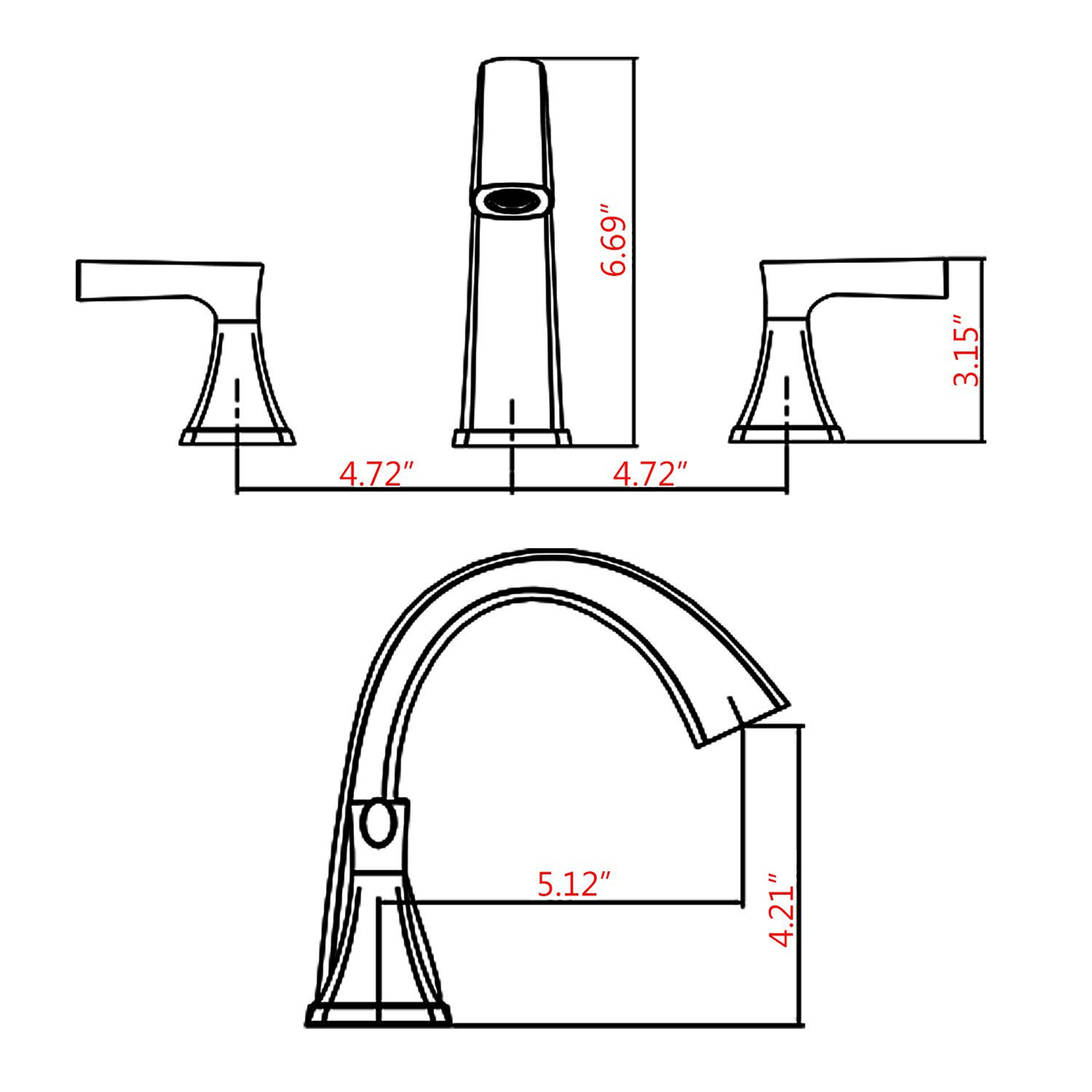 Spout Height---4.21''Spout Reach---5.12''Faucet Centers---8''Overall Faucet Height---6.69''Packing Details:
