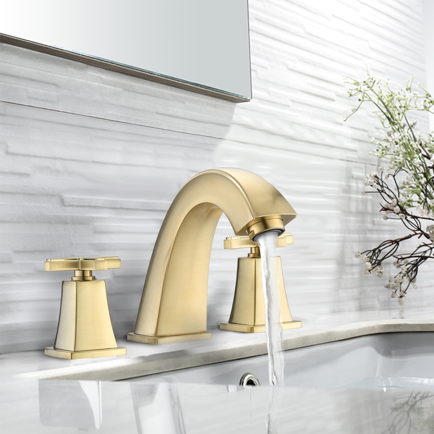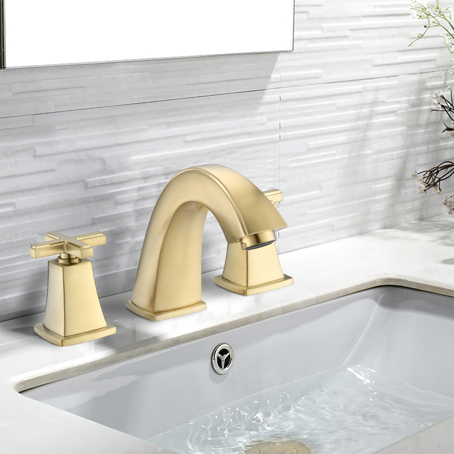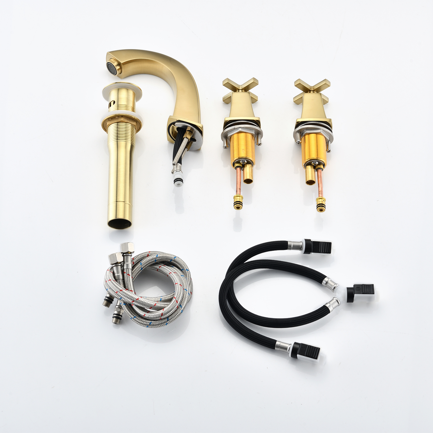 Installation Type: Widespread faucetNumber of Installation Holes: 3Swivel Spout: NoColor/Finish: Matte black, Brushed gold, Oil-Rubbed BronzePrimary Material: Brass, ZincResistance Type: Rust & Corrosion Resistant, Scratch Resistant, Tarnish Resistant, Stain ResistantFlow rate (gallons per minute): 1.5Number of Handles: 2 Handle Type: CrossHot/Cold Indicators: YesDeck Plate Included: NoDrain Assembly Included: YesAerator Included: YesSupply Lines Included: YesProduct Details