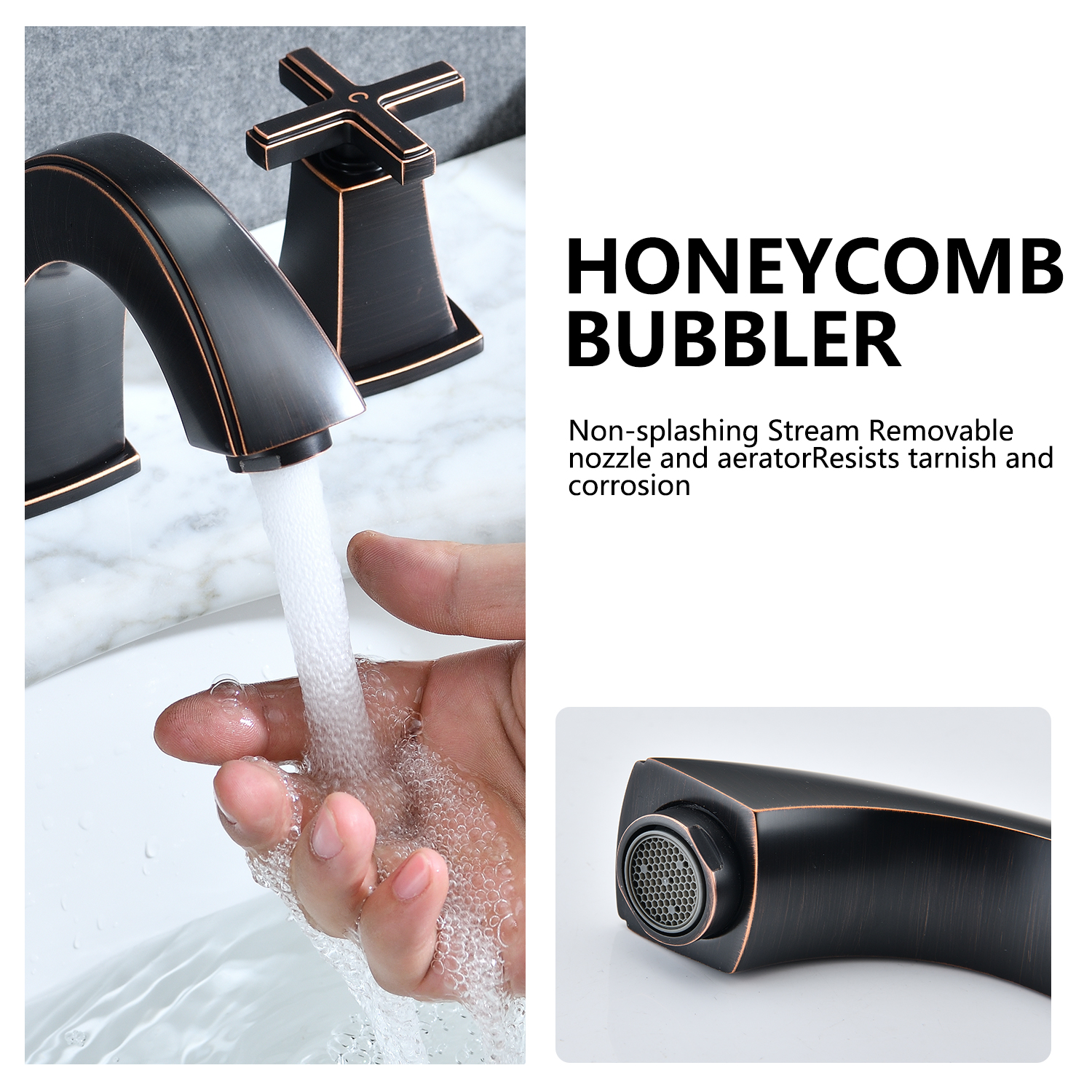This faucet with the high-quality Neoperl aerator can offer you a very smooth stream water flow which can make your hand feel very comfortable while you wash your hand, also can keep the water from splashing. Easy Installation