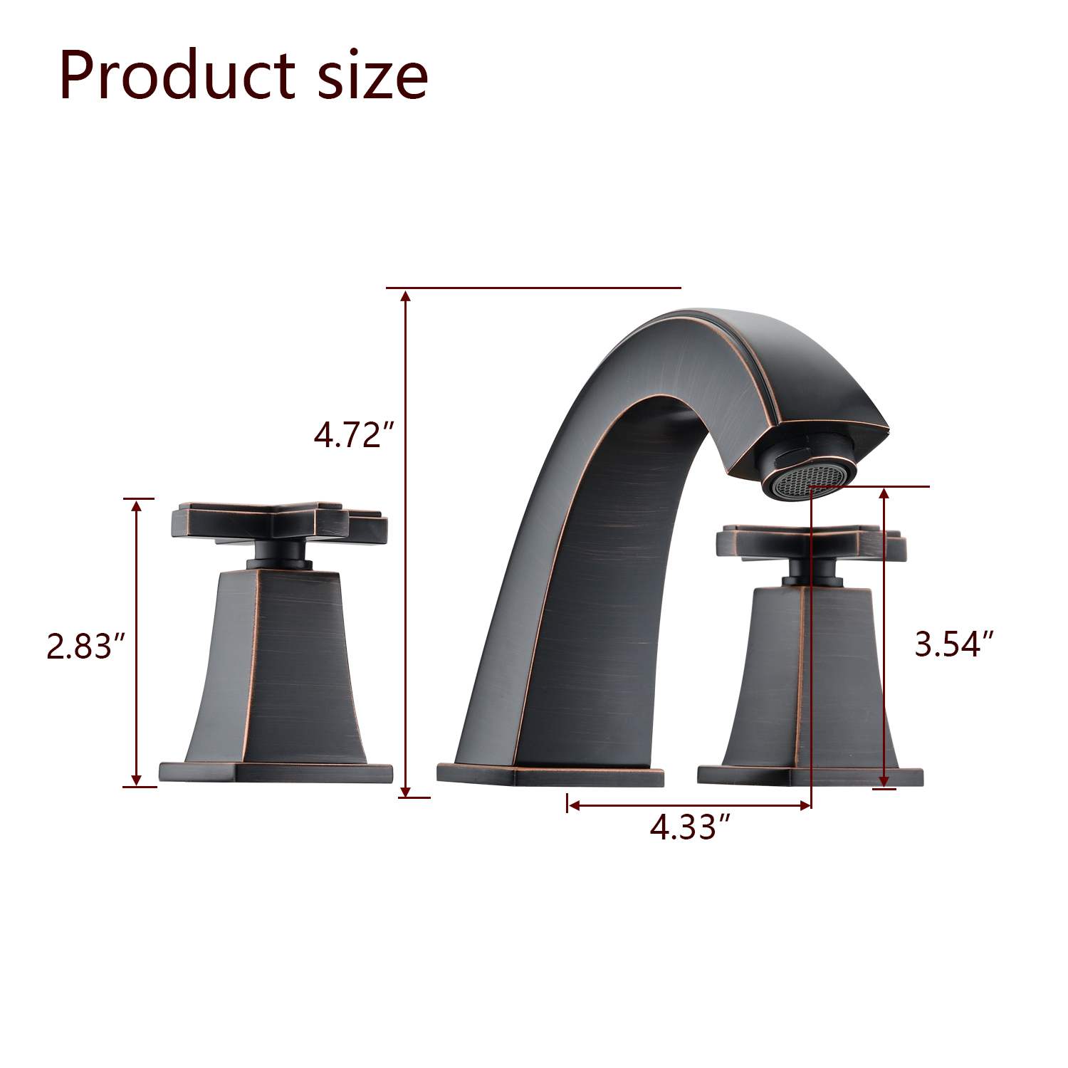 Faucet Height (in.): 4.72Spout Height (in.): 3.54Spout Reach (in.): 4.33Faucet Centers (in.): 8