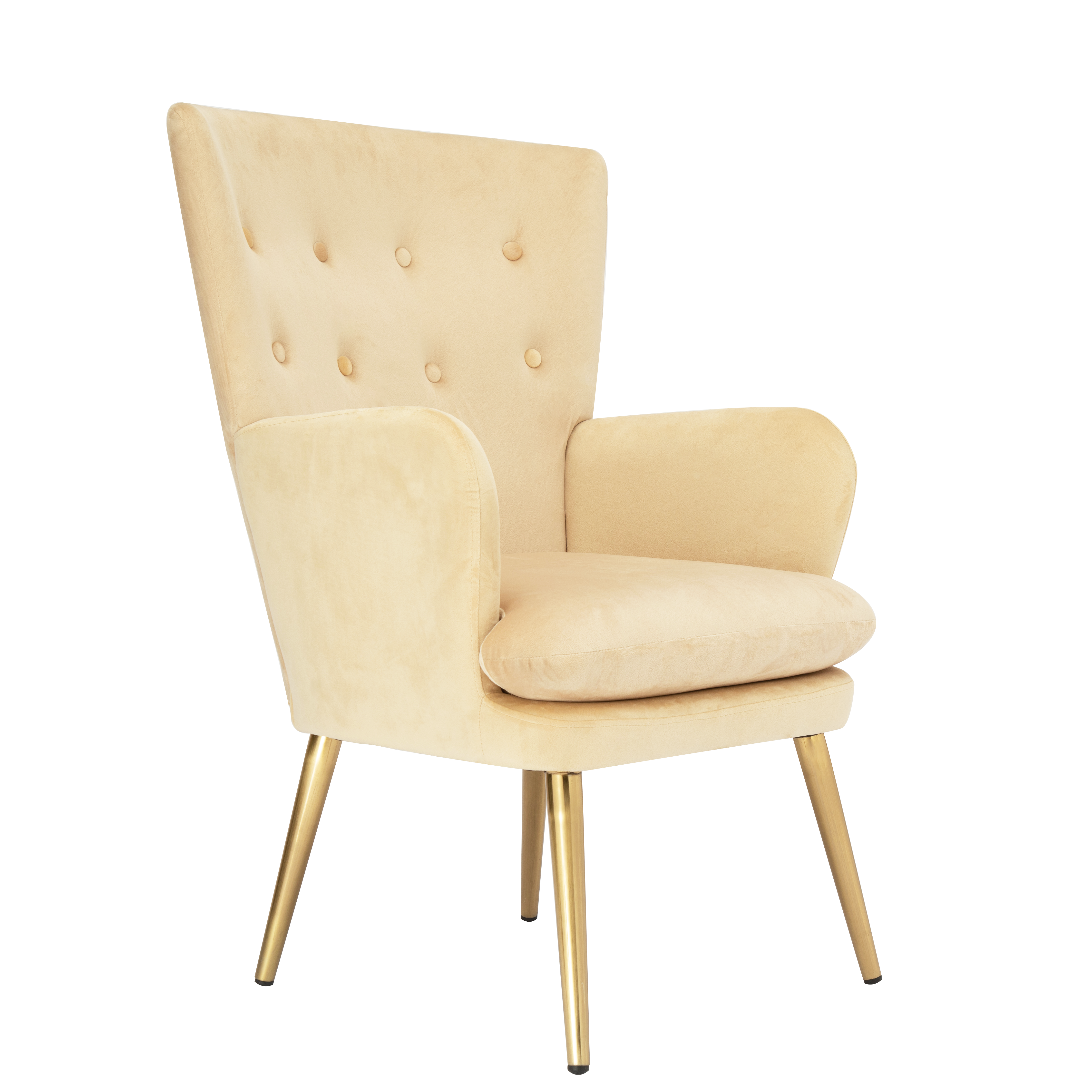 · 【Classic Design】The color and design of our accent chair are derived from mid-century furniture style,which is timeless and elegant. This armchair is featured with curved back top,straight side line and practical tufted back. And the riveted trims and wooden legs enhance the stability of the whole structure and provide you with more comfy experiences