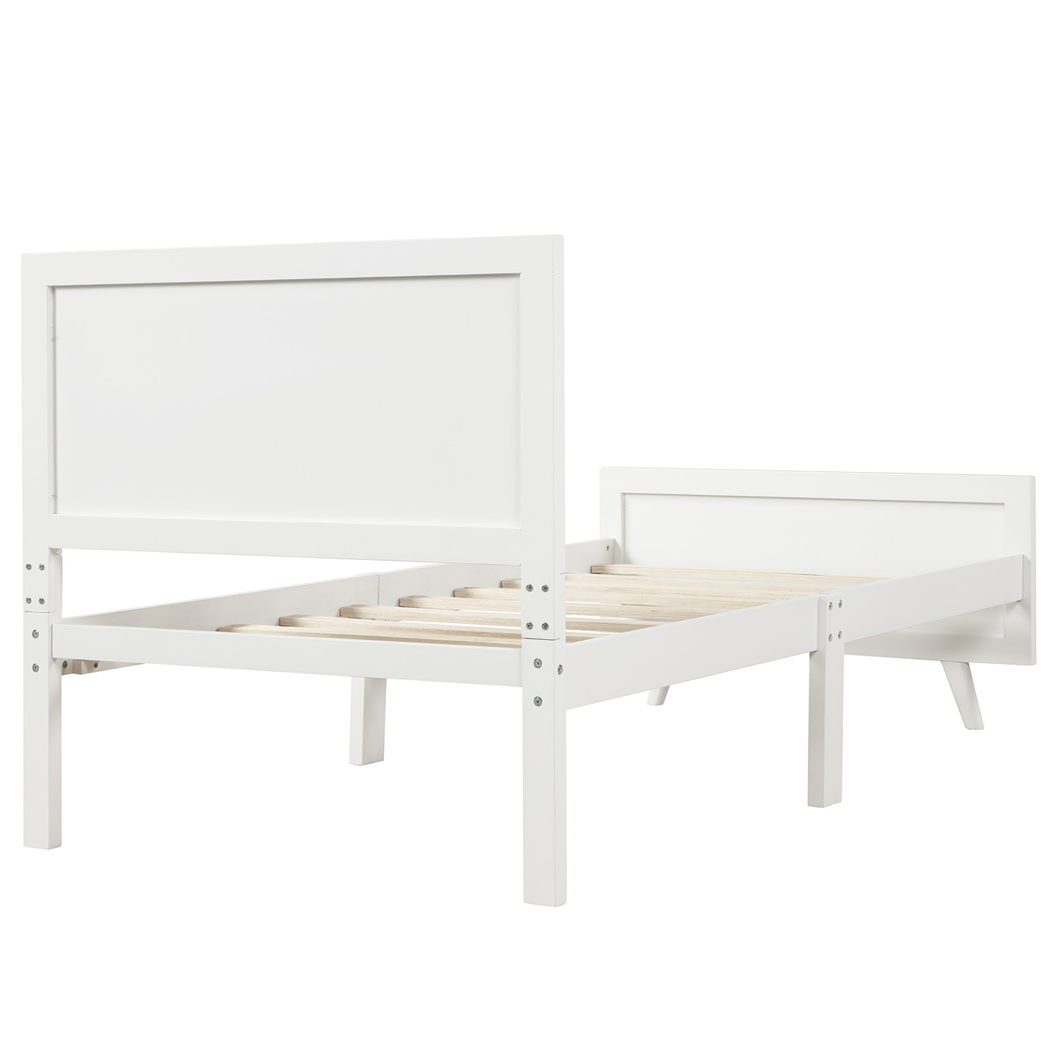 This Wood Platform Bed with Headboard & Footboard is a minimalist, stylish bed base that works well with a variety of decorating styles and makes it easy for you to beautify the look of your bedroom. The bed contains an integrated headboard. It fits most Twin-size mattresses and does not require a box spring. This bed frame is an excellent addition to any bedroom, do not miss the chance take it home.