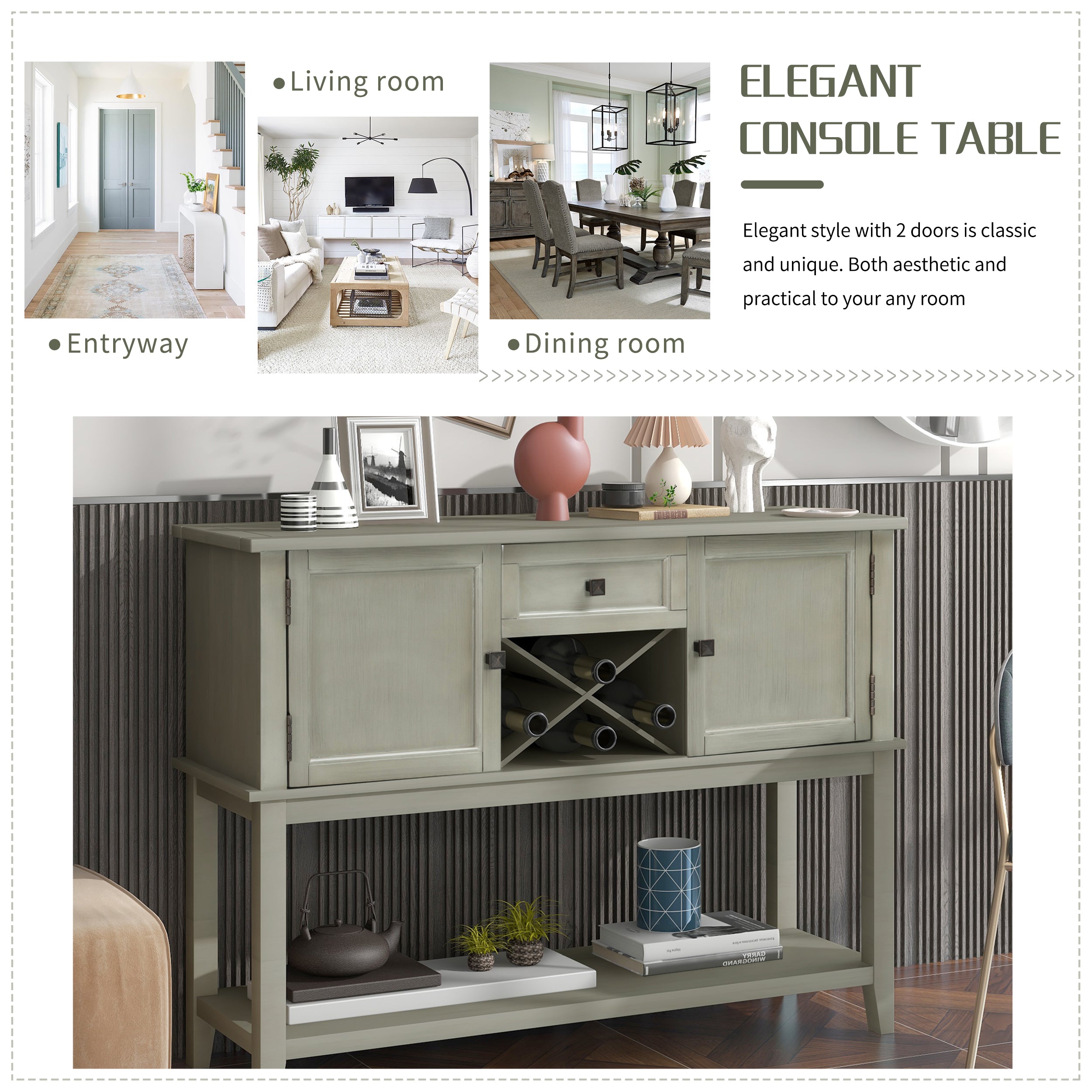 Wooden Console Table with Wine Rack Open Shelf Storage Sideboard